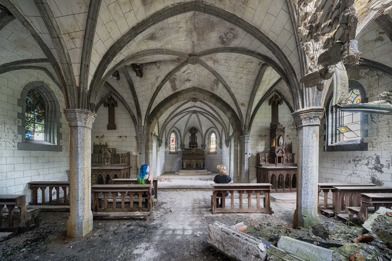 From searching for locations and the subsequent long and eventful road trips, the path is long and filled with amazing memories with good friends and loved ones. Even when we arrive at the destinations, unexpected and often hilarious antics may be involved with getting inside these lost buildings. Moving around inside these decaying places can be treacherous, and hazards to both body and equipment are prevalent. My camera fell from a fully extended tripod directly on the lens in a French Chateau; a very costly incident!
