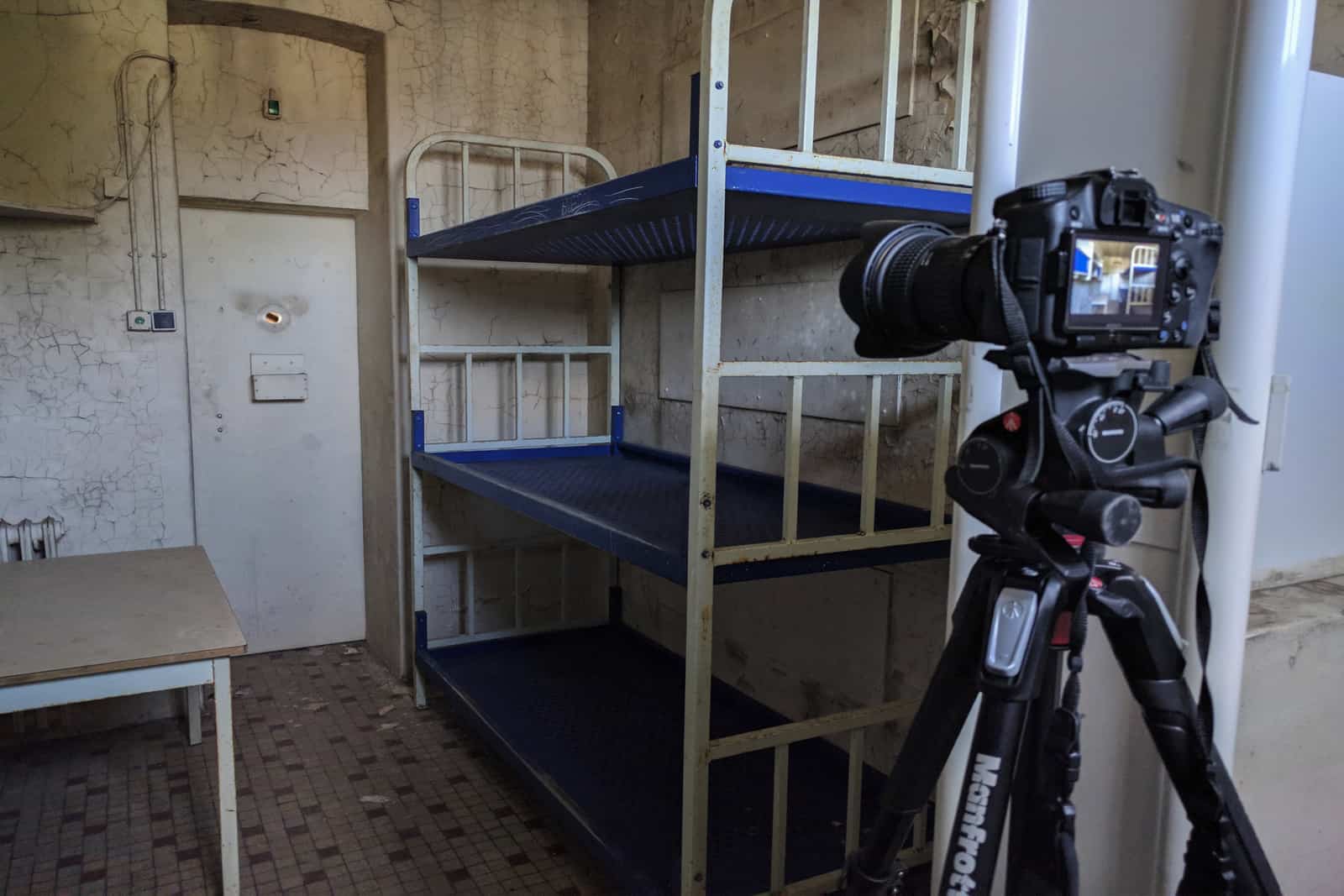 After a memorable nights sleep in a prison panic room, we emerged at dawn to photograph the subtle pastel-colours and dramatic peeling paint. True to form, I managed a rather ungraceful exit and will be sporting a large scar as a keepsake. On the second day we visited La Sainte Poterie (making a very memorable hasty and premature exit) and Chapel des Morts (via a somewhat inventive route!). We finished up the evening at War Planes, and enjoyed some beers and took some selfies as the sun set. Over the final days we hit some of the older classic locations: HFB Blast Furnace, Church of Decay, Chateau Banana, Chateau Volt Face, Diesel Farm, Université VB. A small Italian restaurant and an old car garage provided some more obscure and less well-known treasures along the way.