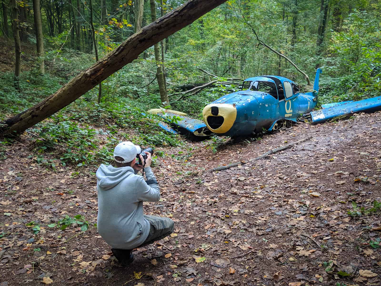 I am a big believer that sometimes anticipation adds to the fun of an explore. We walked through the woods, and arrived at the coordinates of a lost plane (Mayday, Mayday). However, upon arriving at our destination there was no plane. After what seemed like a long search, we finally discovered the plane resting a few tens of meters away from the original coordinates. This plane looks as if it has crashed, but appearances are deceiving. This plane was placed here during the filming of some movie or tv program and has simply been left here.