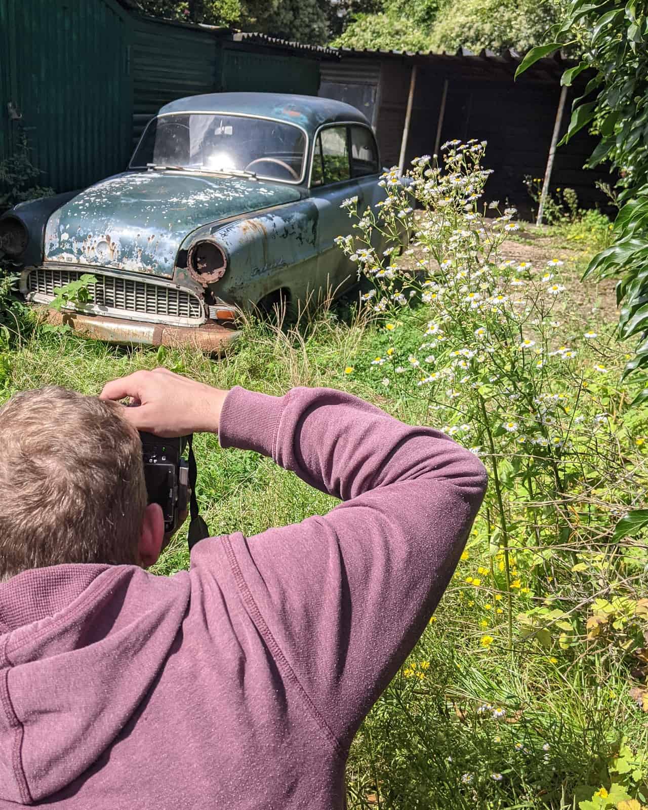 I always enjoy photographing cars being swallowed by nature. The greener the better for me (bonus points for ferns, which are are favourite plants!). The first location on this tour kicked off with a car, which was the first of many I was lucky enough to photograph on this trip. It was a circa 1950s Opel Olympia Rekord!