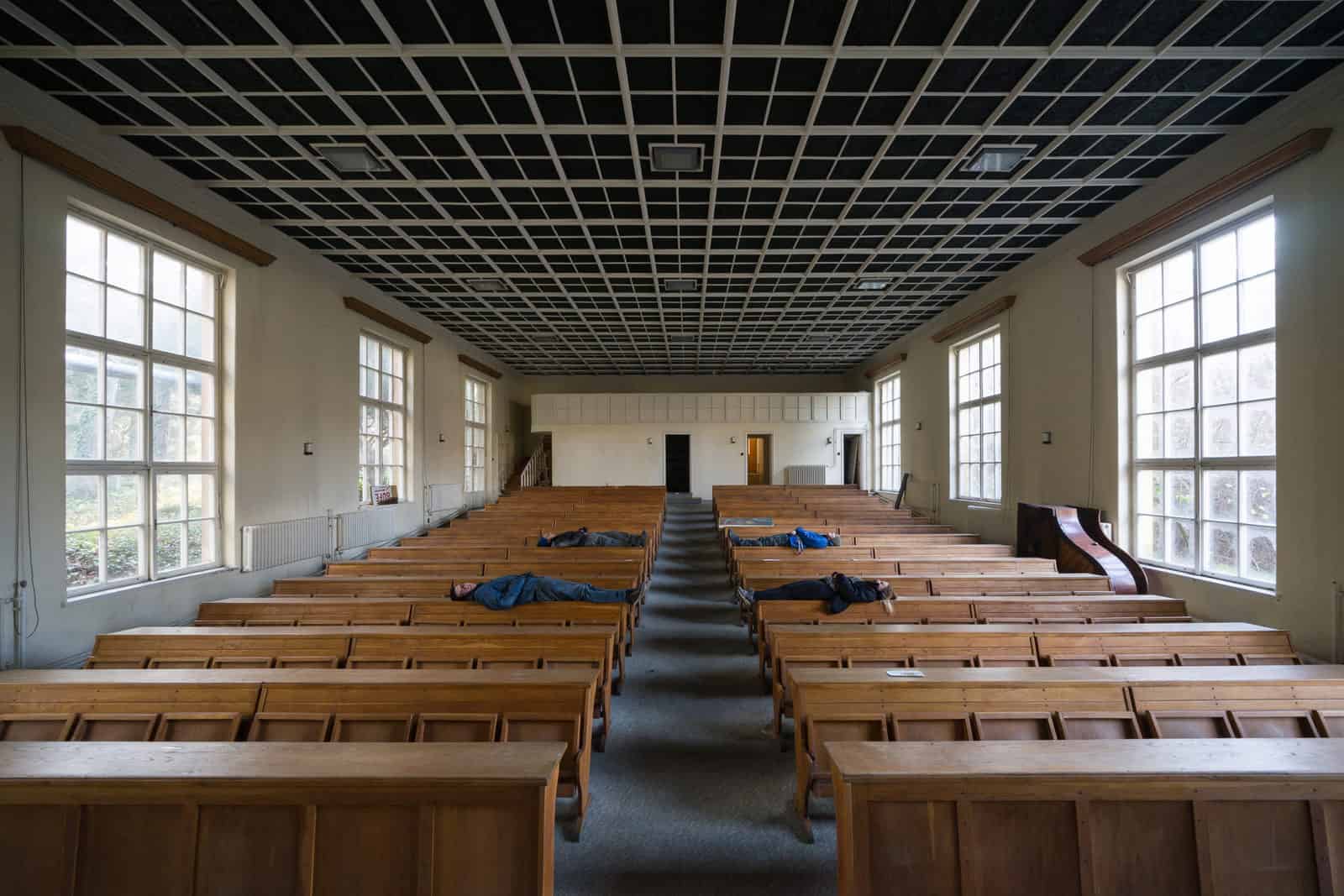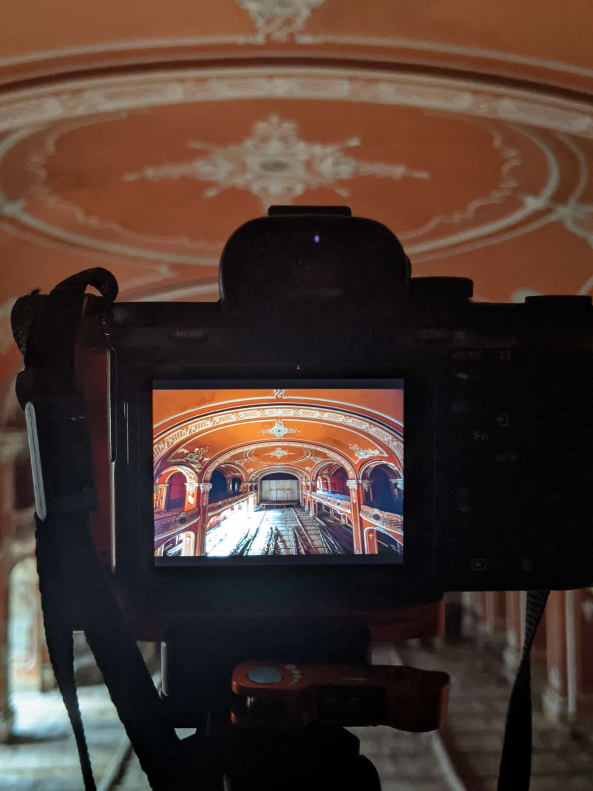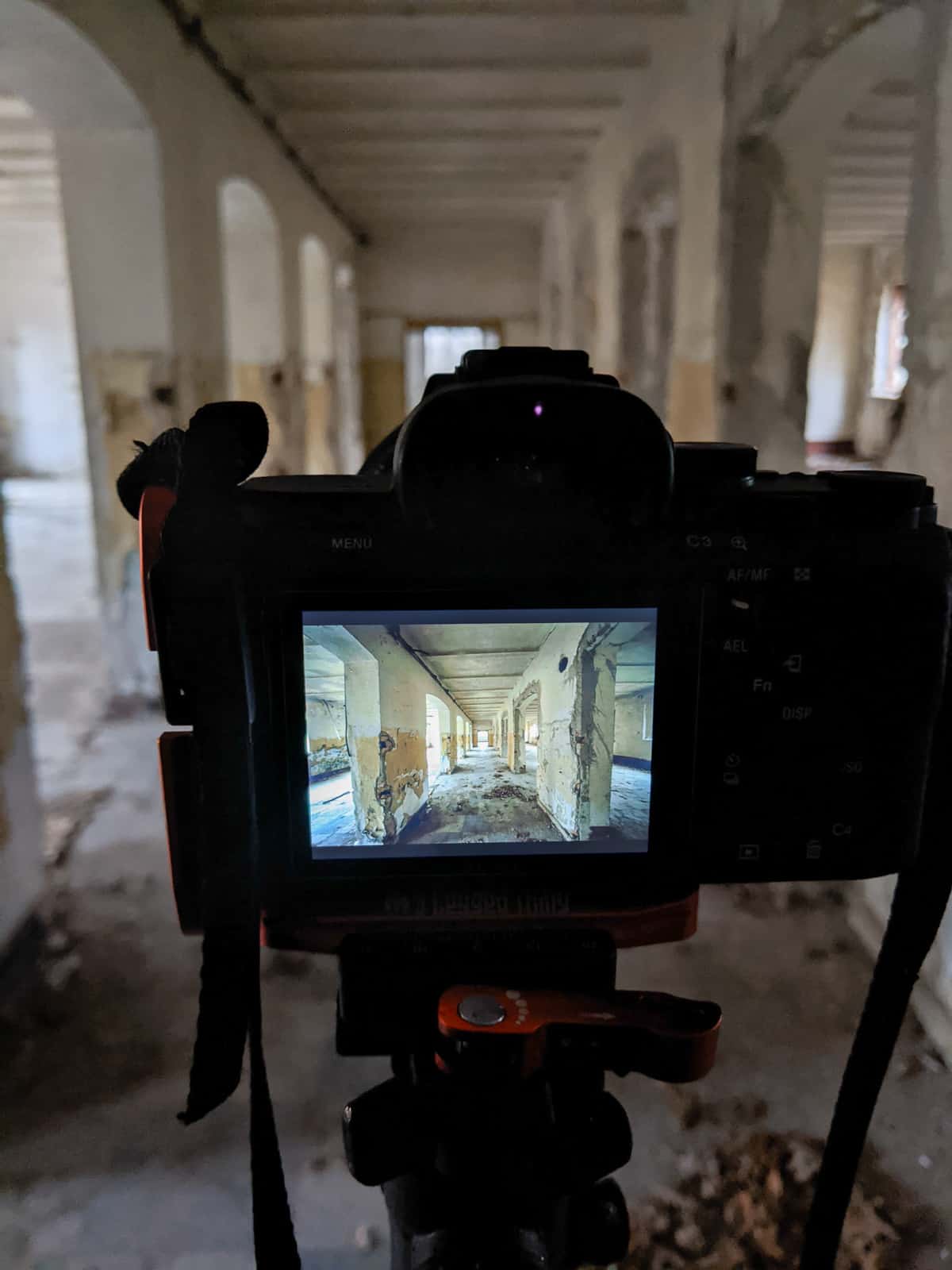 With these two “must-see” items ticked off, we explored some of the buildings near the road on our way back to the car. We found long corridors and peeling paint, as expected. After checking a rather innocuous building, we also discovered a surprise. We found an unexpected Soviet Theatre. The wonderful natural decay and lack of graffiti made this room a nice end to a successful trip 🙂