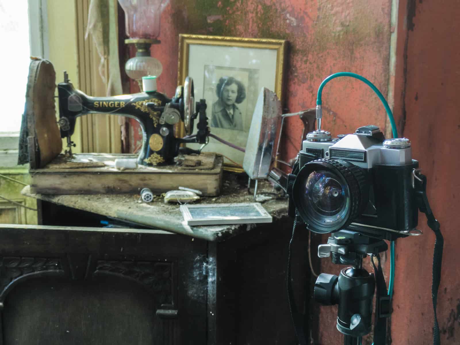 I squeezed through a dense thicket and slipped through an open window. The interior of the old house I find myself in was dark, dusty and cluttered. Not too many photo motifs, not yet. My attention had been drawn in by something intriguing at the front of the property.