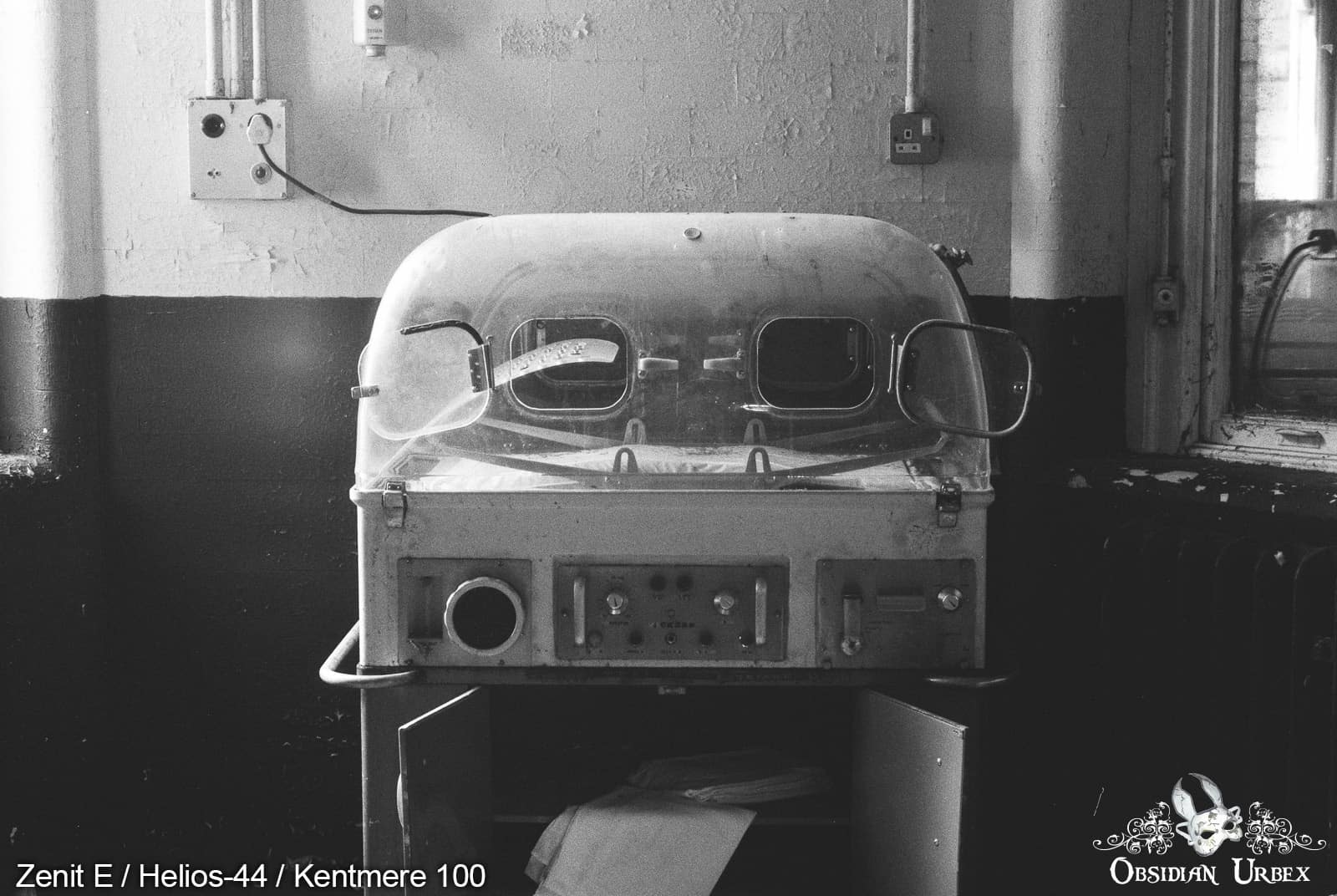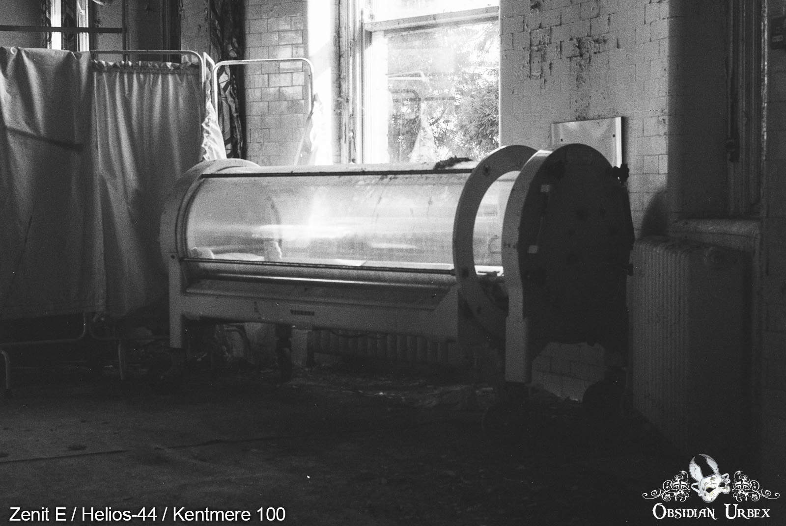 The grain is, of course, finer when compared to Kentmere Pan 400. In brighter spaces or outdoors on overcast days the 400 speed film is perfect, for bright days the 100 would be a better choice. For my work, I tend to shoot interiors on a tripod with a remote shutter so both ISO 100 and ISO 400 options are good for me. However, in some situations the ISO 400 film gives me the option to hand shoot whereas with Kentmere Pan 100 I almost always have to shoot on a tripod when exploring abandoned places.