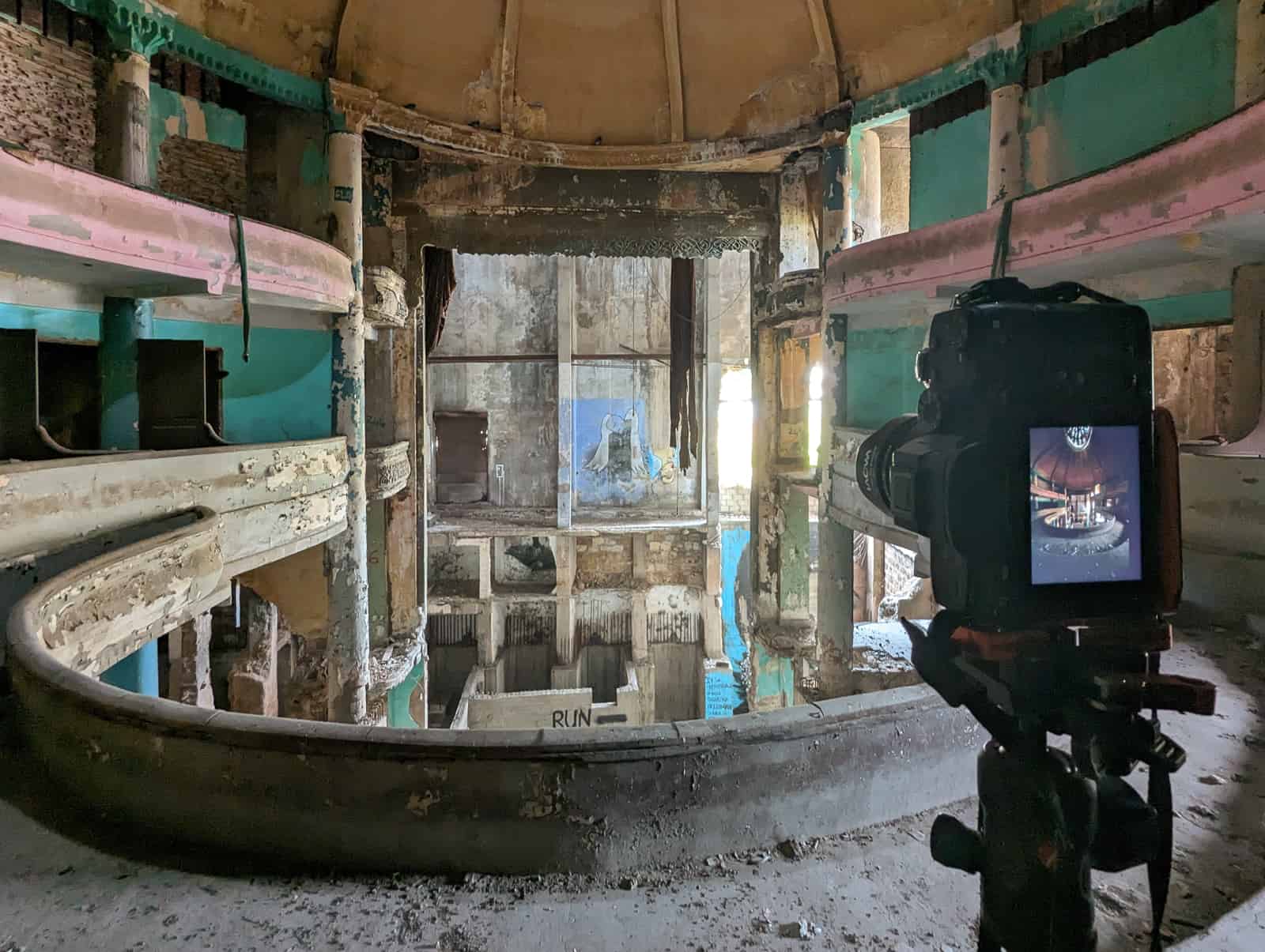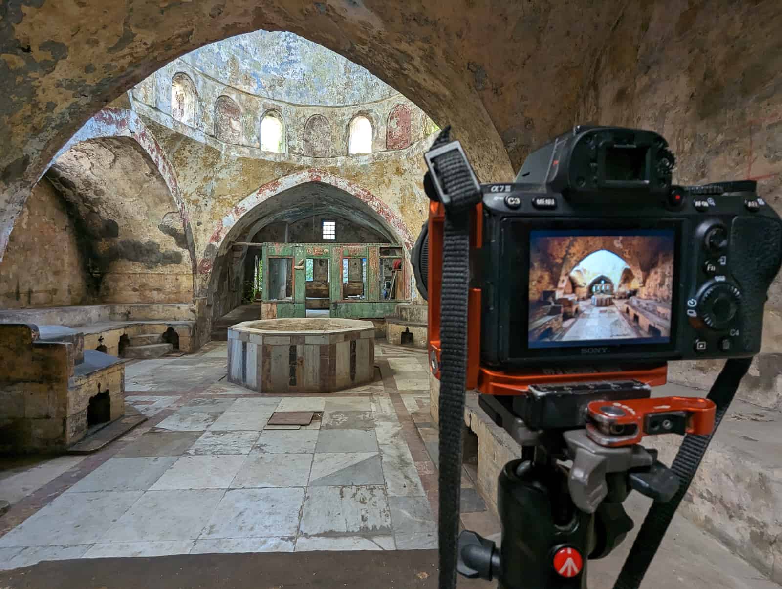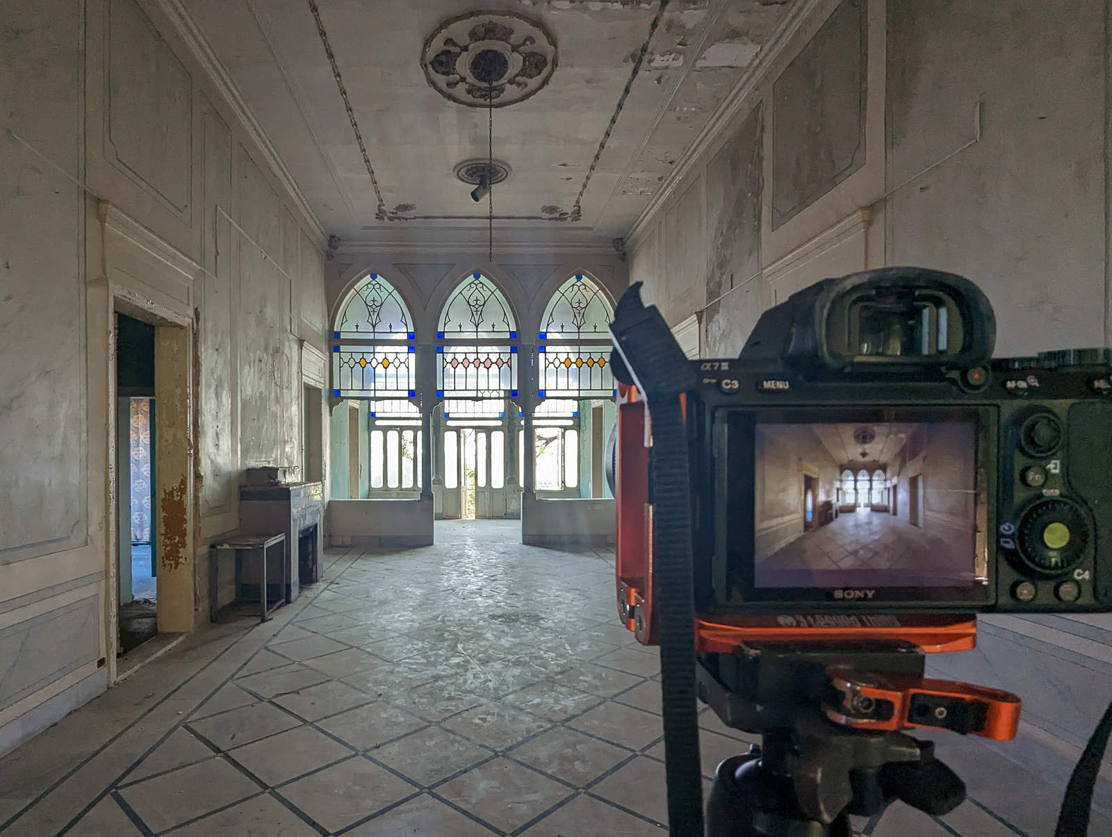 The beauty of the exotic architecture drew me to Lebanon in the summer of 2023. The Lebanese building style is so different from anything else I have previously photographed. Many of the high-society houses and palaces from the 19th century conform to a certain style. Their key features are: red roof tiles, high ceilings, interior arcades, and three pointed arch windows/balconies on the street-facing wall of a large central room. These triple (or quintuple, five) arch windows are stunning, often accompanied by ornate ceilings of the large adjacent room. Add in some natural decay or some vivid green plant growth, and you can find the most beautiful motifs.