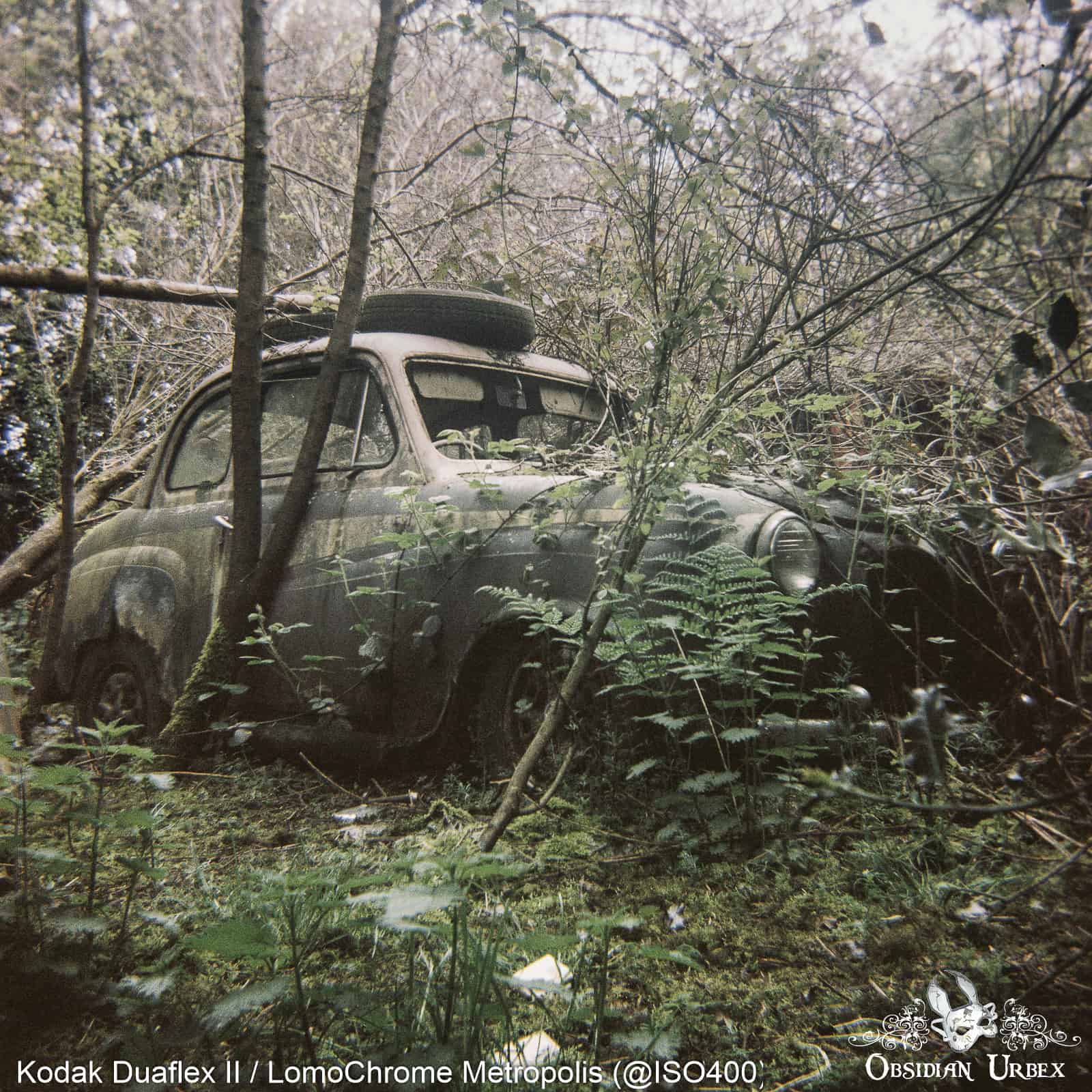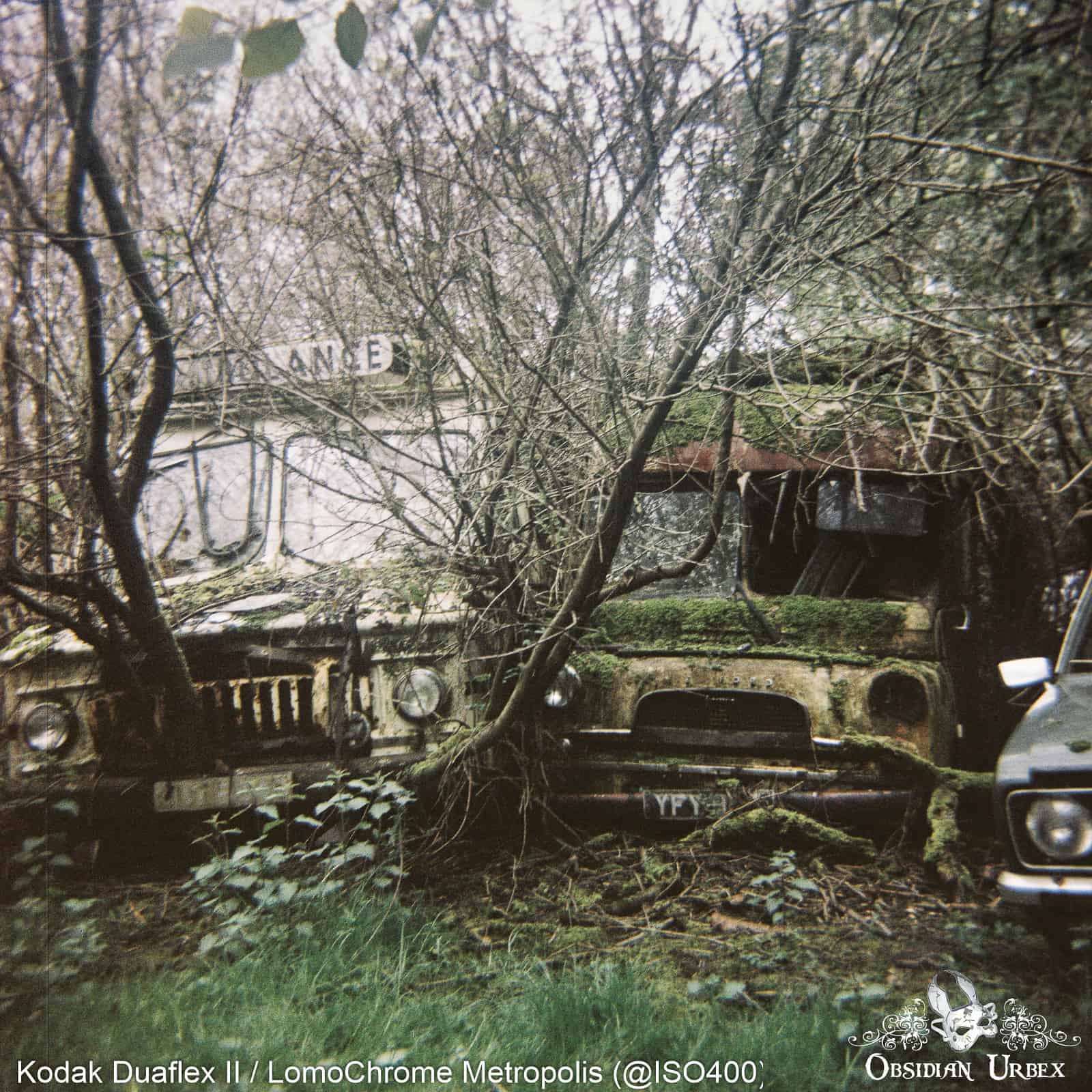 One summer afternoon, I headed off to one of my favourite car graveyards. I had picked up a roll of Lomography Metropolis, and was eager to try it out! I waited until sunset, hoping to enjoy the golden hour light. The collection of cars lies in a small woodland, so it is not the brightest of locations as the sun begins to sink. Factoring in the limitations of the Kodak Duaflex II (i.e fixed aperture and shutter speed), I metered this film ISO 400.