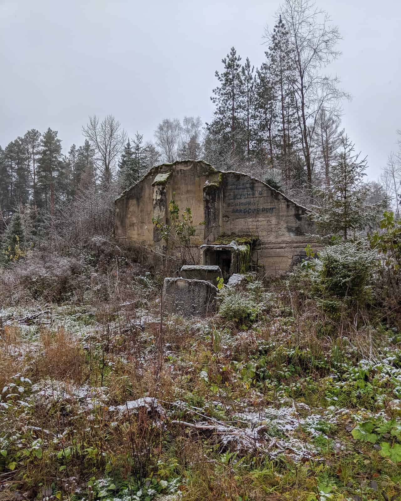 A fortuitous discussion with some locals yielded a surprise location. These two brothers told us of an old Soviet Nuclear Missle Base, hidden in the forest nearby. This base has four launch pads, built to launch R-12 thermonuclear ballistic missiles. We camped the night in the woods, awakening to a photogenic scattering of snow at the base. Although the launch pads were relatively unphotogenic, there were numerous bunkers and storage areas to explore.