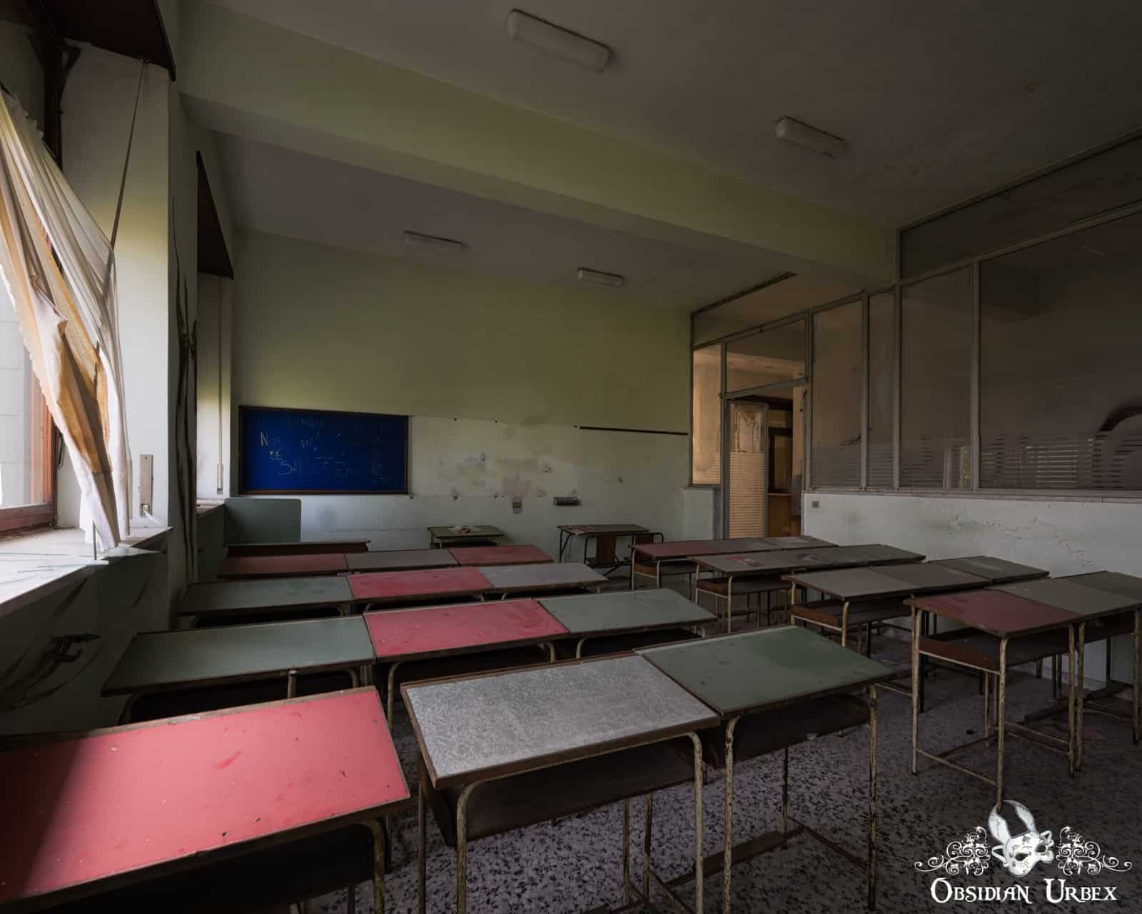 The Dark Music School is also known as Collegio S. This school was once a Roman Catholic boarding school. The college has been abandoned since the 1980s and is now in an advanced state of decay. In recent years vandalism and graffiti have almost destroyed this once beautiful educational establishment. We visited the college in the summer of 2018, as we travelled across Italy.