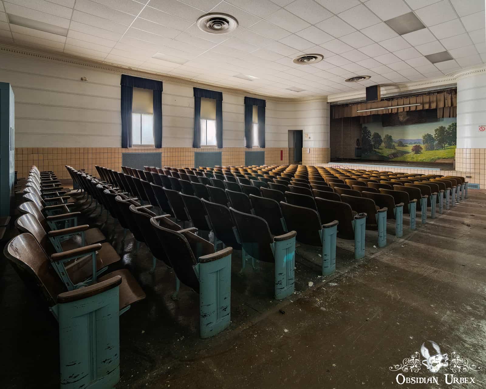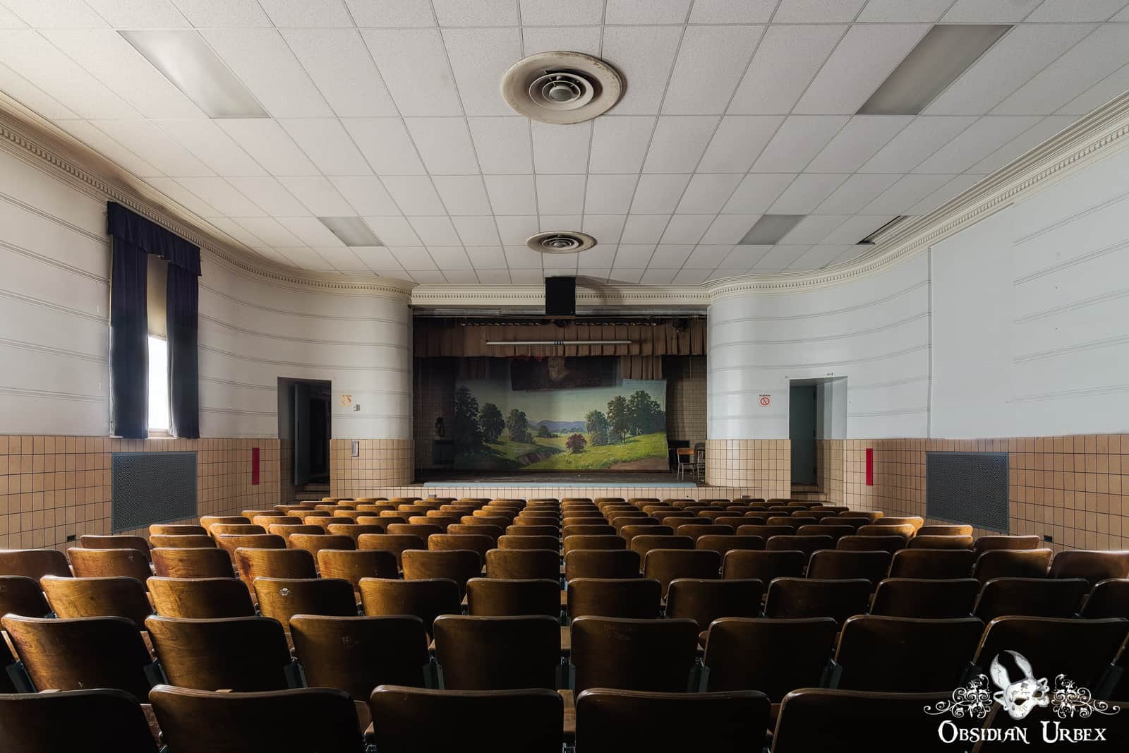 Sadly there is some graffiti in the auditorium which I managed to remove from photos with some creativity, but hopefully, it escapes future vandalism 🙁