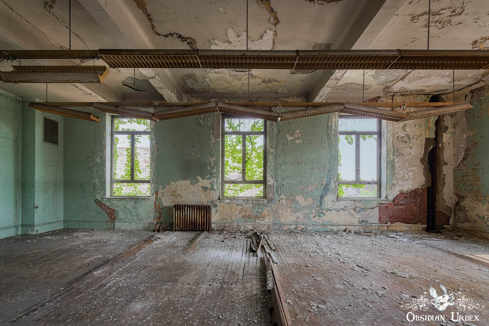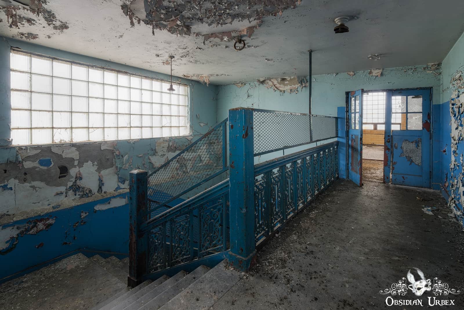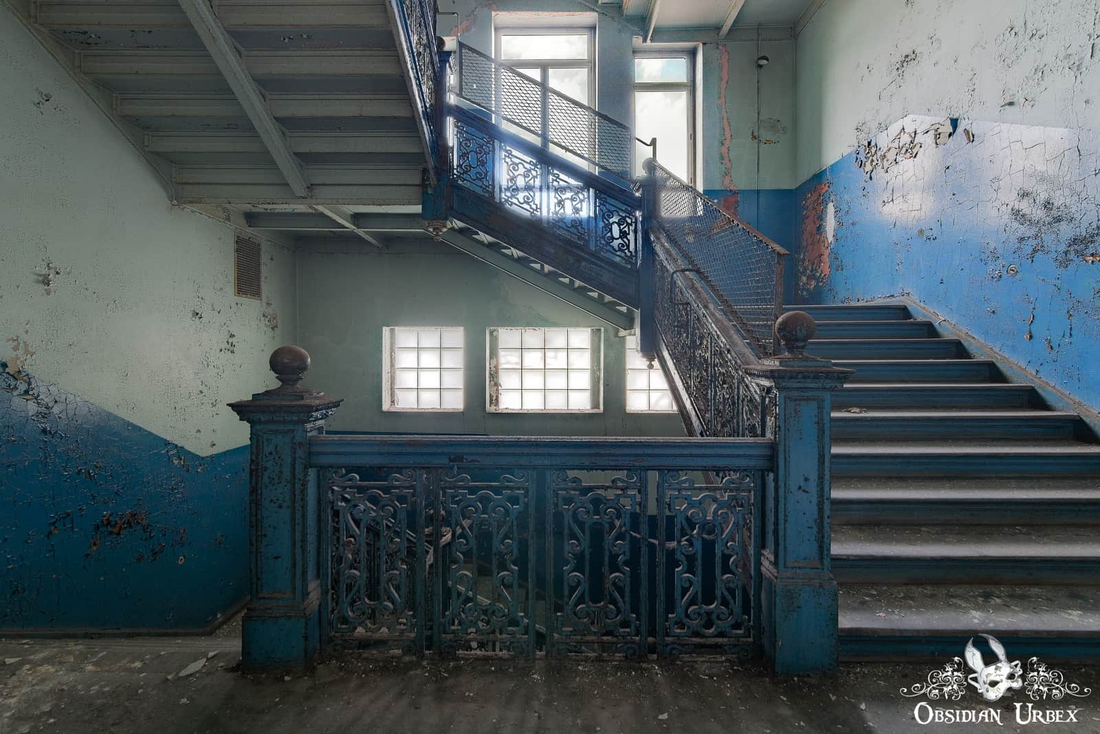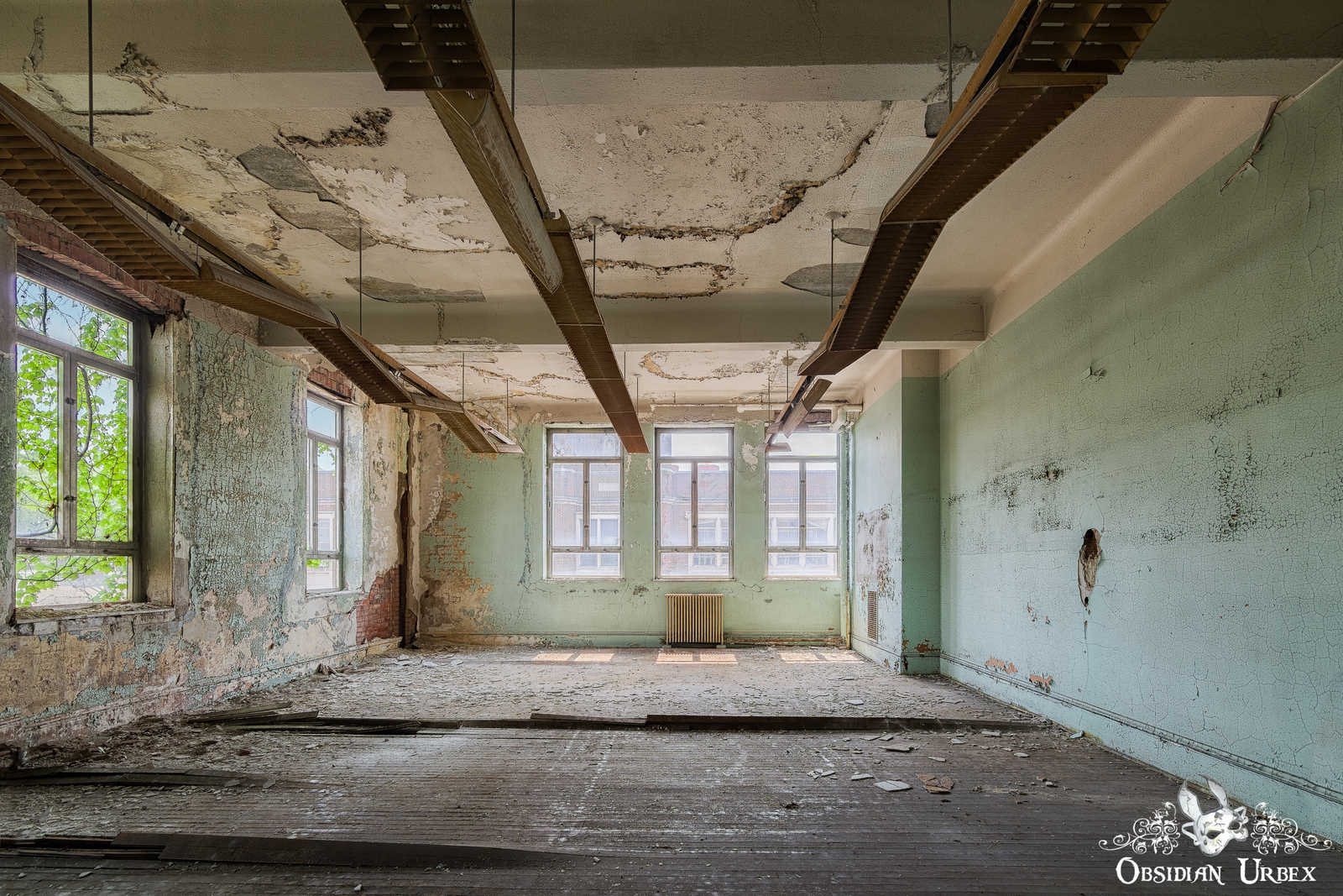 This Industrial Trade School was founded in the early 1900’s by an American Steel magnate. It was believed that from schools such as these, future captains of industry and innovation would spring. At the dedication ceremony all local businesses closed for the day, and the town was decorated with bunting. The joyous parade is said to have included over 20000 people. The local area began to decline in the 1970’s/1980’s, and it is likely this school closed soon after the nearby industry collapsed.