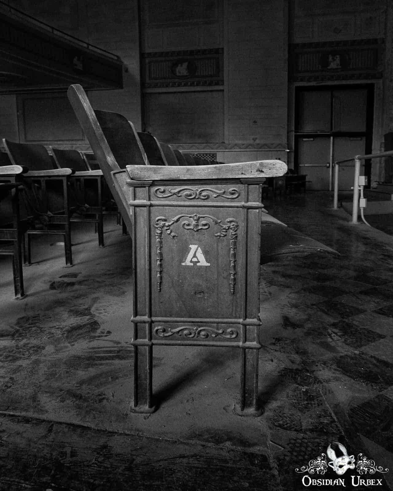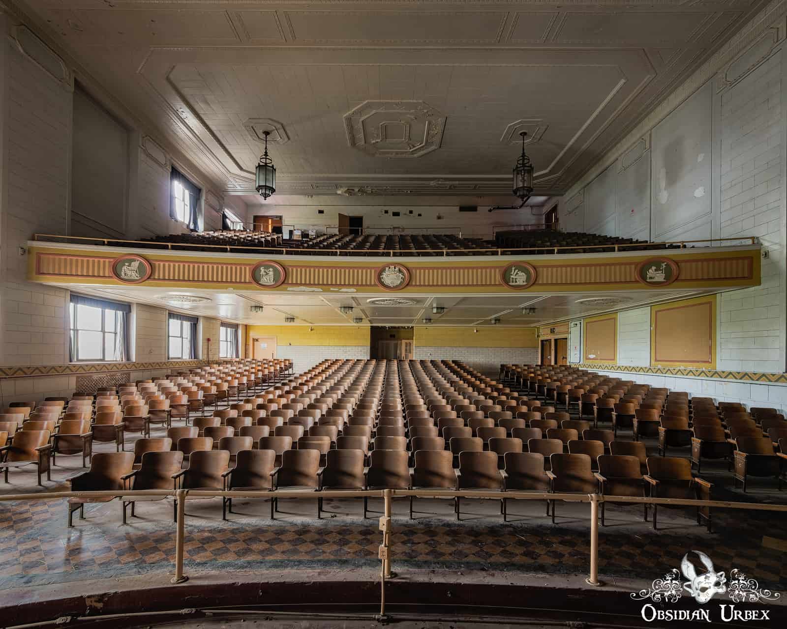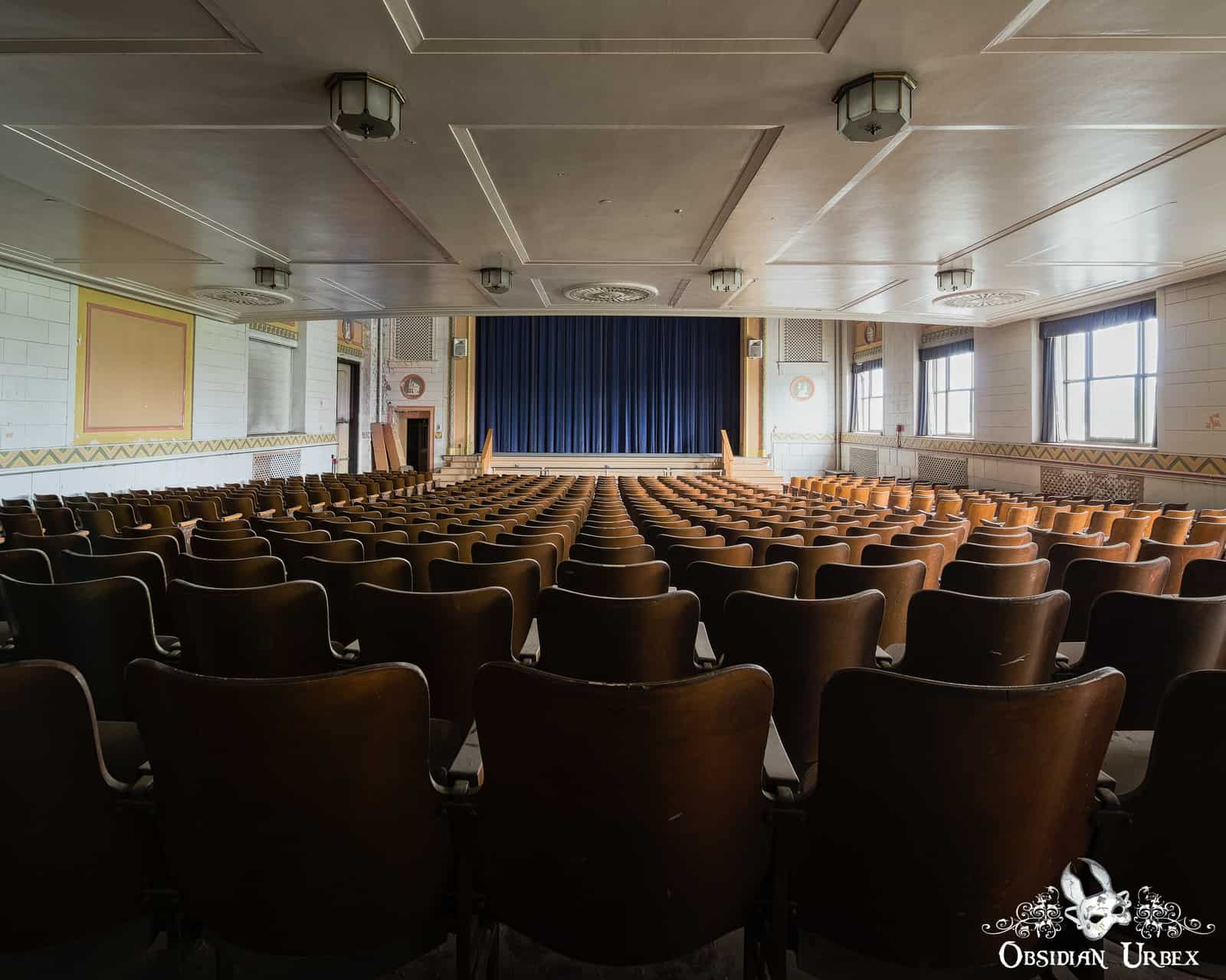 This disused Trade School Auditorium was once part of a large vocational training school. The dramatic Art Deco and Classical Revival building is perched high on a hill, overlooking the city below. This location was above much of the air pollution produced by the city’s steel mills and heavy industry below the hill. The school was built around 1930, costing over $1.5 million.