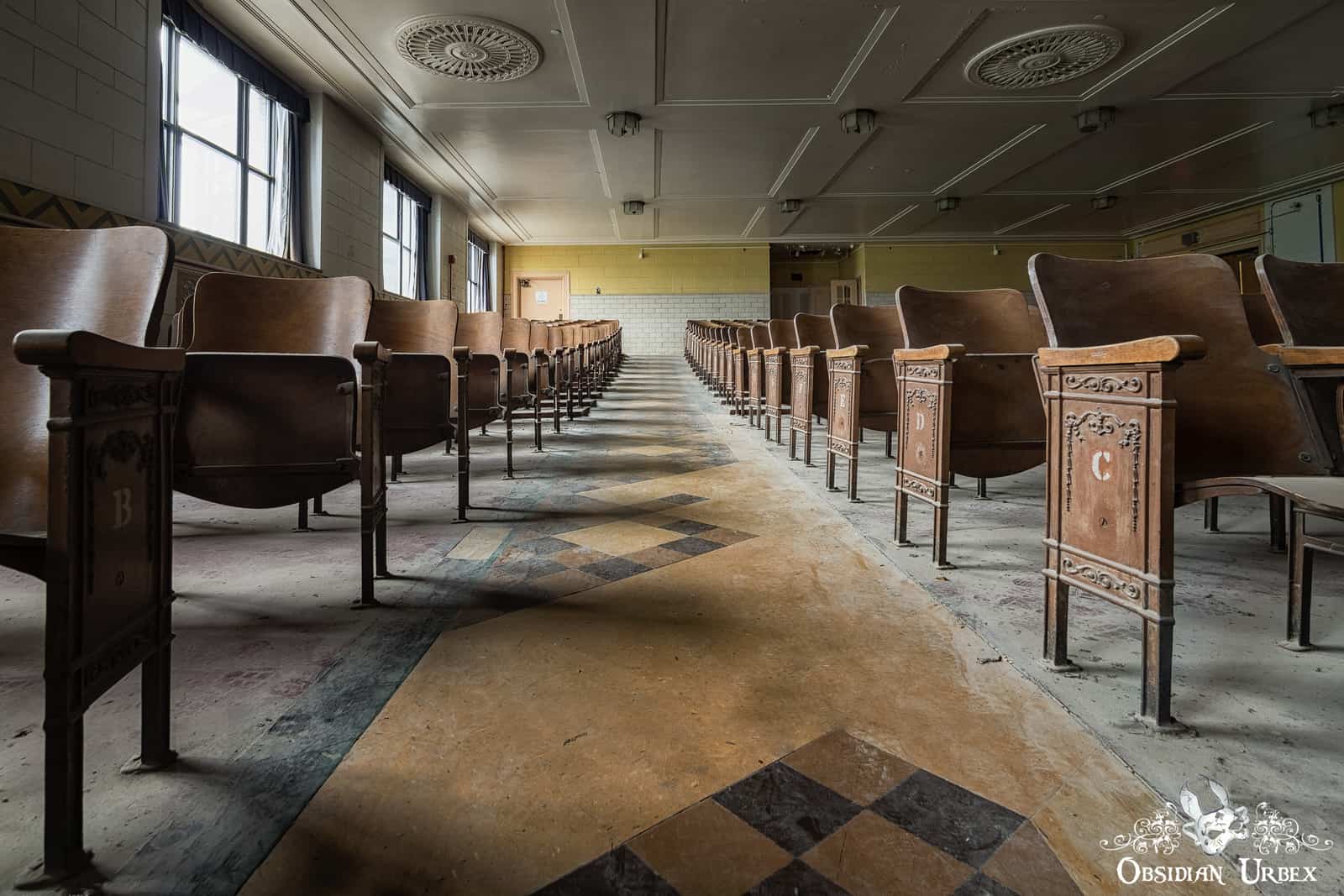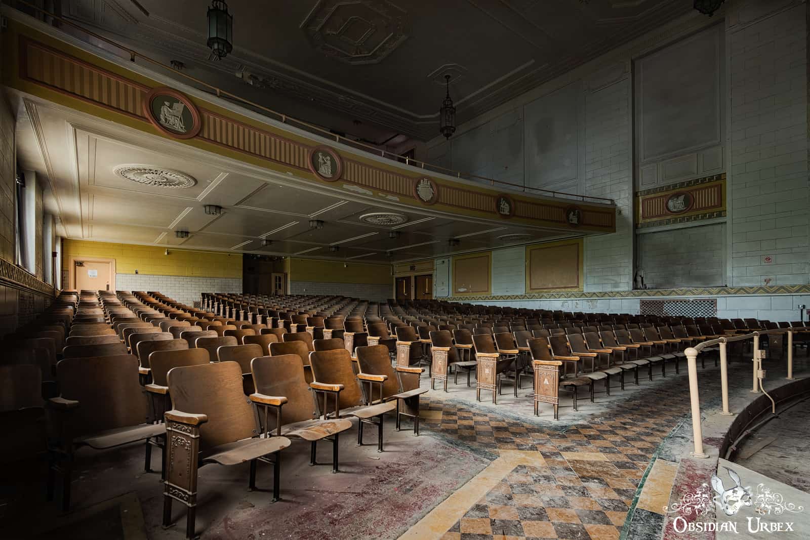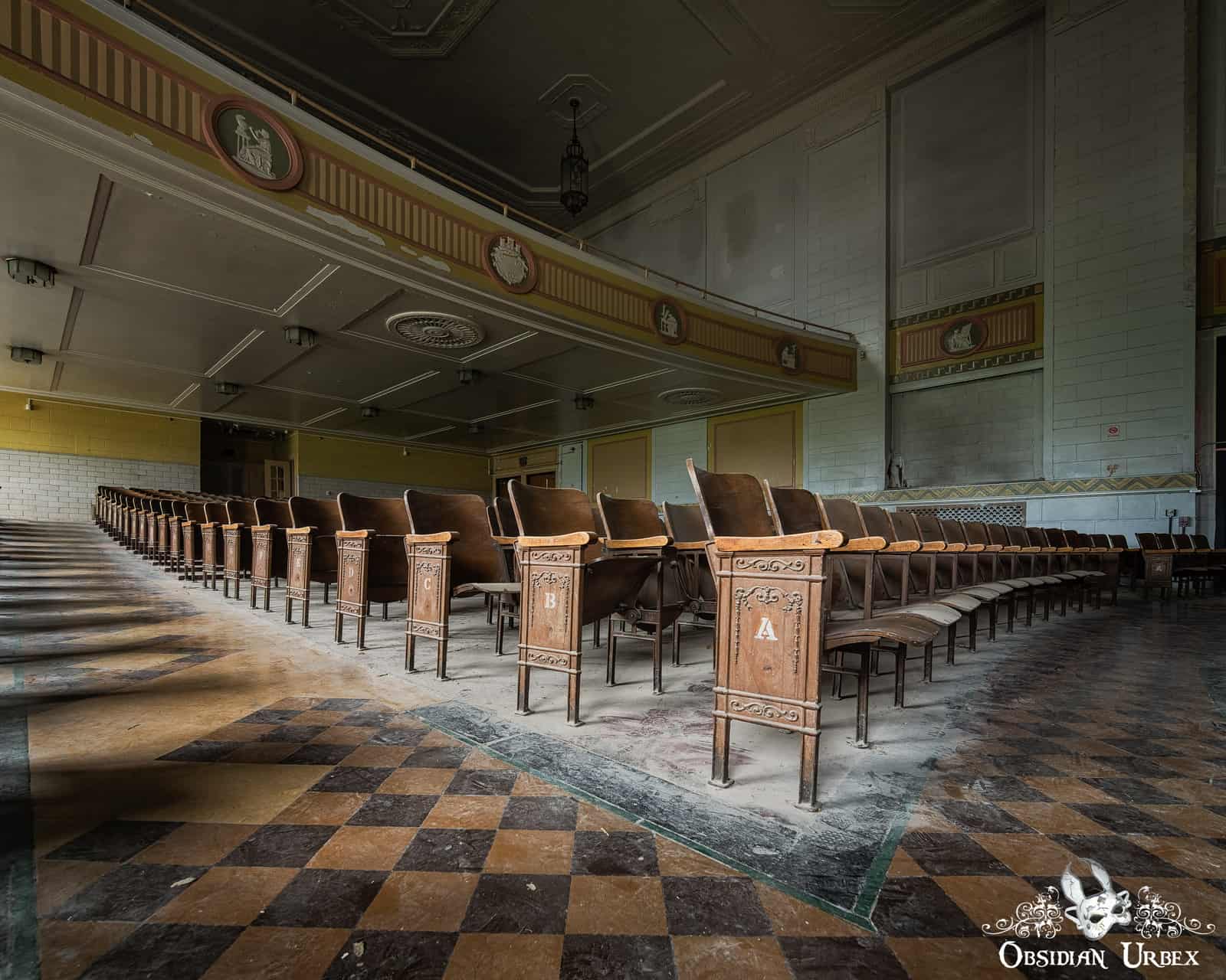 This disused Trade School Auditorium was once part of a large vocational training school. The dramatic Art Deco and Classical Revival building is perched high on a hill, overlooking the city below. This location was above much of the air pollution produced by the city’s steel mills and heavy industry below the hill. The school was built around 1930, costing over $1.5 million.