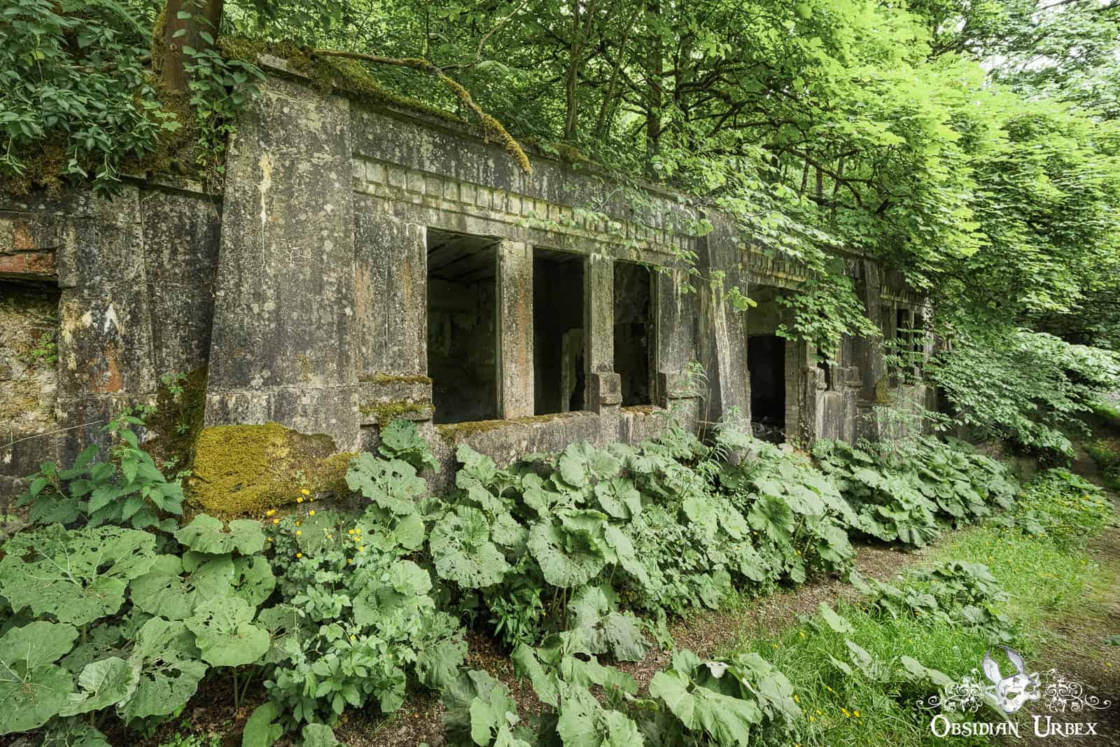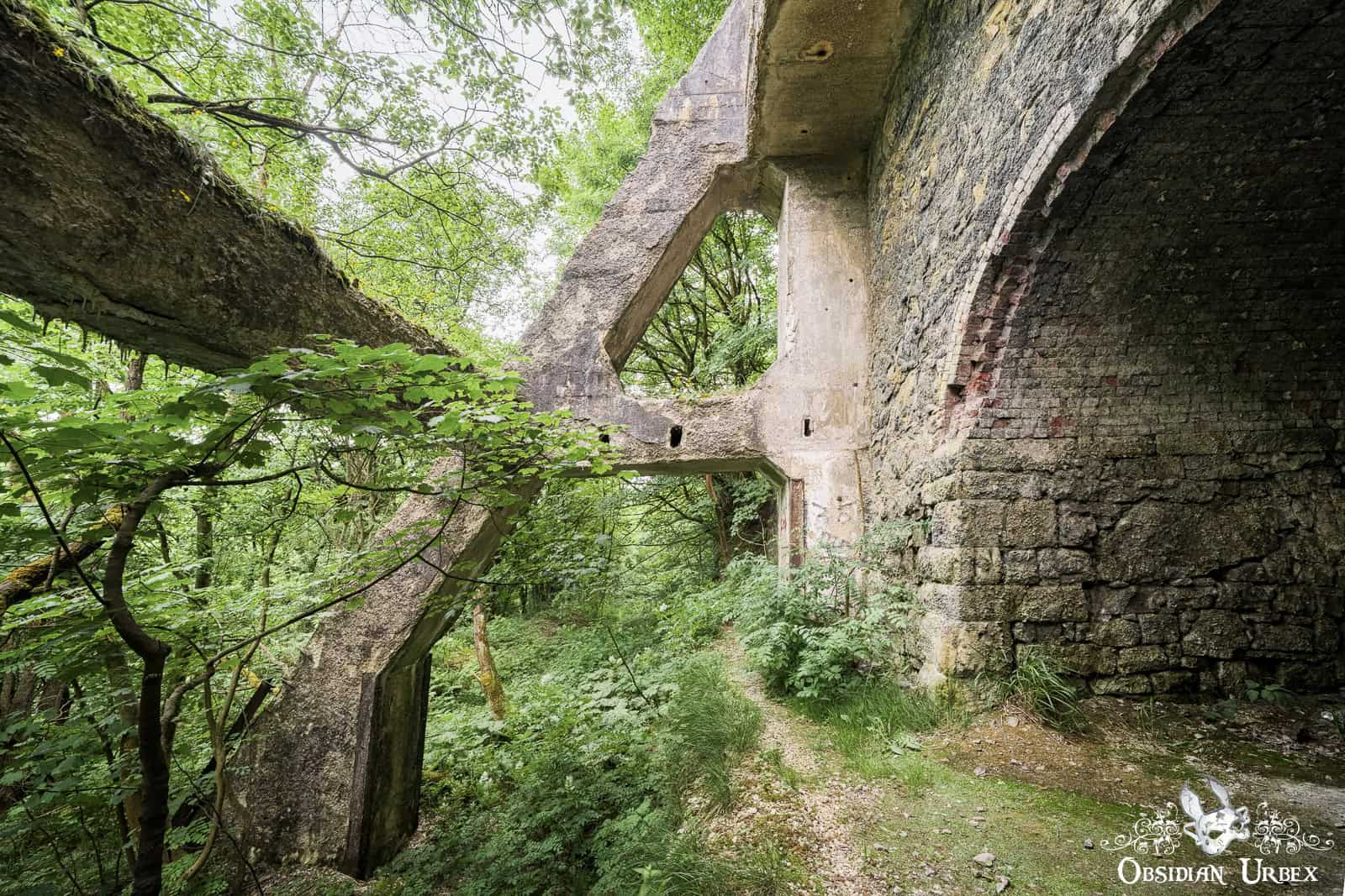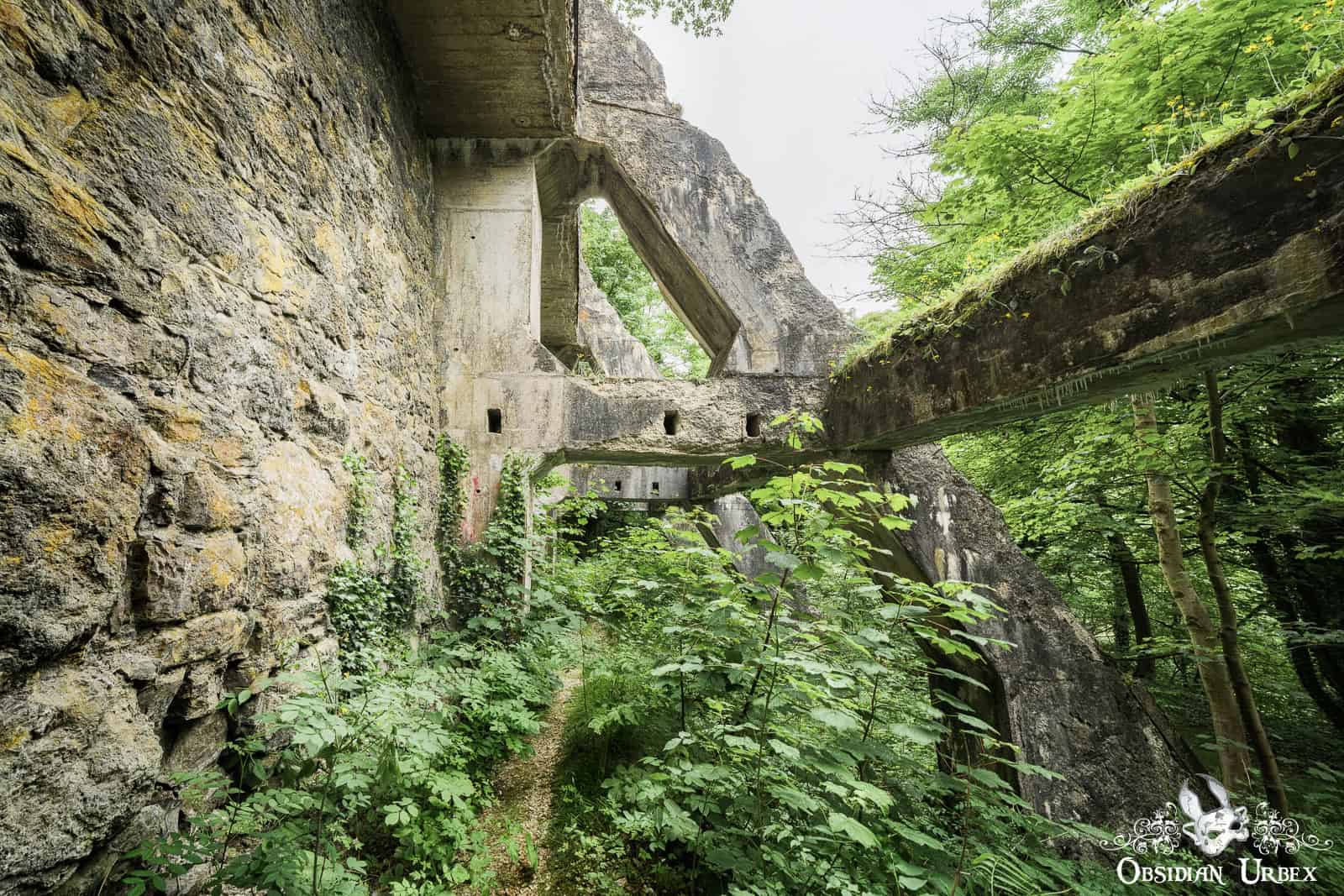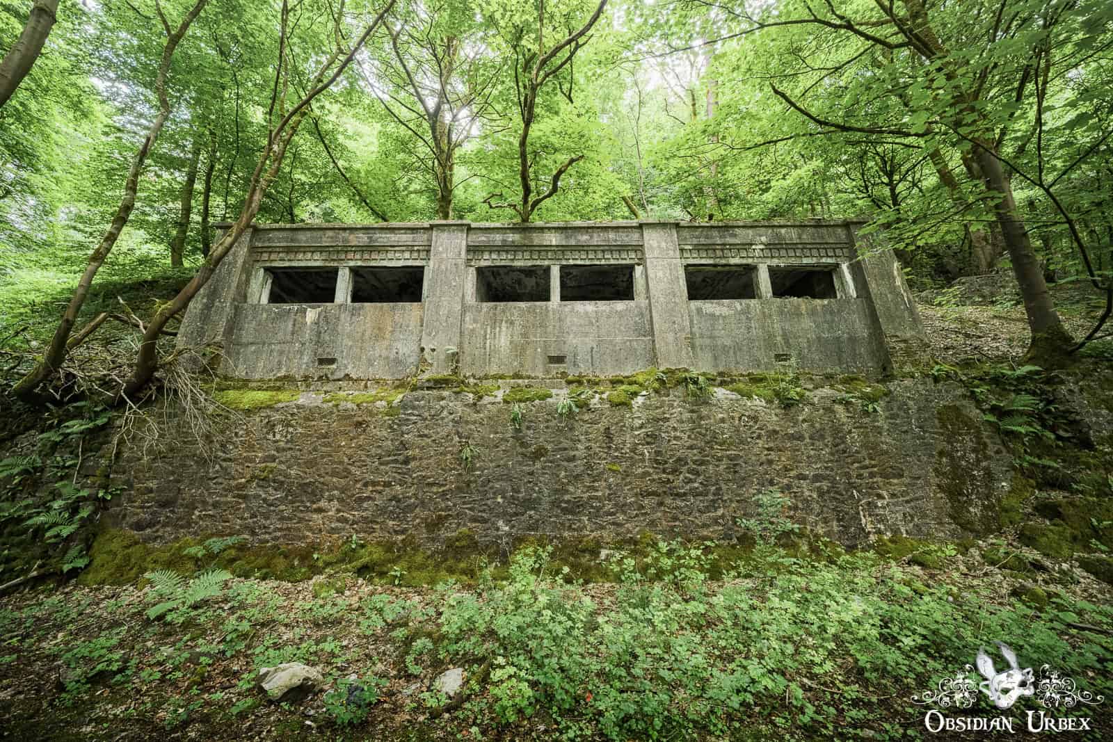 Cowdale Quarry has been abandoned for 70 years, now slowly it is being reclaimed by the forest. Its concrete structures, once designed to process limestone into industrial lime, now stand forgotten and crumbling. Tapered concrete walls rise out of the overgrowth, reaching dramatically up above the treeline.