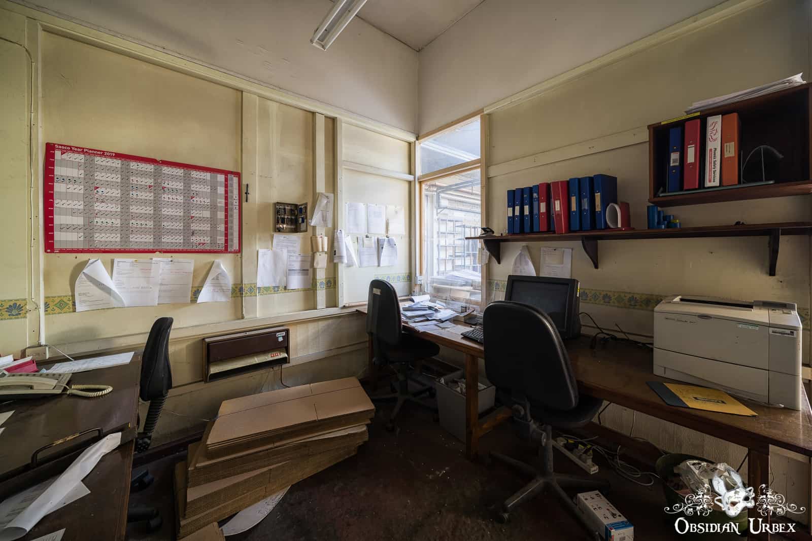 We visited the site right before the final stages of demolition towards the end of 2020 (check out this blog which rounds up my 2020 explores). Much of the factory had been cleared. Unfortunately, we missed out on seeing much of the machinery. Already the heavy demolition machines were on site. Some of the walls had been demolished, presumably to aid in clearing the larger machines out of the building. We had a good few hours exploring Fine Decor Wallpaper Factory, which still had some treasures tucked away.