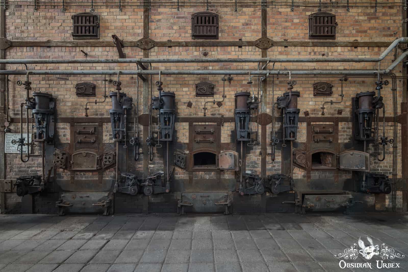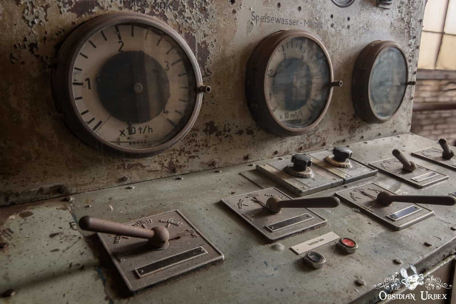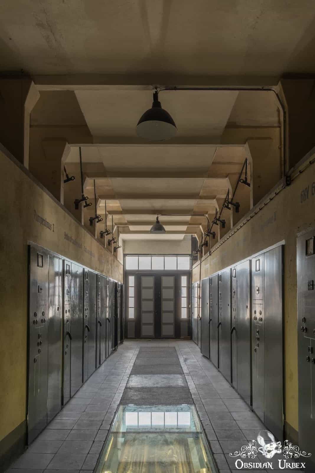 Kraftwerk P is a disused coal-fired power station in Germany. It features a fantastic Art Deco control room, turbine halls, boiler house, pump house, two chimneys and four cooling towers. Kraftwerk P was built during the 1920s, and remained one of the most advanced power stations in Germany well into the 1930s. It was intended to provide additional power during peak-hours of electricity demand, both domestically and industrially. Brown coal (Lignite) was supplied to the power station from nearby open cast coal mines, generating over 50 megawatts of electricity after additional 1940s modernisation. There were five gas turbines in the turbine halls (only one remained at the time of our visit), which were connected to five boilers. Large transformers were added in the 1970s to increase the output voltages. Kraftwerk P was decommissioned and taken off the grid in the early 1990s.
