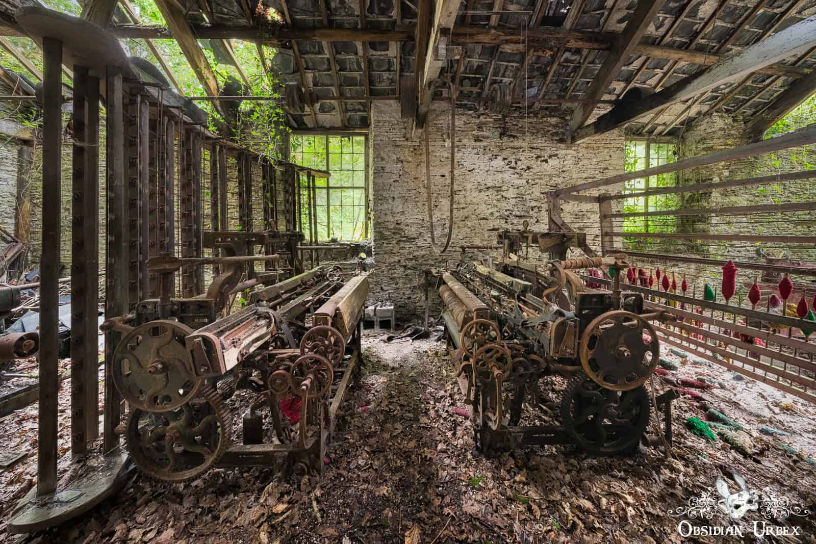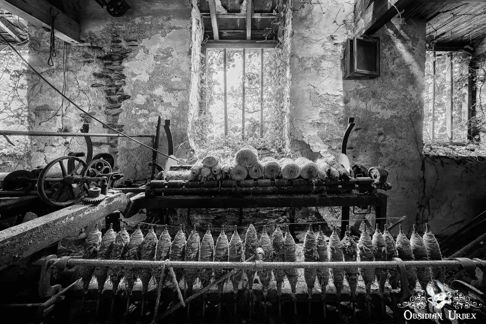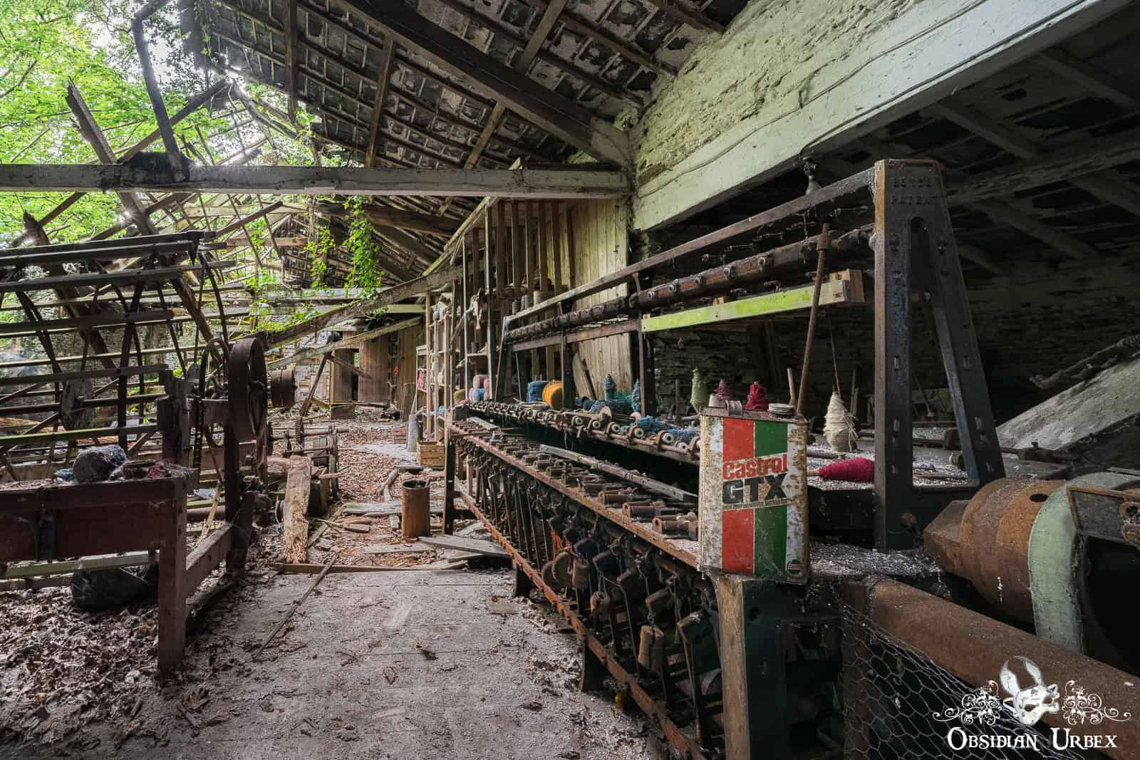 Nestled between a bubbling river and rolling green Welsh hills, lay the abandoned Old Tweed Mills. Their story, spanning over 150 years, follows the Welsh textile industry from the Industrial Revolution boom to the fall of the British textile industry in the mid-20th century. The forest is slowly engulfing these ruins, as they are collapsing. However, inside are the skeletal remains of old machines, still strung with colourful woollen threads.