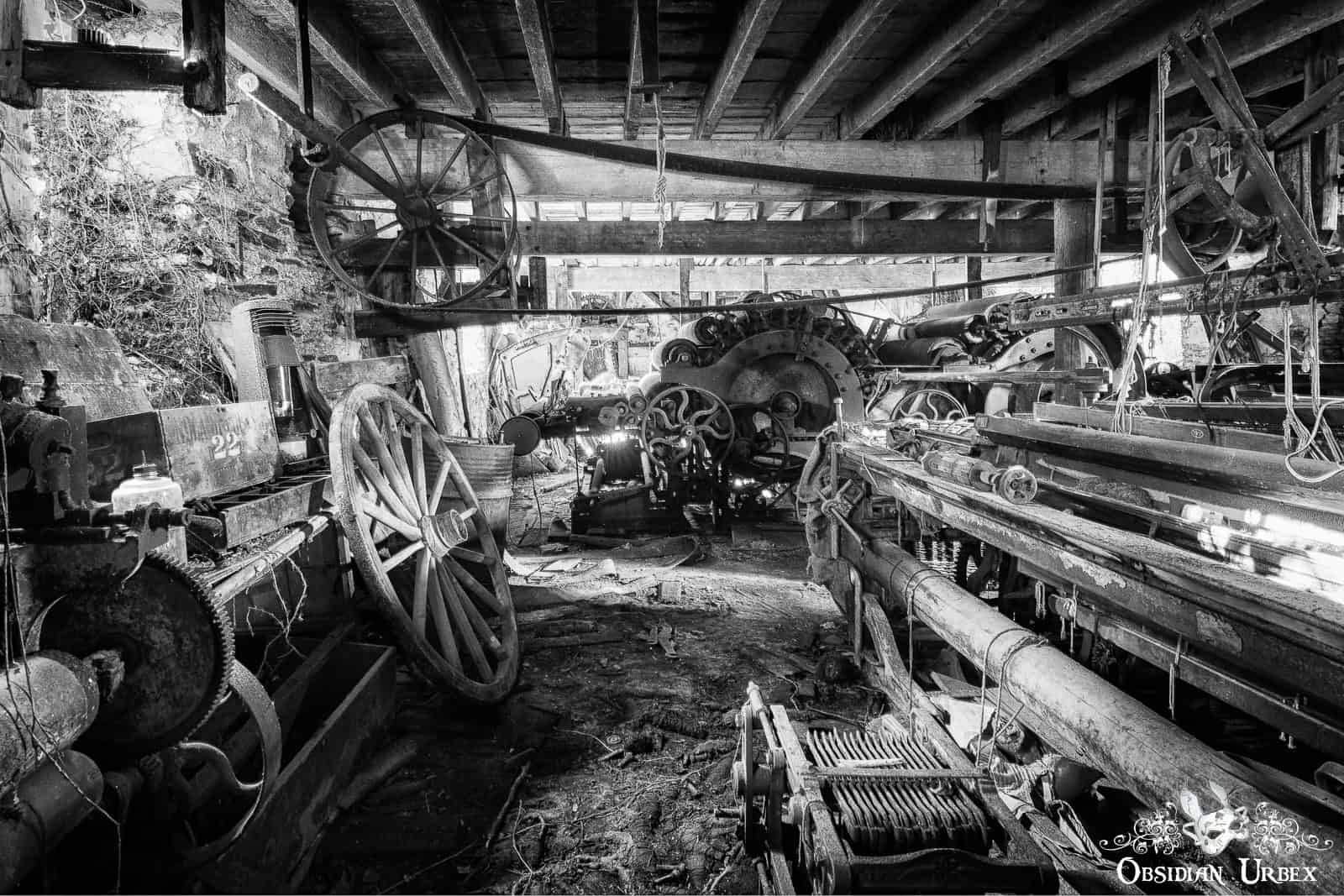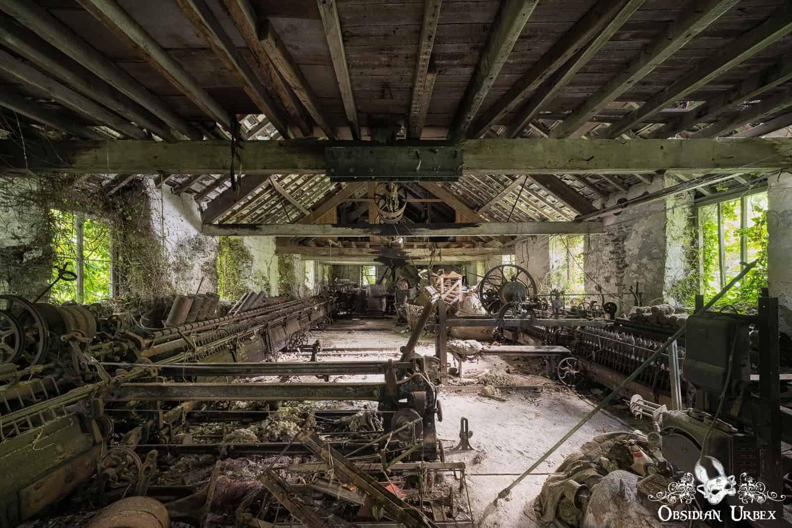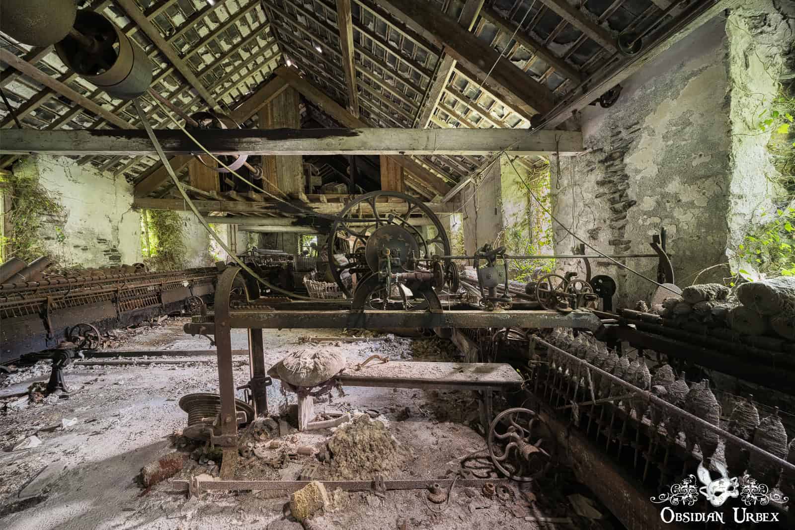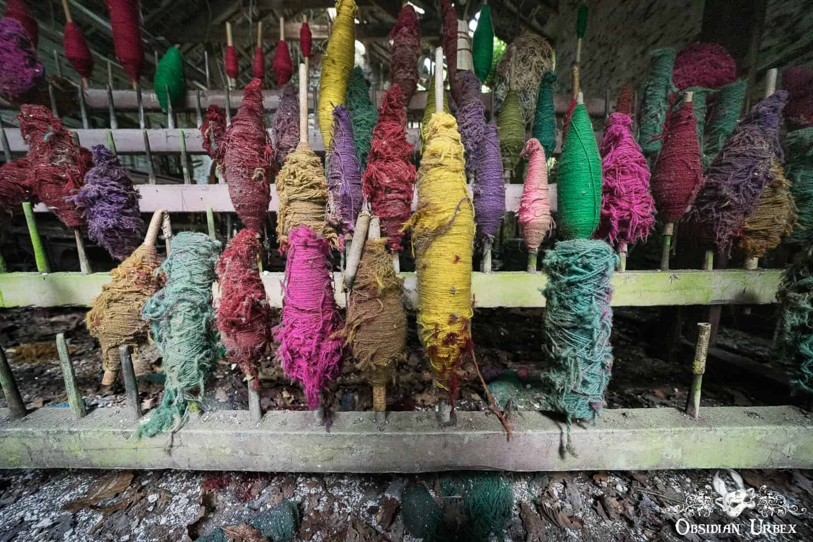 Nestled between a bubbling river and rolling green Welsh hills, lay the abandoned Old Tweed Mills. Their story, spanning over 150 years, follows the Welsh textile industry from the Industrial Revolution boom to the fall of the British textile industry in the mid-20th century. The forest is slowly engulfing these ruins, as they are collapsing. However, inside are the skeletal remains of old machines, still strung with colourful woollen threads.