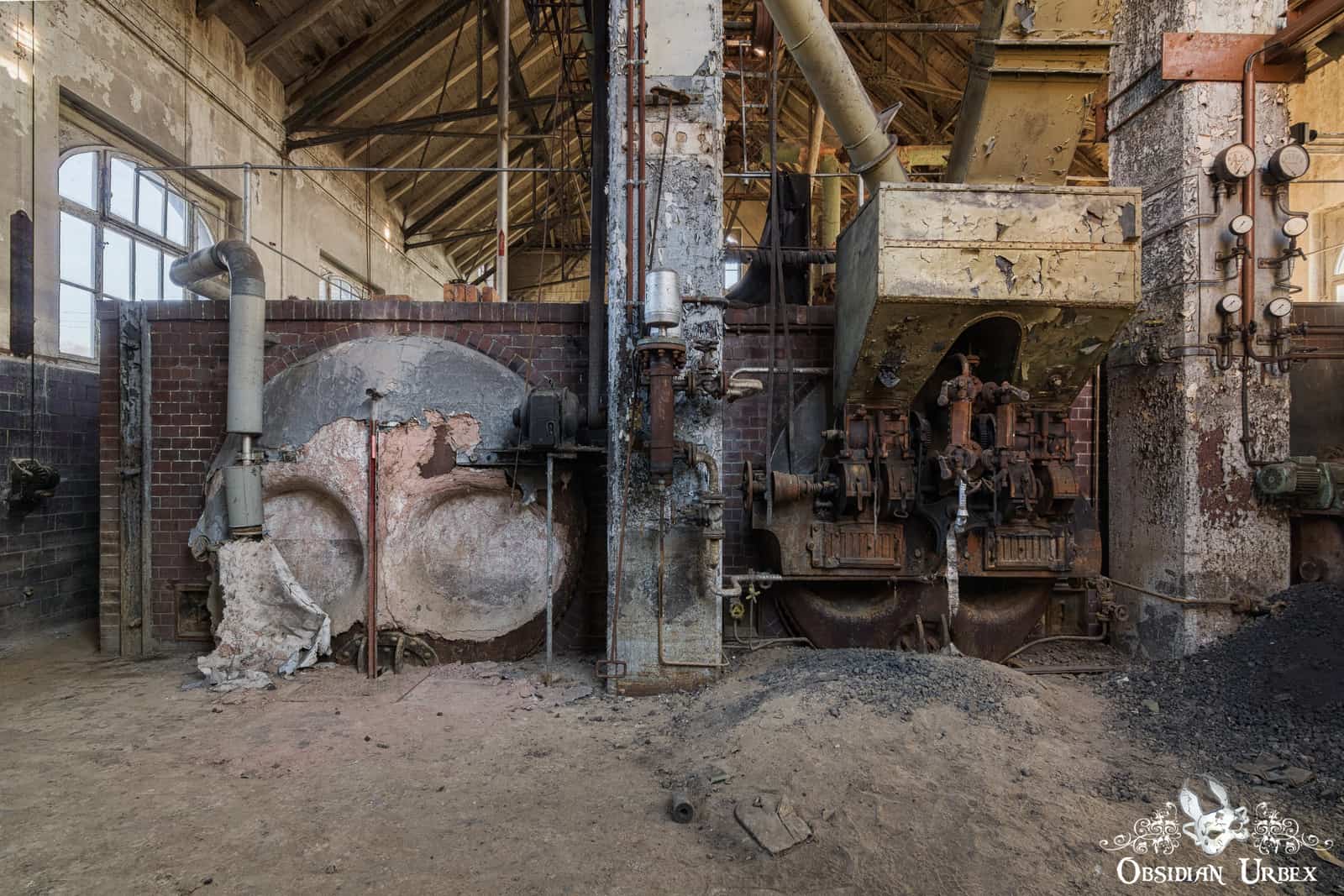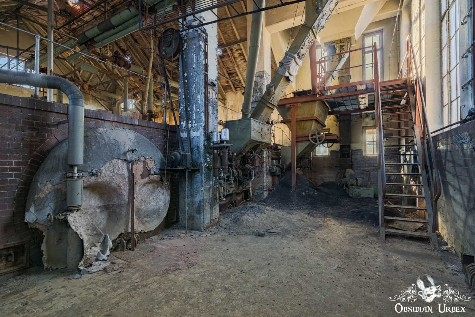 In addition to the turbine room, there is an adjoining boiler house. Piles of coal lay on standby, ready to stoke furnaces that have been cold for decades.