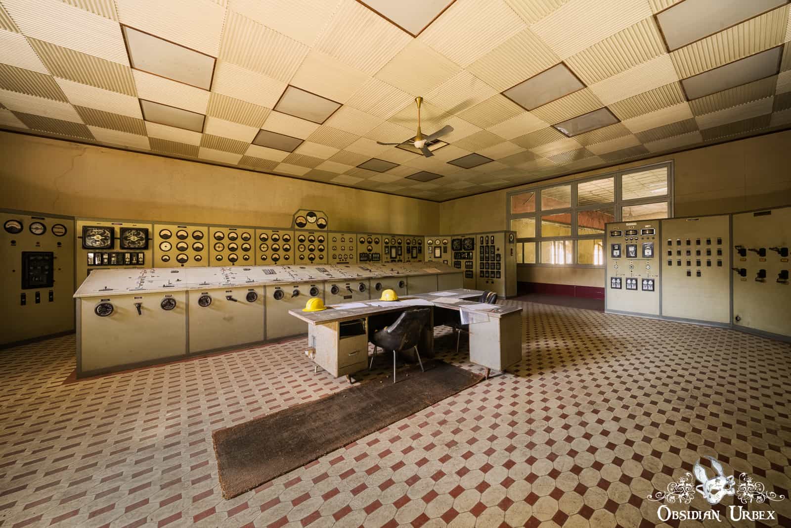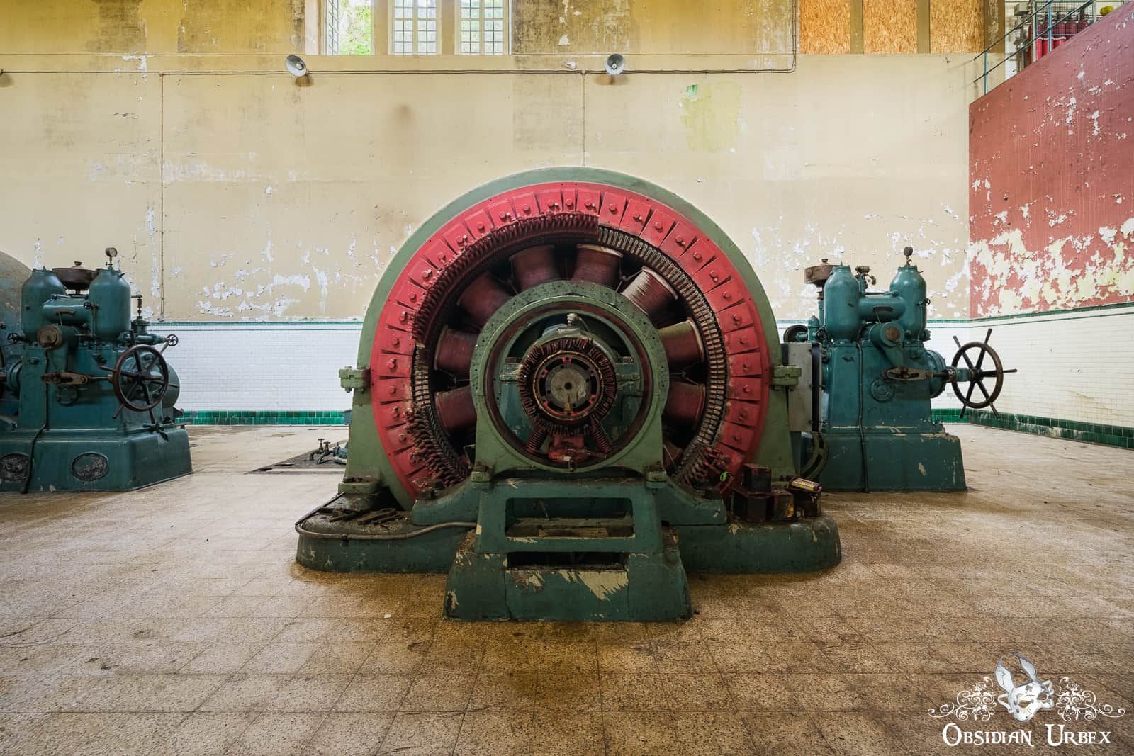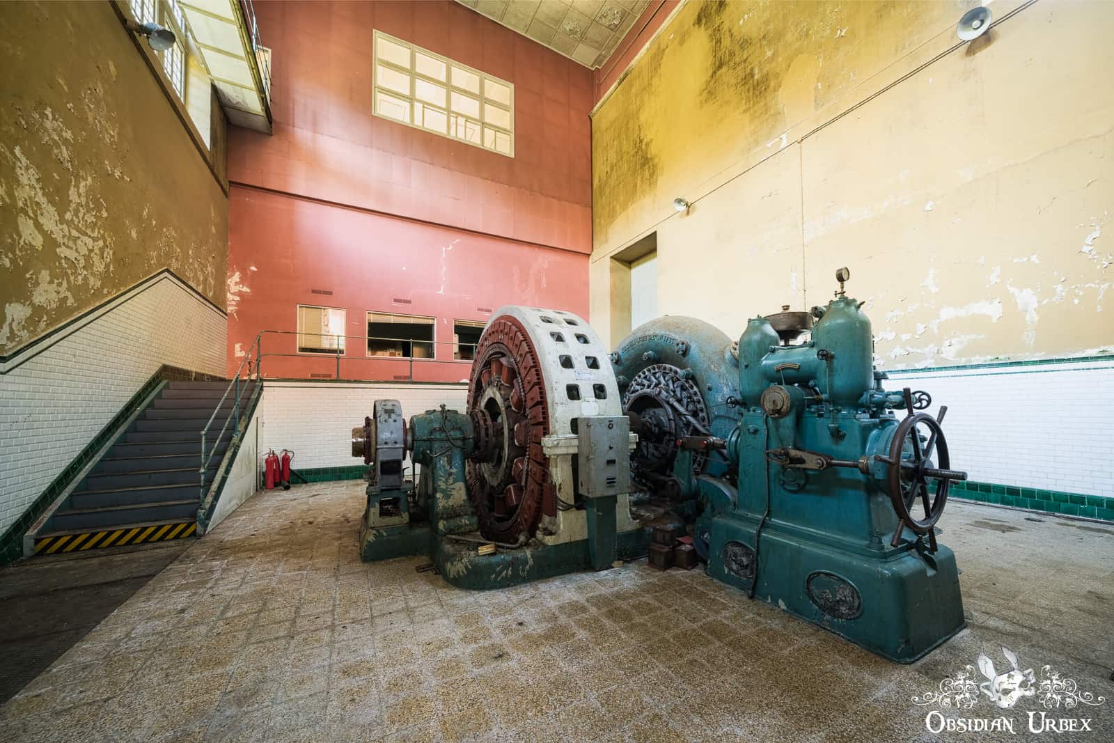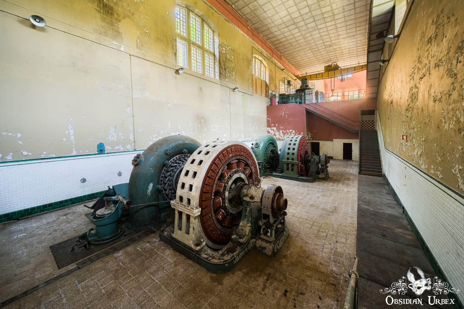 Usina Hidrelétrica is a 1920s hydroelectric powerplant in Portugal. An abandoned powerplant is always a treat, but this one is something special. These are some of the most beautiful turbines I have photographed, with their blues and greens set against yellow walls and checkerboard floors. Overlooking the turbine hall, three floors up, is the control room. It is huge, with a large centre console as well as two banks running along the edges of the room’s long axis. In the middle of the room is a desk, right underneath a single, ineffectual-looking ceiling fan. I do wonder how much relief that fan offered workers during hot Portuguese summers!