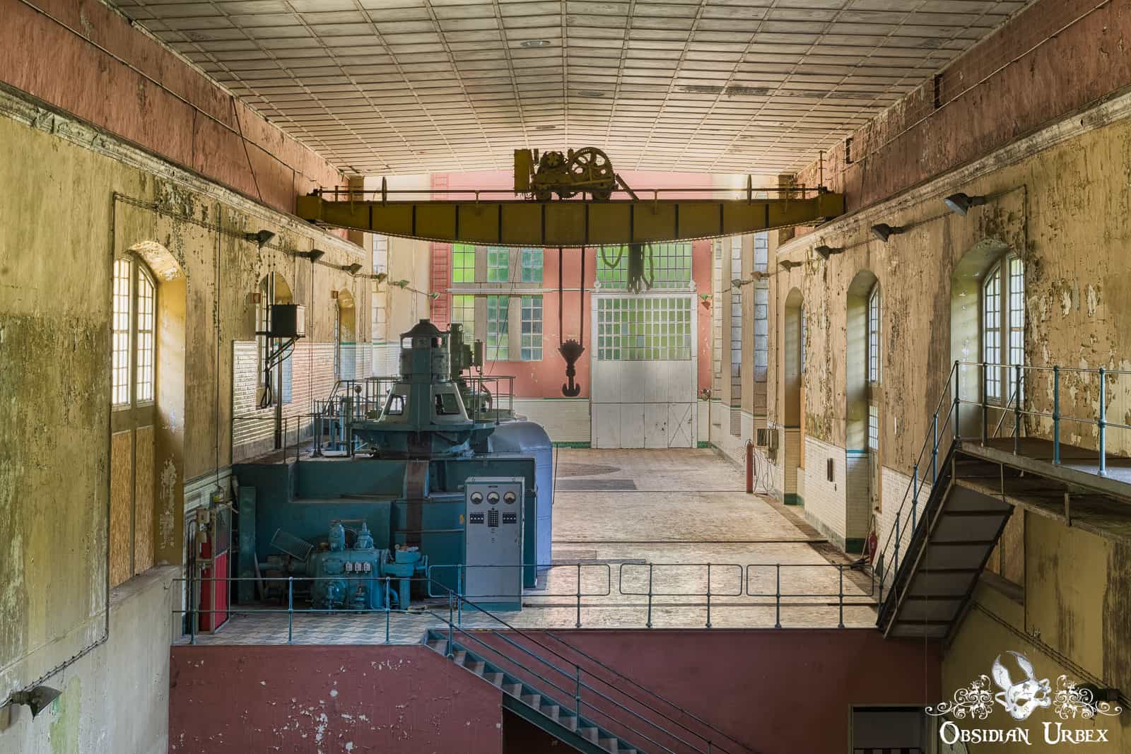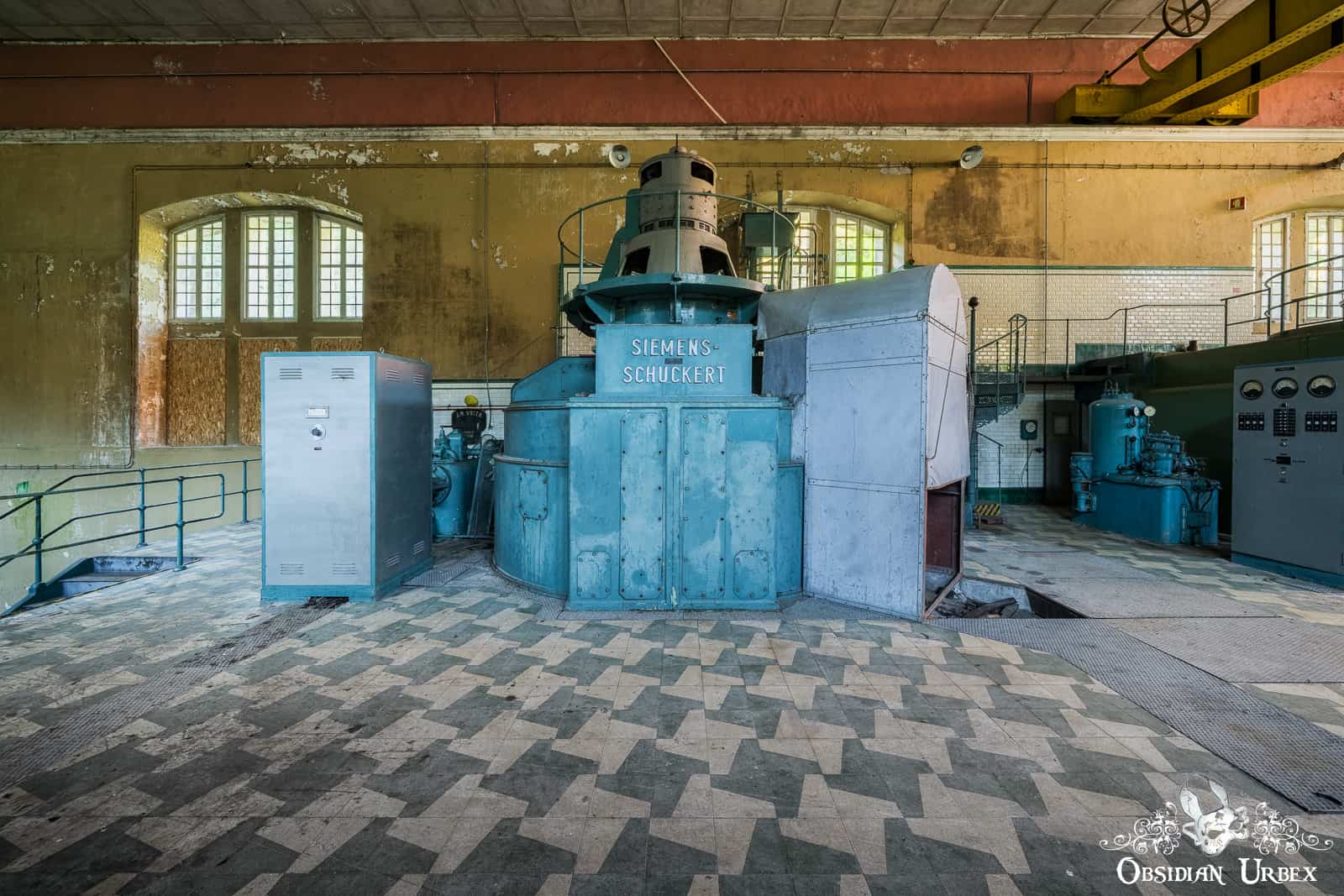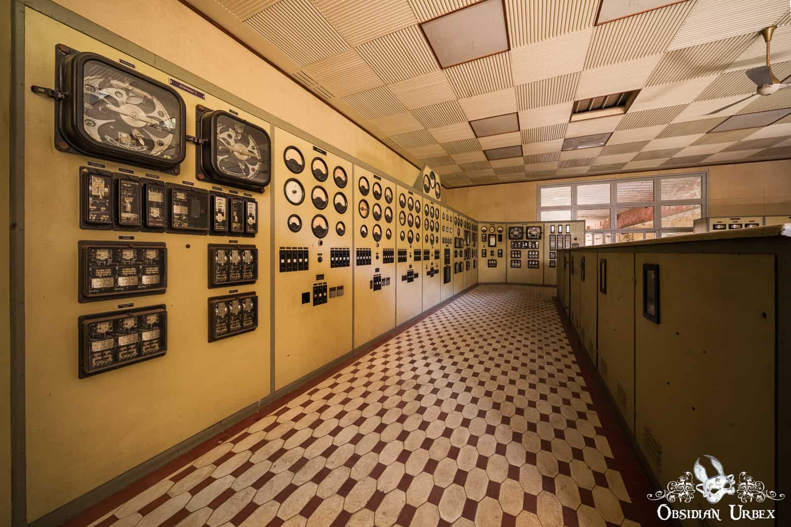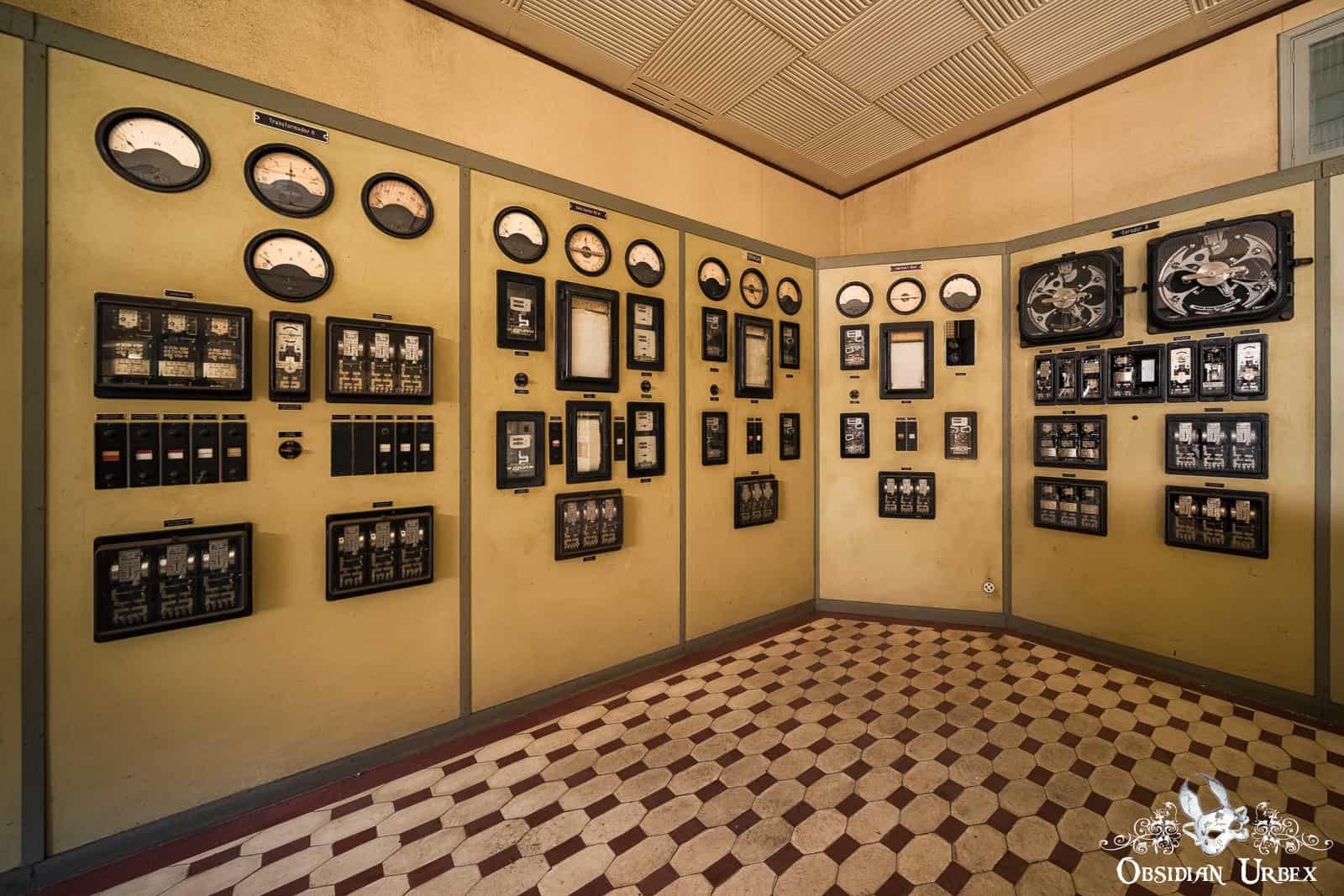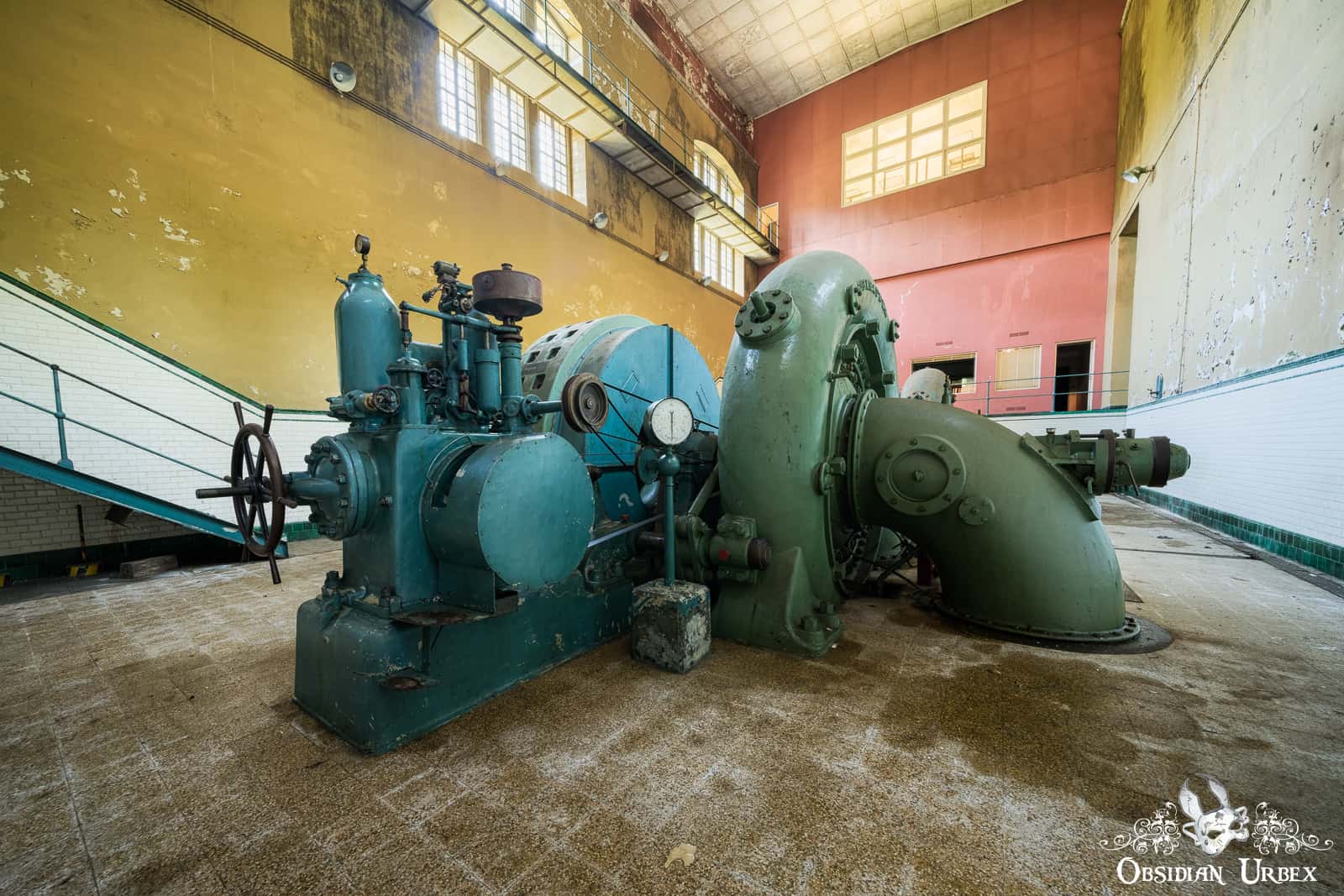 Usina Hidrelétrica is a 1920s hydroelectric powerplant in Portugal. An abandoned powerplant is always a treat, but this one is something special. These are some of the most beautiful turbines I have photographed, with their blues and greens set against yellow walls and checkerboard floors. Overlooking the turbine hall, three floors up, is the control room. It is huge, with a large centre console as well as two banks running along the edges of the room’s long axis. In the middle of the room is a desk, right underneath a single, ineffectual-looking ceiling fan. I do wonder how much relief that fan offered workers during hot Portuguese summers!