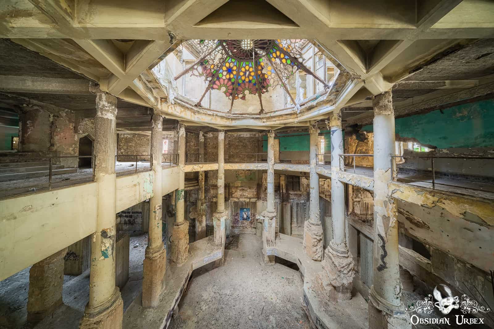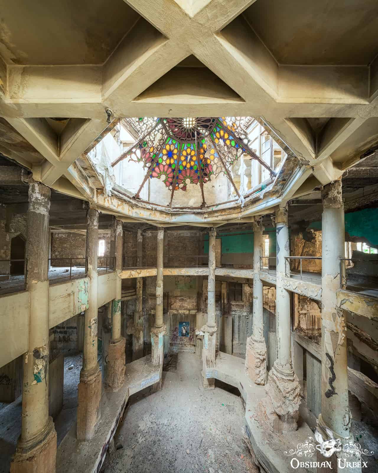 The 1920s Grand Theatre was once a thriving cultural venue in Lebanon. This once-beautiful location is now little more than a shell due to decades of civil war damage. The horseshoe-shaped auditorium used to be able to hold over 600 people. This large audience was spread across several levels of seating; two balconies and stalls. A steel dome atop the auditorium could be pulled open on rails to let in fresh air during the scorching summers of Lebanon. The towering foyer’s dome ceiling was stained glass-decorated.