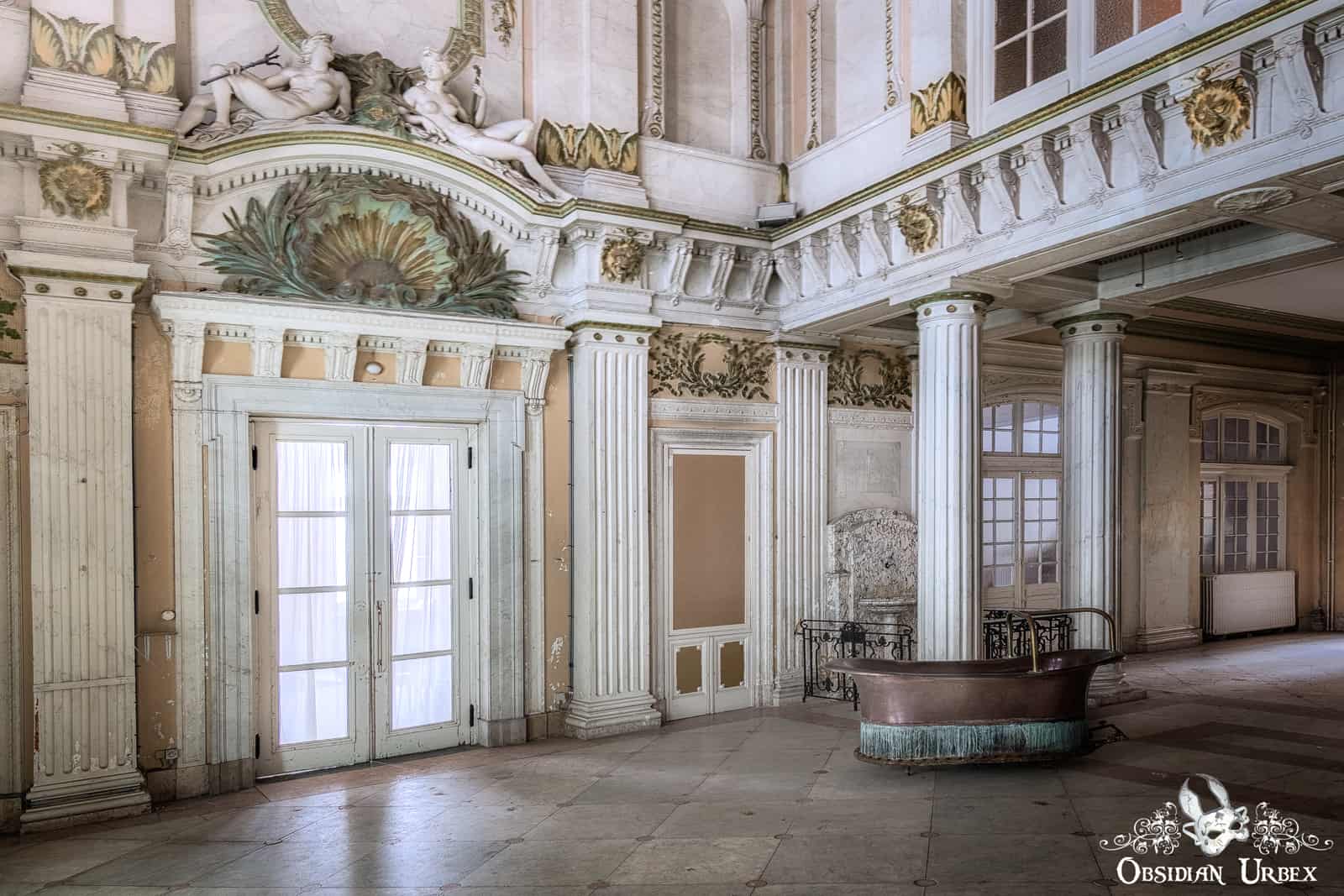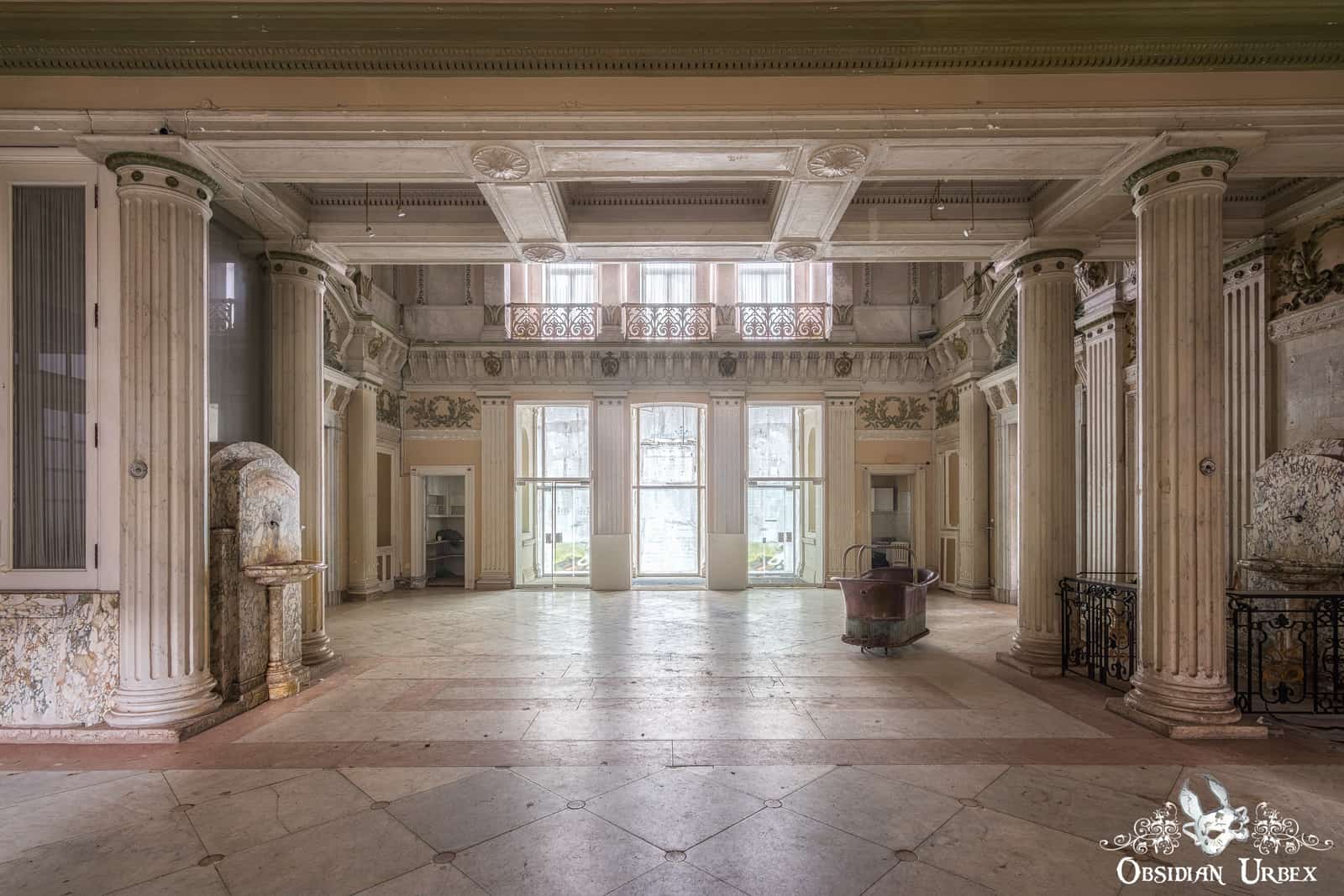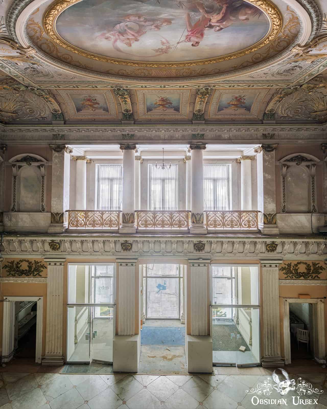On a busy Belgium street, the spectacular Alla Italia hides behind an unassumingly plain facade. The large but comparatively modest exterior hides a classic European lost place. The spa was built in the second half of the 19th Century, tapping into a thermal spring that had been used since at least the 1300s. The spring water is said to increase fertility, and so it has been frequented for centuries by newlyweds. Since this spa opened, thousands of affluent Belgians would have bathed and been treated here annually. The inside is heavily inspired by French Neo-Renaissance and Italian architecture, featuring lavishly painted ceilings and decorated marble columns. Alla Italia closed down in the early 21st Century when a more modern facility opened up nearby.