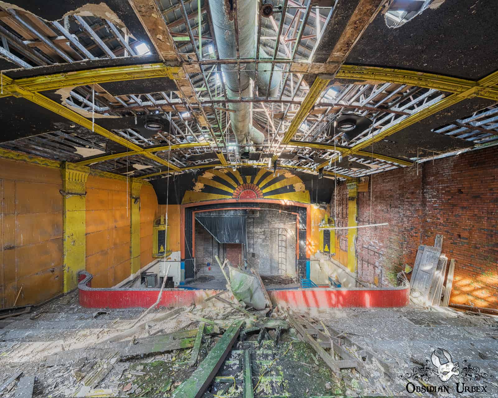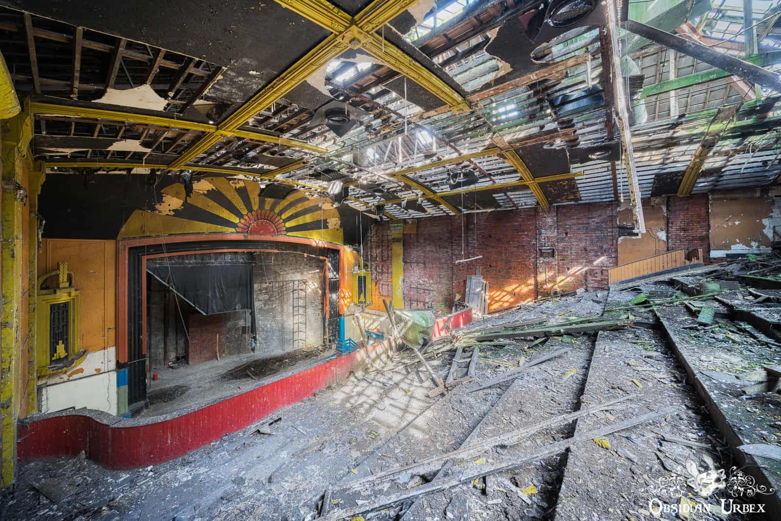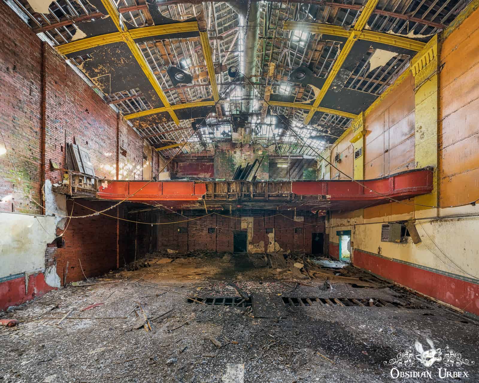 This wonderful Art Deco Cinema was once a bustling entertainment venue. It is located in a small English town, which is surrounded by rolling hills and countryside. The once grand building was in ruins at the time of my visit. The roof had partially collapsed and years of water ingress had taken their toll. Rotting wooded floors, crumbling concrete and rusting metal work all made this a cautious explore. I visited this location during 2020; a year where I explored several other British theatres/cinemas.