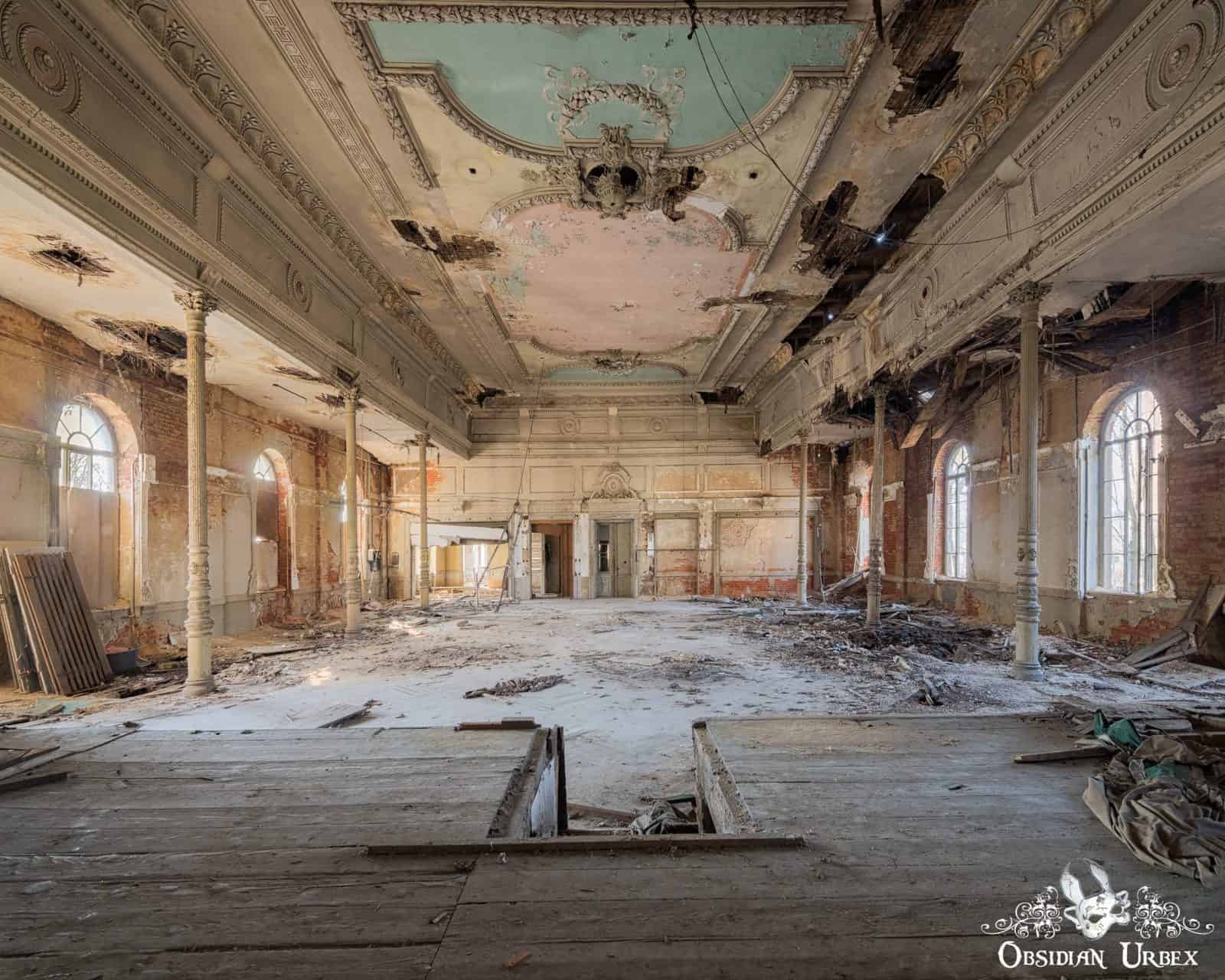 The hall may have served as a furniture distribution warehouse in recent years. The locals apathetically watched as I climbed in through the window in plain view.