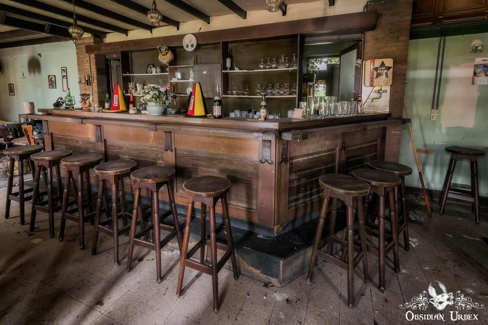 Cafe ons Moe is an abandoned pub, bar, cafe or tavern in Belgium. This location is also called Moe’s Tavern. Externally this looks like any small Belgian cafe/bar. This is a place locals would come to while away afternoons and evenings among old friends. Upstairs is a small bedroom, with the usual religious statuettes found in Belgian houses belonging to people of this generation. This was truly a small village old-fashioned pub; if you needed to use the bathroom, this would be accessed through the owners own living room!