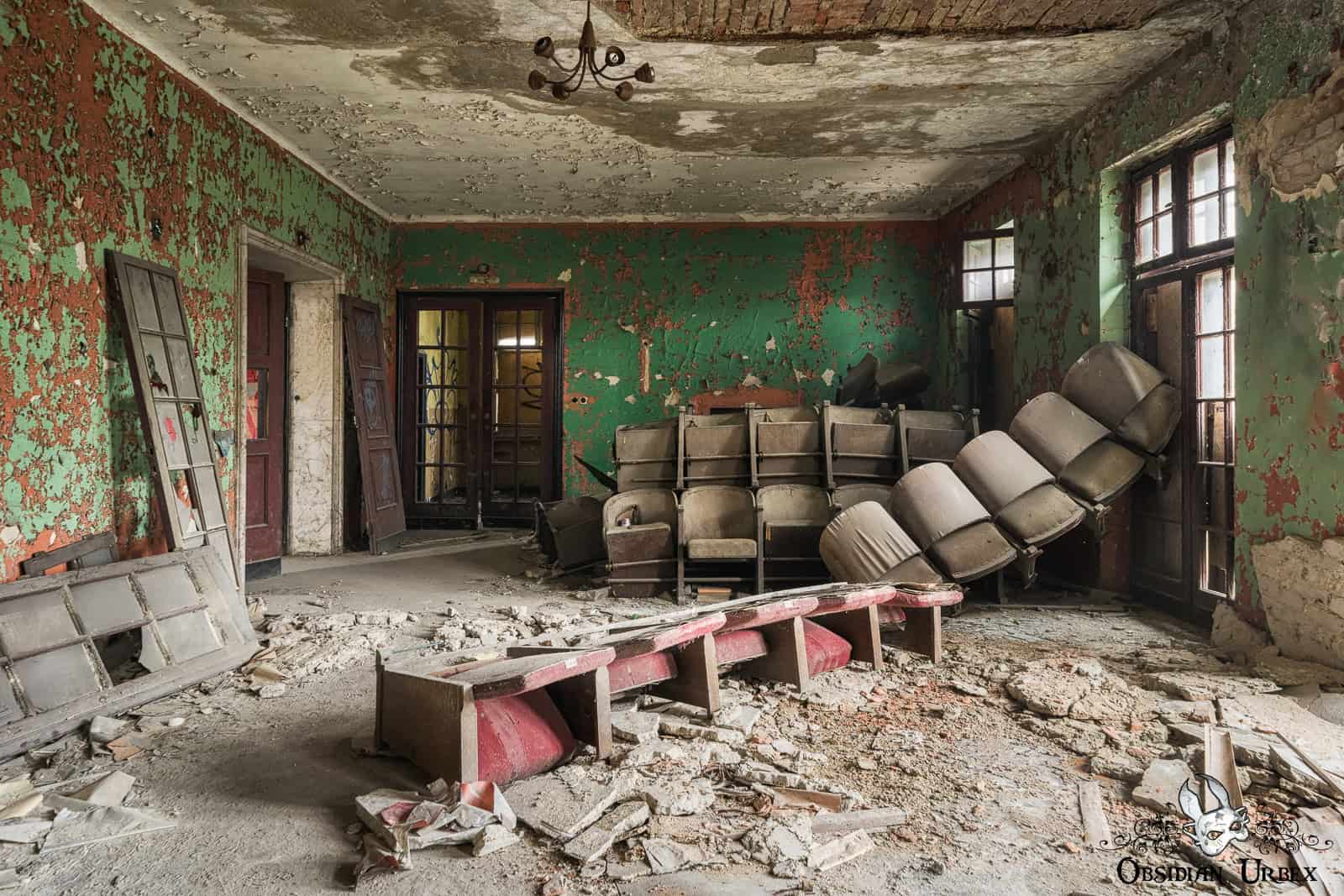 The Cinema Uciecha is an abandoned 1920s cinema ruin in southern Poland. Starting life as an entertainment venue for emergency services personnel, it later welcomed the wider community a decade or so later. Once a bustling hive of community entertainment, it now stands in ruins since it closed three decades ago.