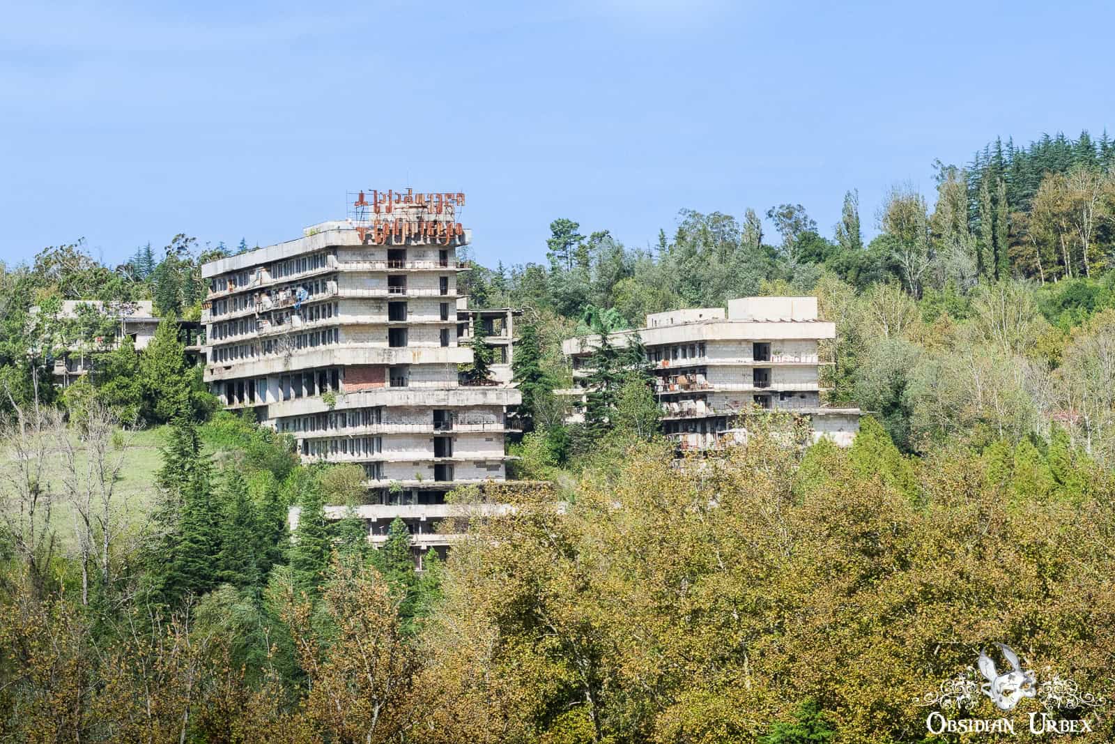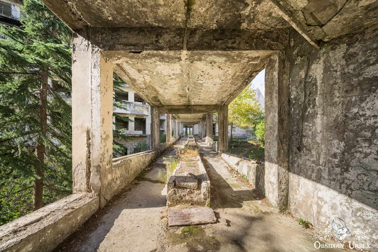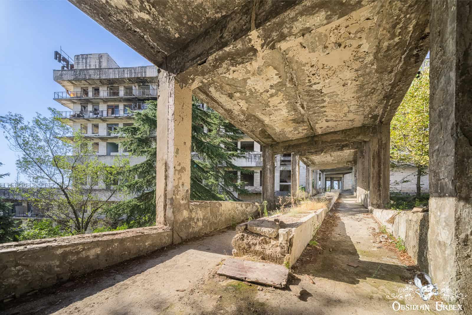The collapse of the USSR in 1991 brought the tourism bubble to a sudden end. With the health tourism industry gone, many hotels and spas closed soon after. Several buildings were later (and still are) used as housing for people displaced during the Abkhazia conflict. Alongside these, others fell into disuse and decay. Hotel Sakartvelo belongs firmly in the latter group.