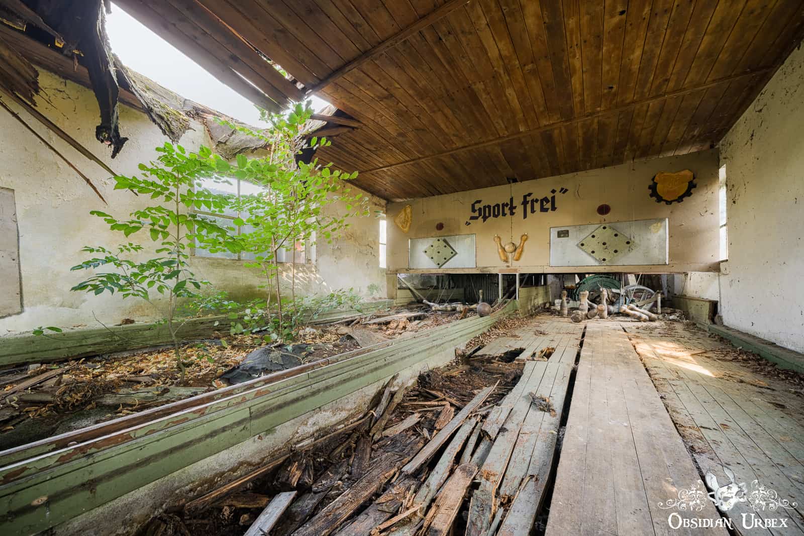 GDR Kegelbahn is an abandoned nine-pin bowling alley in the former East Germany. Nestled within the now-overgrown grounds of a culture house and tavern, the bowling alley once offered a place for community recreation for workers from the nearby factory.