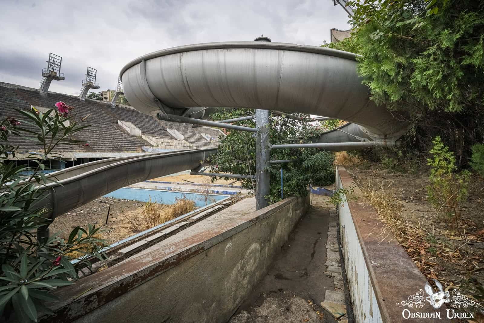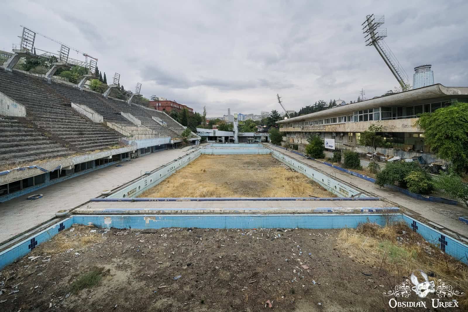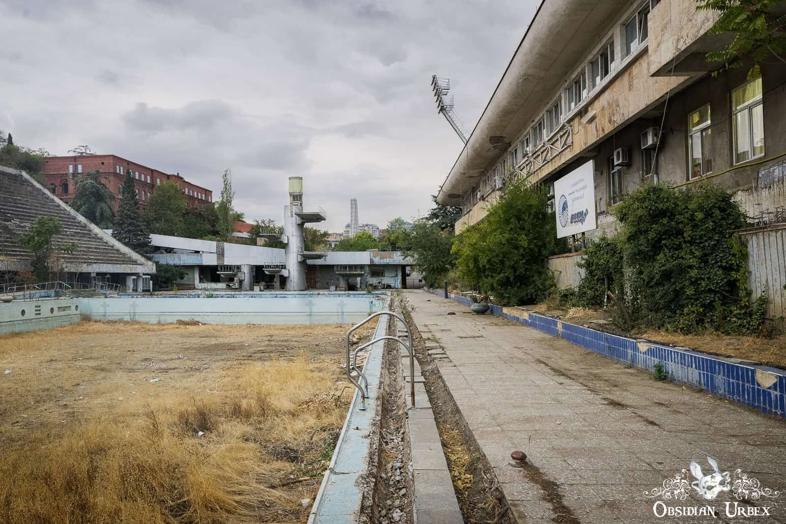 Presently, small businesses rent some of the areas at the complex’s front. The huge outdoor pool complex and immense seating stands stand disused, home only to dogs and the occasional exploring photographer.