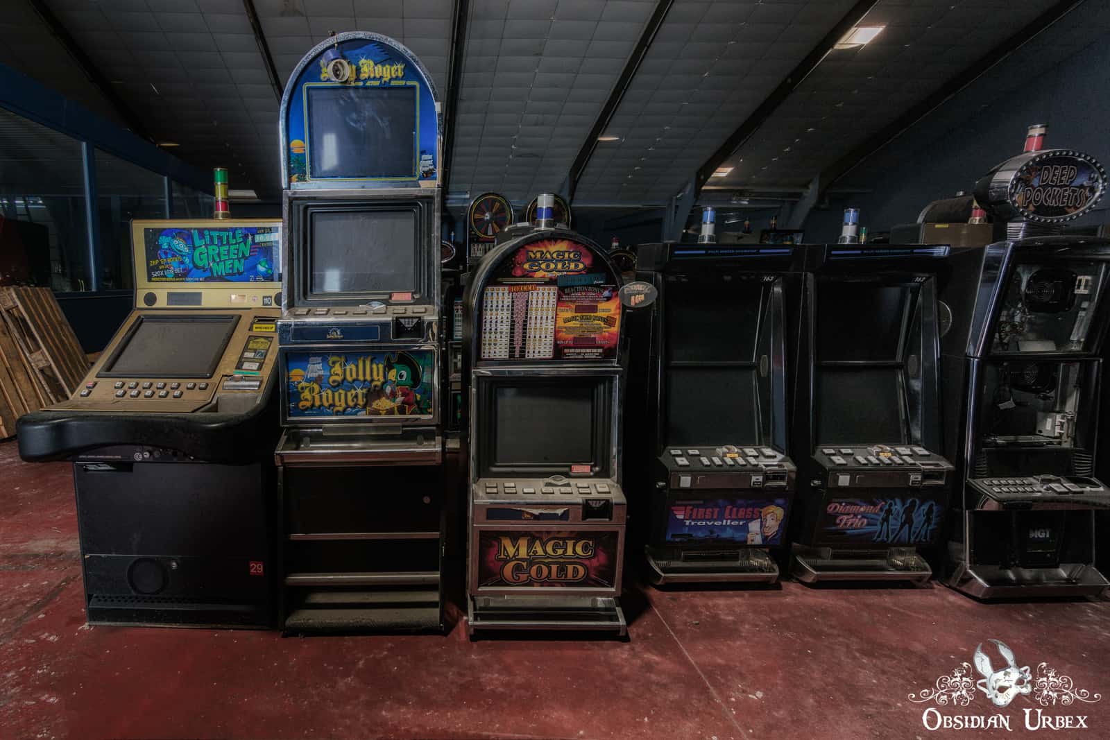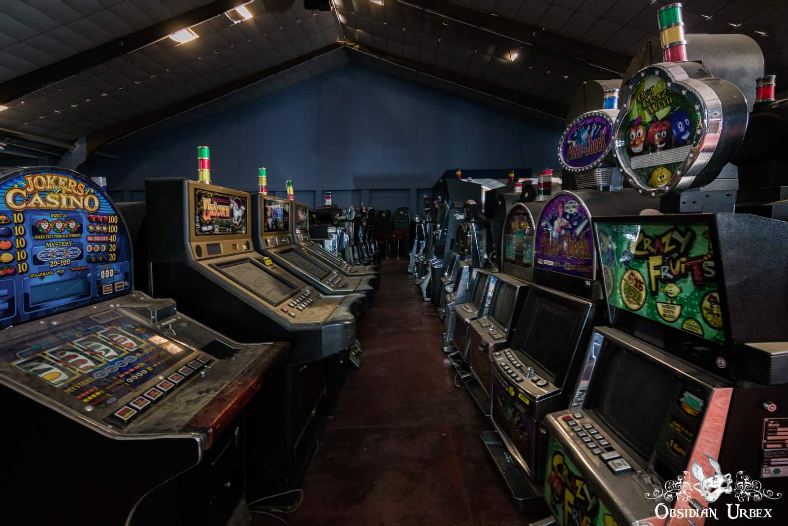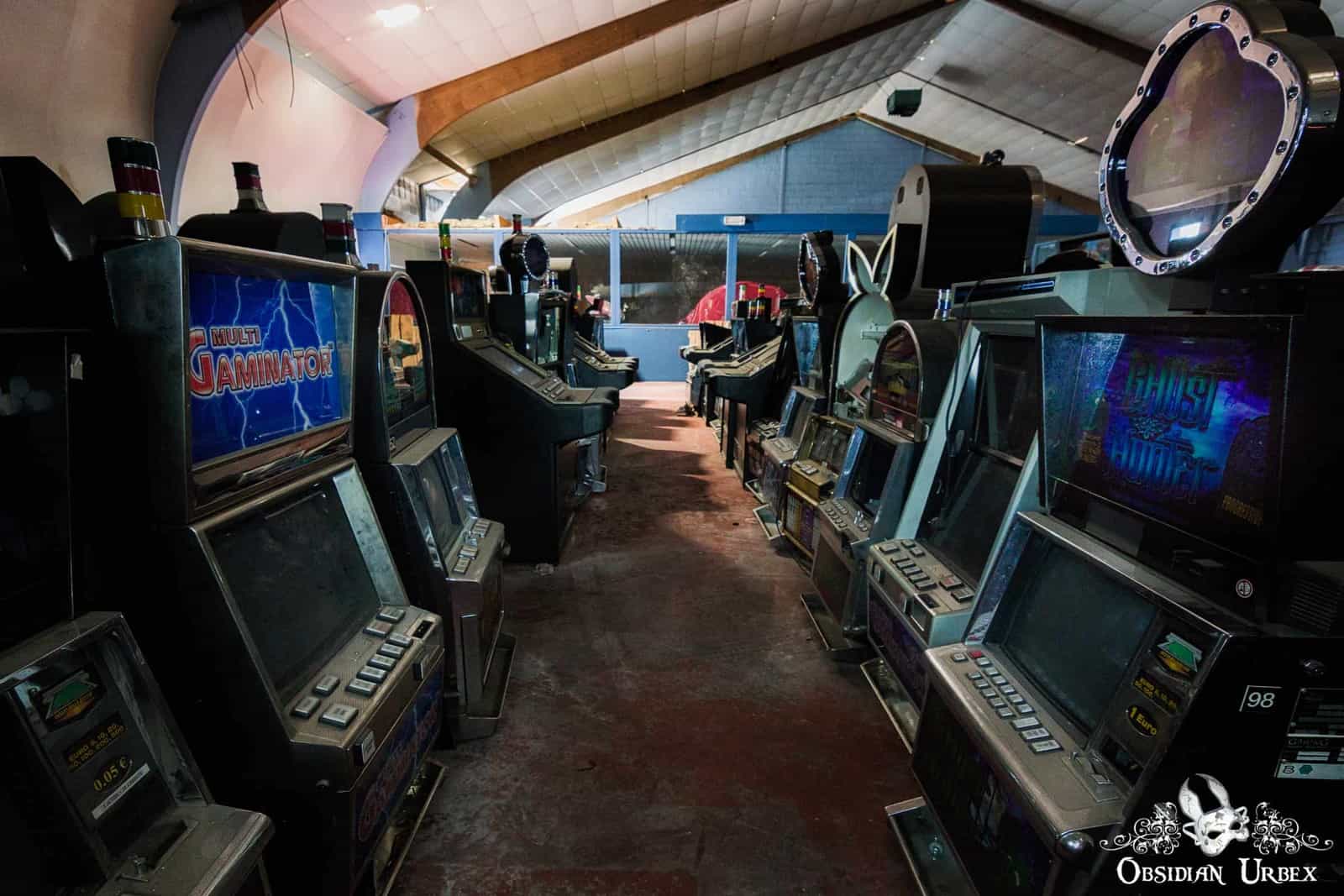 Lost Vegas Arcade is a large collection of video game arcade cabinets and gambling machines, which are stored in an old car dealership in Belgium. At one side of the warehouse, are a vast number of red slot machine chairs emblazoned with a smiling clown logo. It is not currently known why these machines are stored here, or by whom. It is likely that the machines and chairs represent the remnants of a failed casino/arcade, and are being stored here until they can be sold on or a new venue found to house the collection.