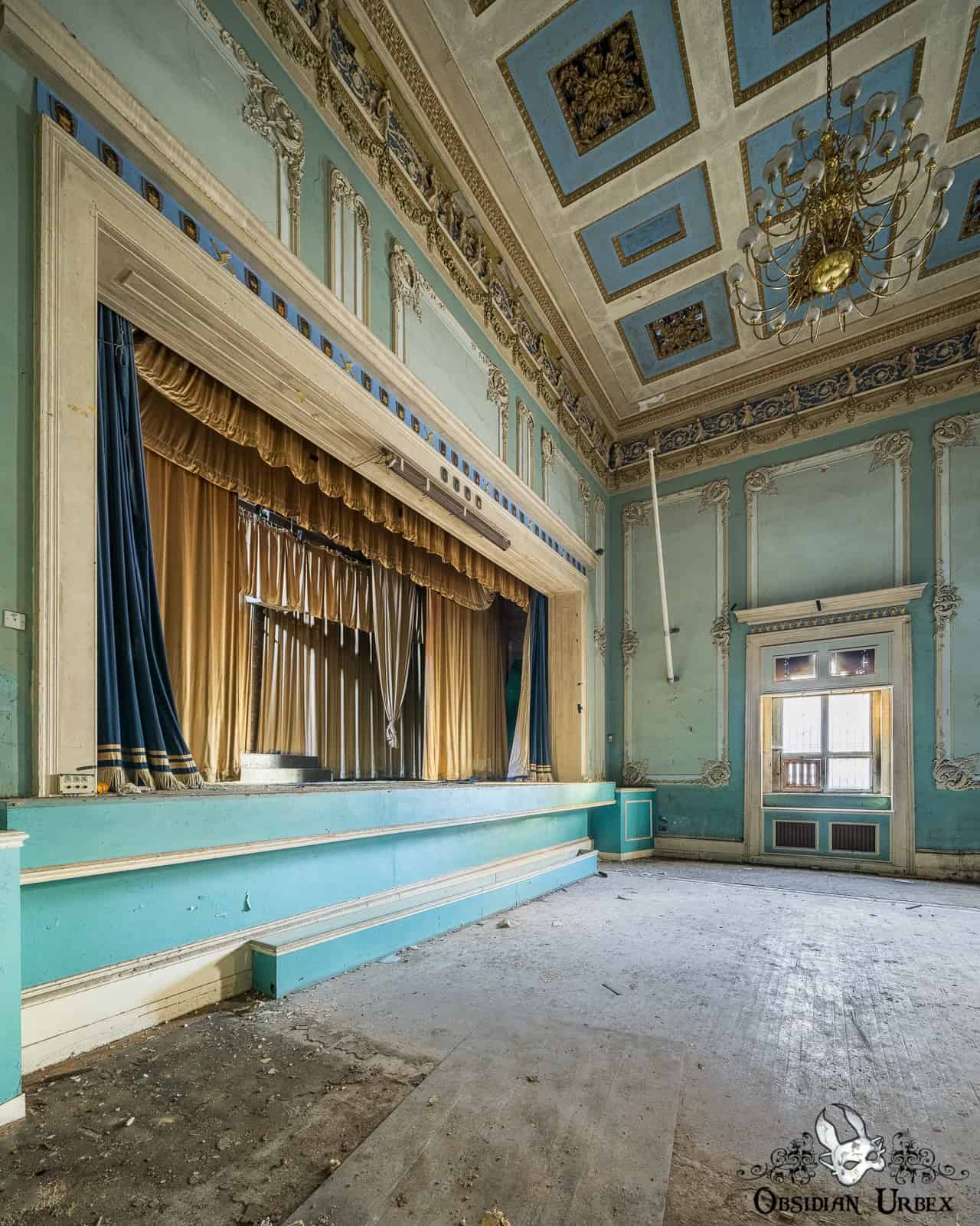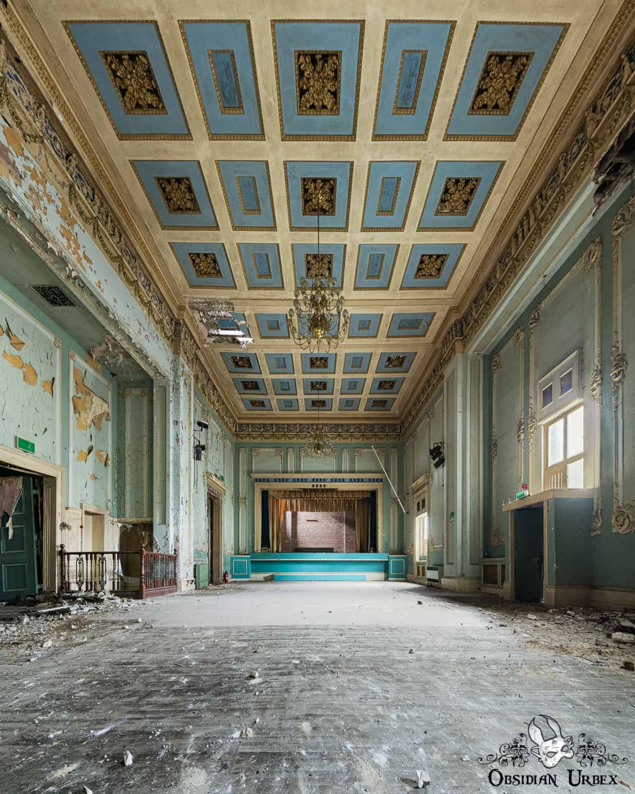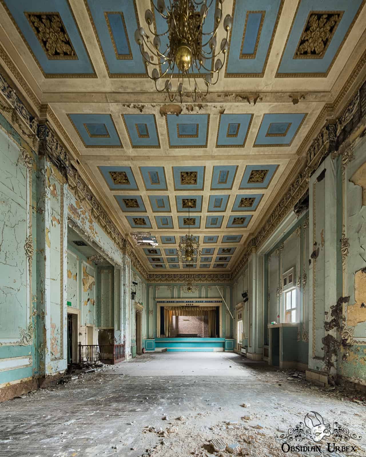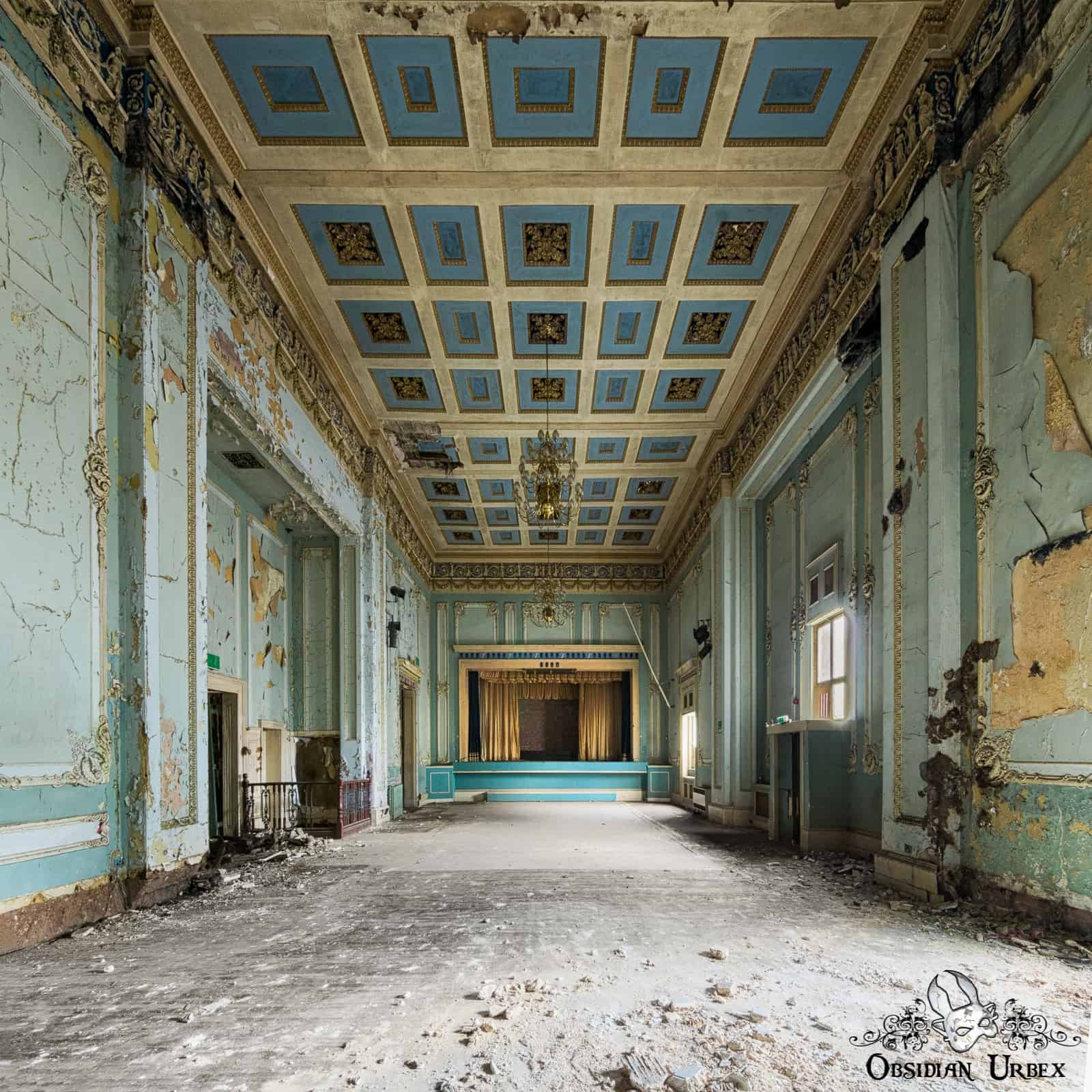 The Regency Ballroom is an abandoned early 19th Century ballroom and social venue in England. This location is a rare jewel among UK urbex, in terms of grandeur and scale. This building has been abandoned since the mid-1990s. After several spates of lead theft, the roof has leaked and sagged. Inside the wooden areas of the floor are rotting and partially collapsing. Plaster moulding falls from the ceilings as large segments as well as crumbling finer dust. Amazingly, over two decades of decay and water ingress have failed to dull the beauty of this place.