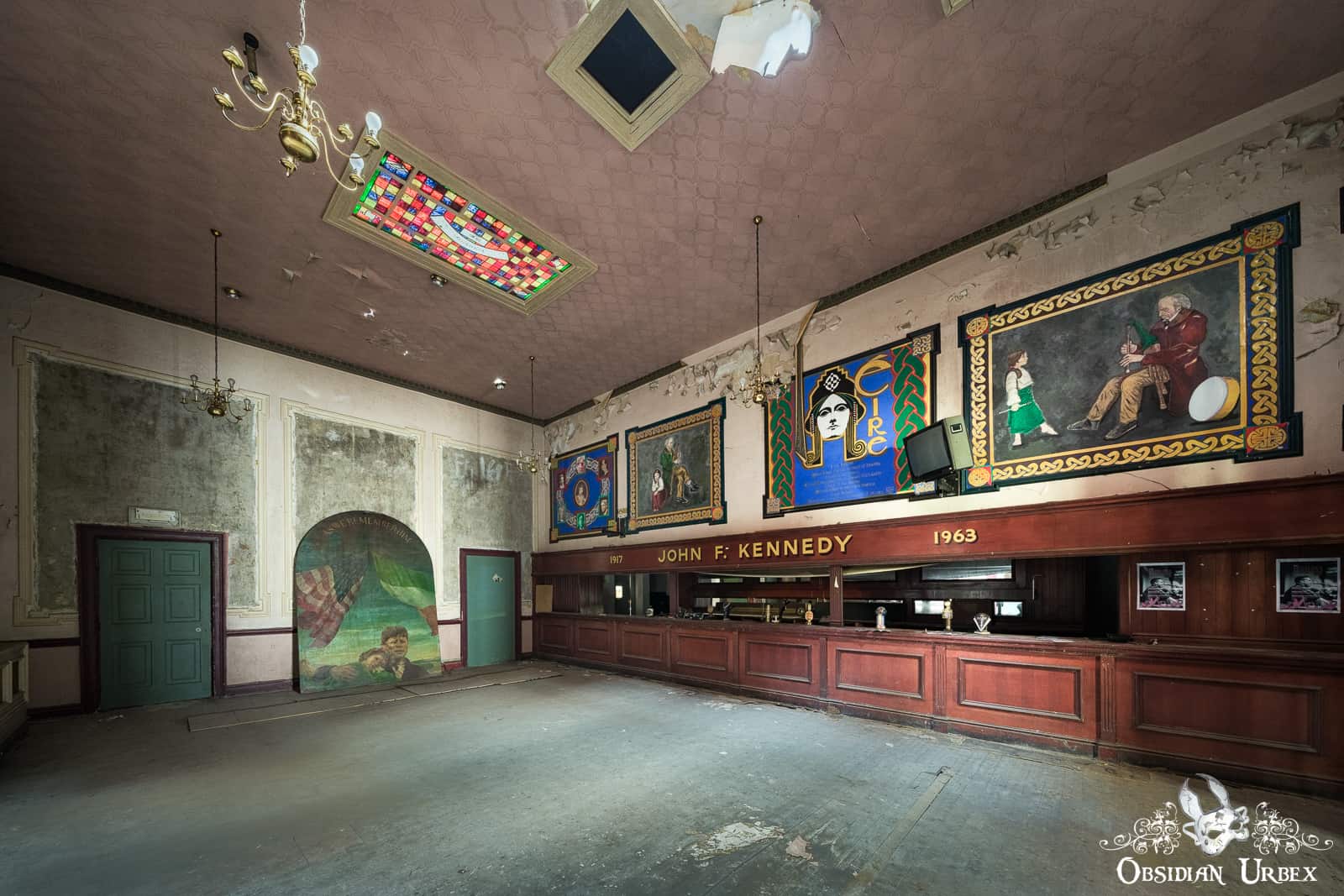 In the 1960s the Regency Ballroom opened up once again as a social venue. Wooden bars were installed in the drawing room and refreshment rooms, which lead off from the central hub room. The venue closed in the mid 1990s, and the building has lain abandoned ever since.