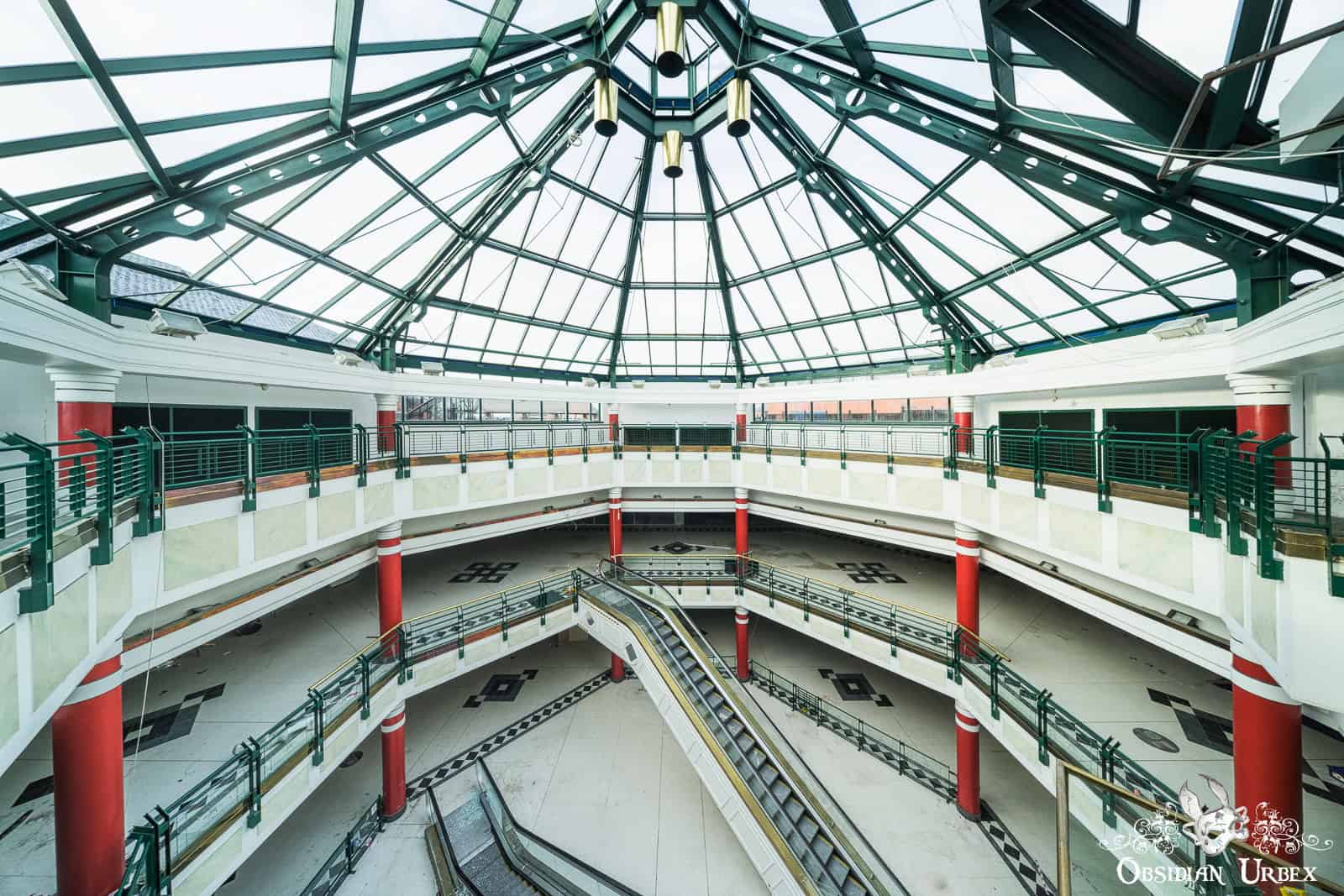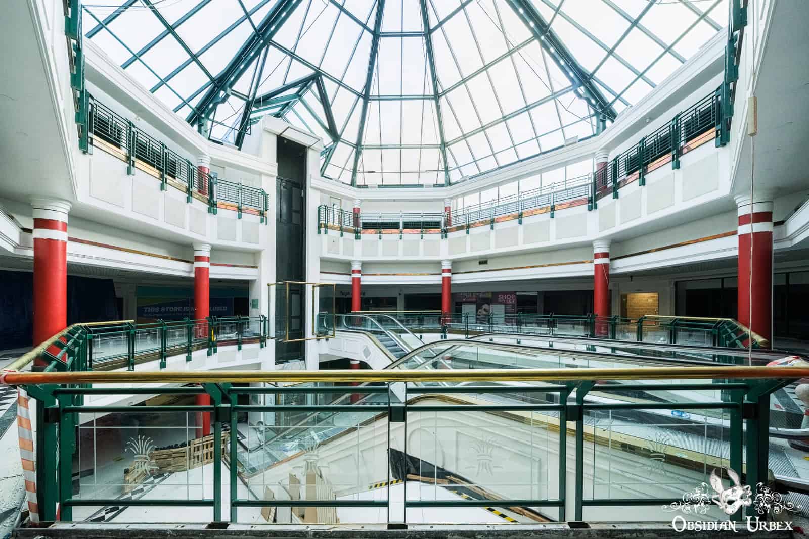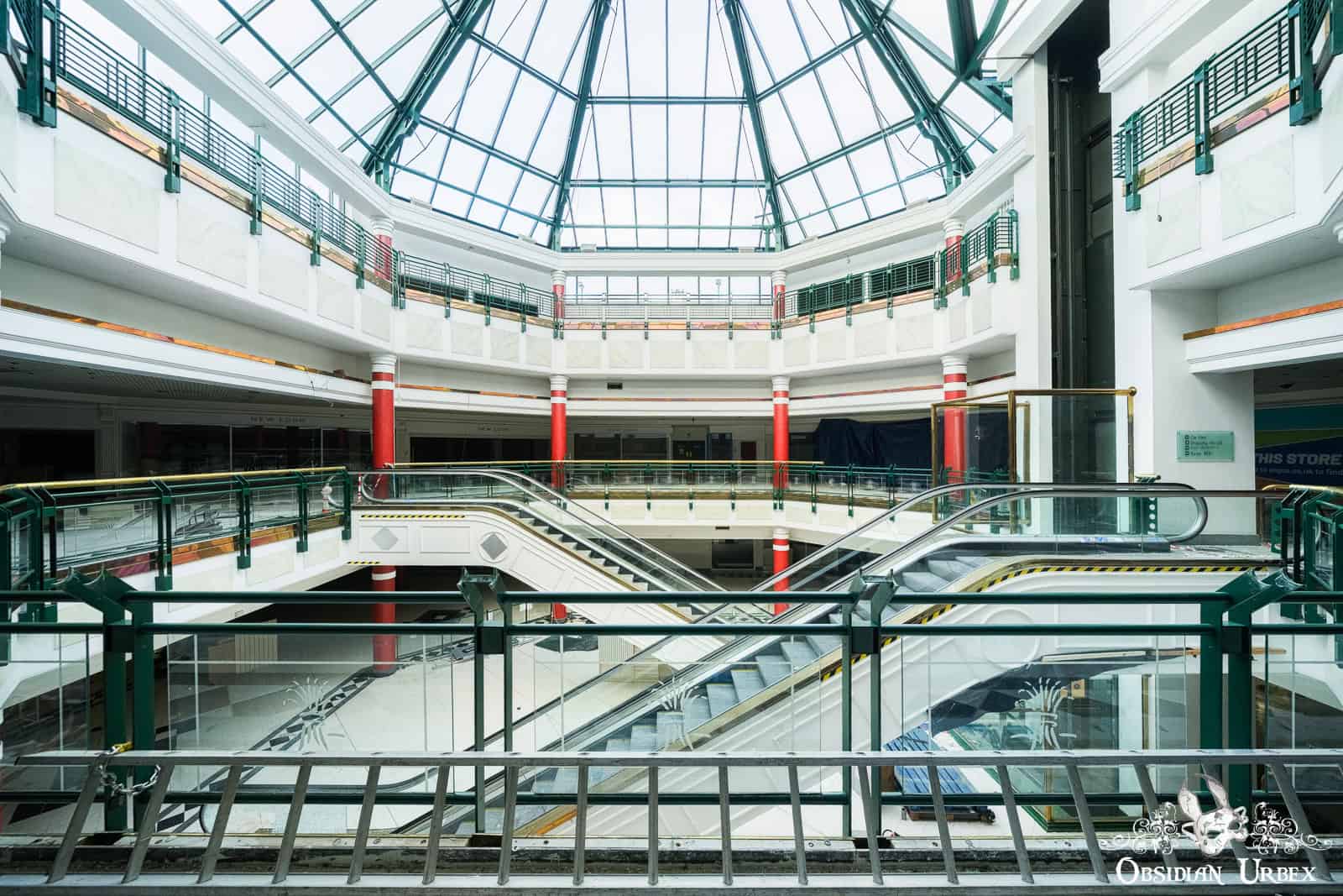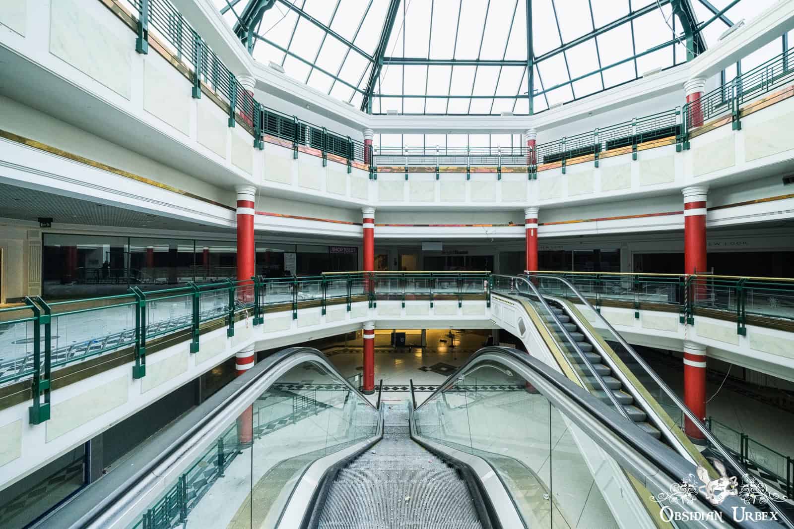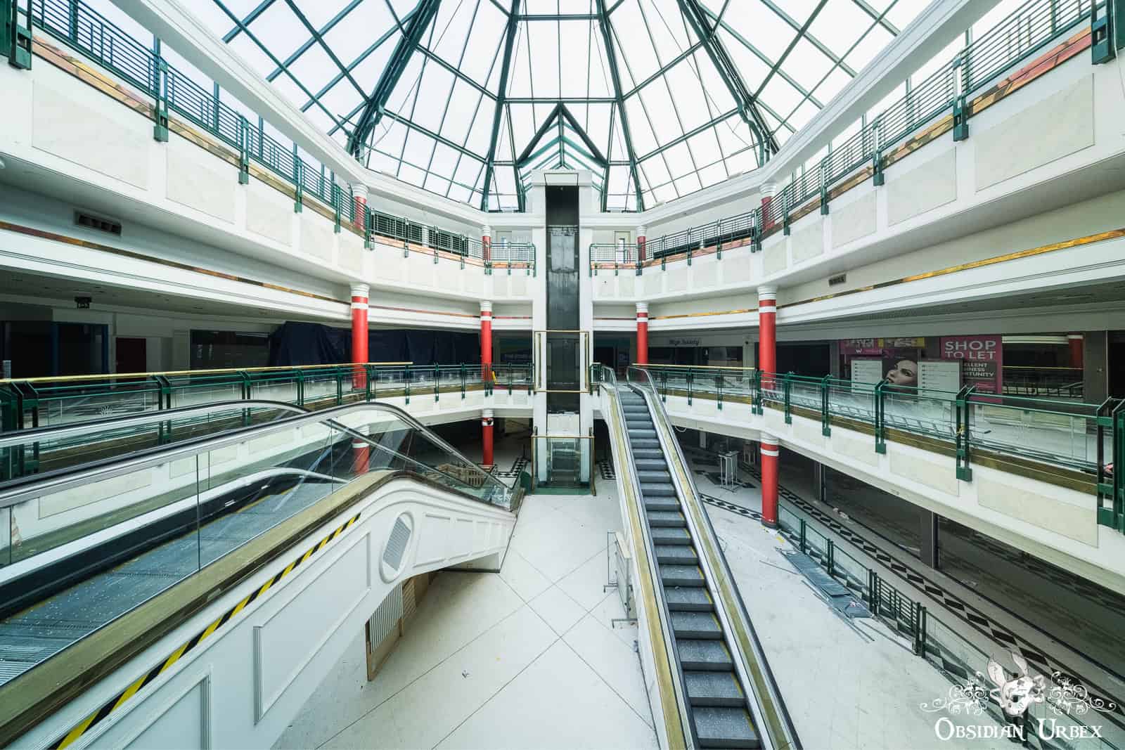 Shopping Mall W is a disused shopping mall in the north of England. Built in the early 1990s, it was once home to around 35 retail units, including national chains and local independents. At the heart of the complex lies a glass-roofed atrium, four storeys tall, that floods the central hub with daylight (British weather permitting, of course!). The shopping centre closed down permanently in 2020. It was dealt the final blow by the COVID-19 pandemic lockdowns after struggling with years of declining footfall.
