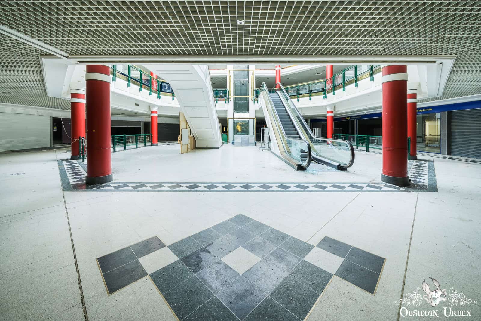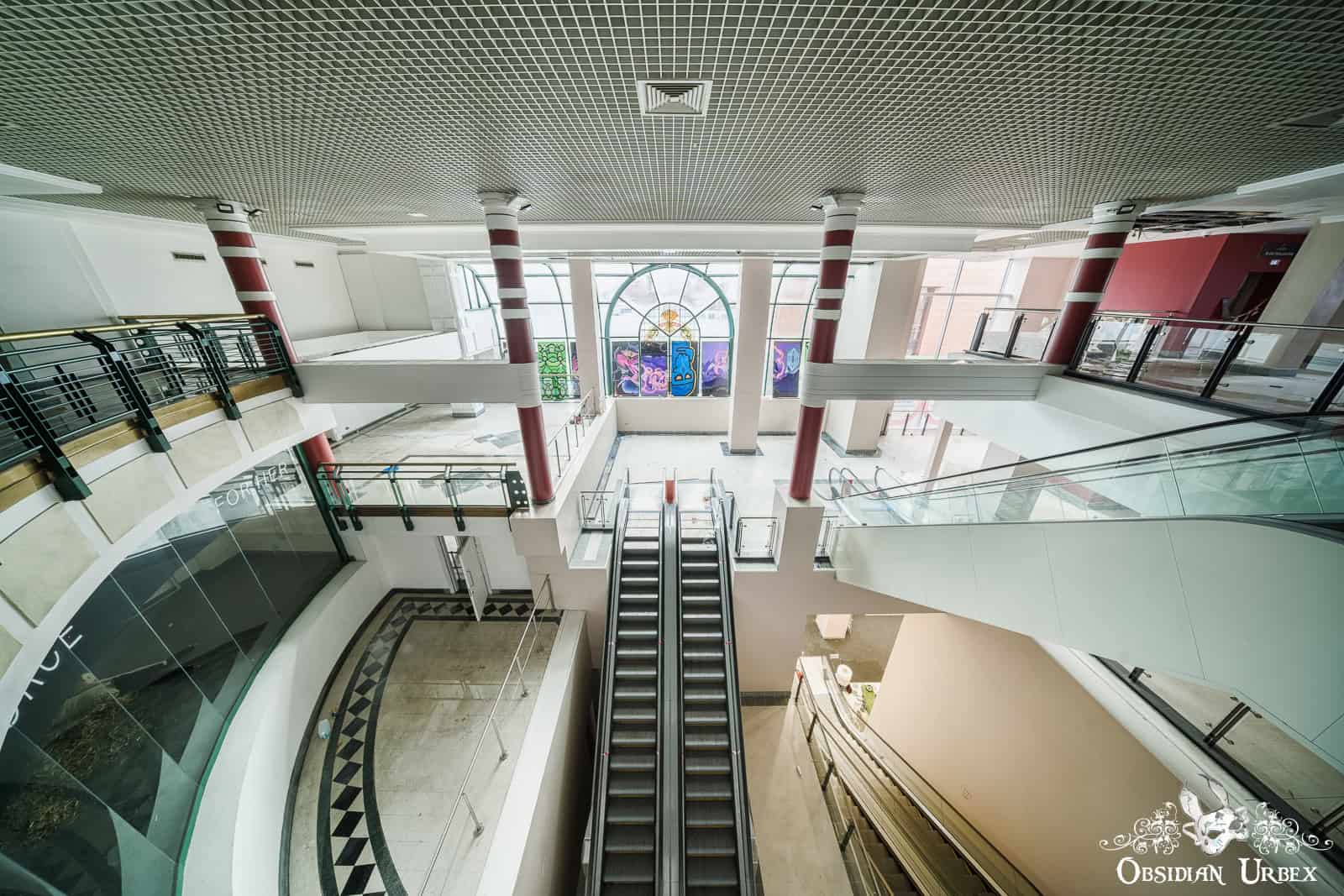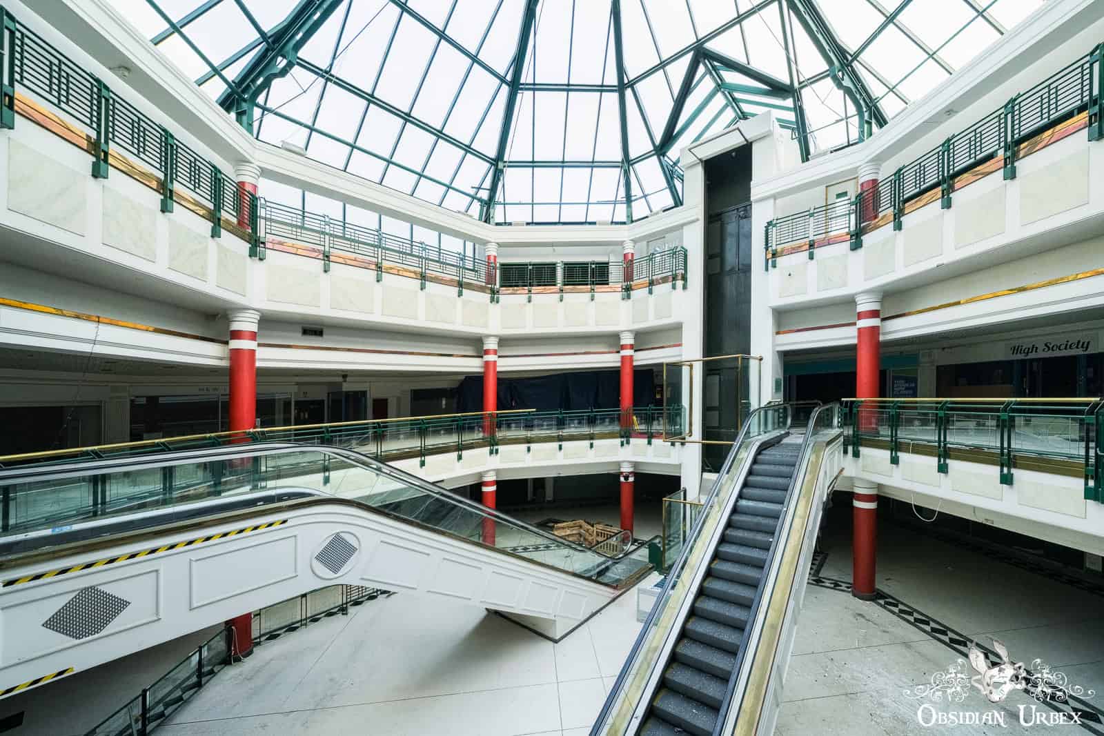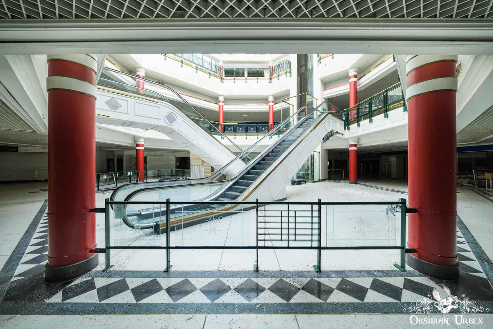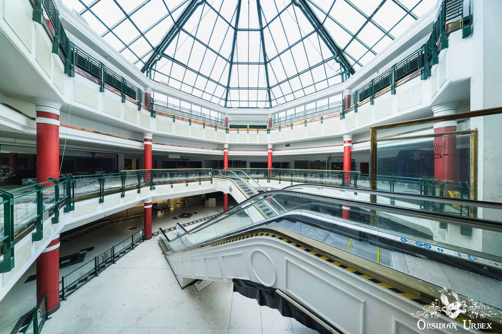 Shopping Mall W is a disused shopping mall in the north of England. Built in the early 1990s, it was once home to around 35 retail units, including national chains and local independents. At the heart of the complex lies a glass-roofed atrium, four storeys tall, that floods the central hub with daylight (British weather permitting, of course!). The shopping centre closed down permanently in 2020. It was dealt the final blow by the COVID-19 pandemic lockdowns after struggling with years of declining footfall.