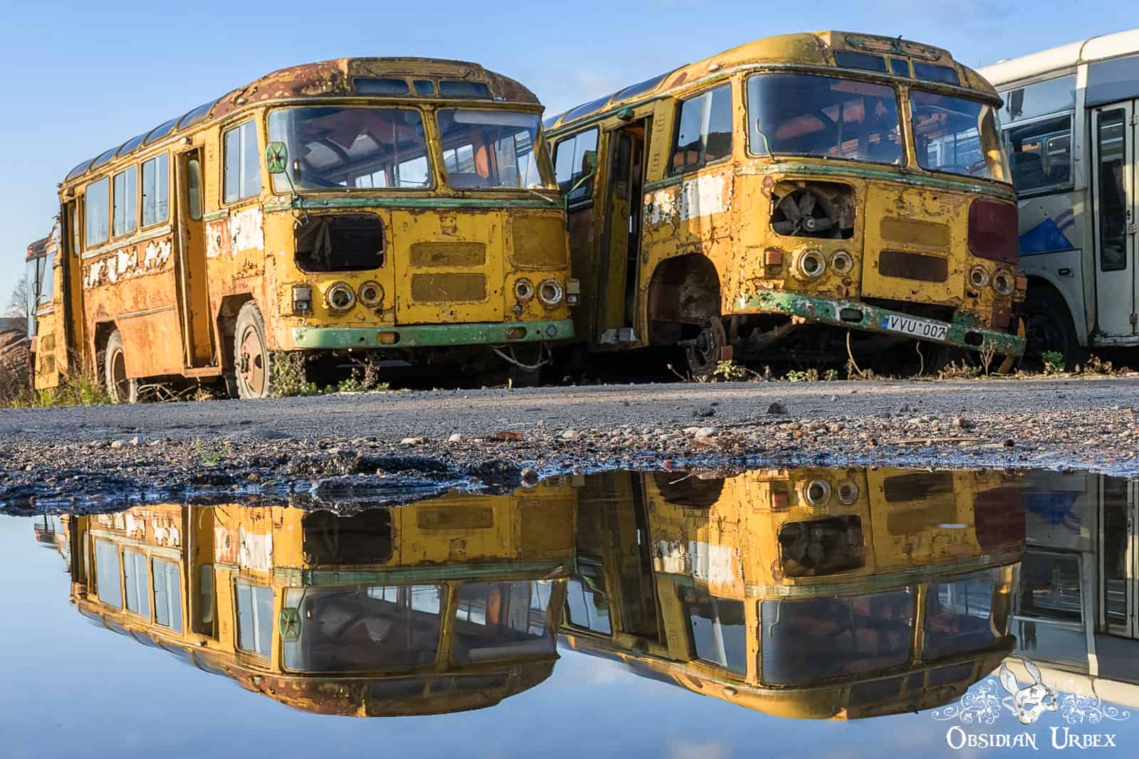 I visited this location during my 2019 Baltics Tour. This Soviet Bus Graveyard was without a doubt one of the most memorable parts of my vacation for me because the old relics here are so different in comparison to those found in England. I adored the textures and hues of the buses, as well as the opportunity to take photographs of their reflections in some well-positioned puddles!