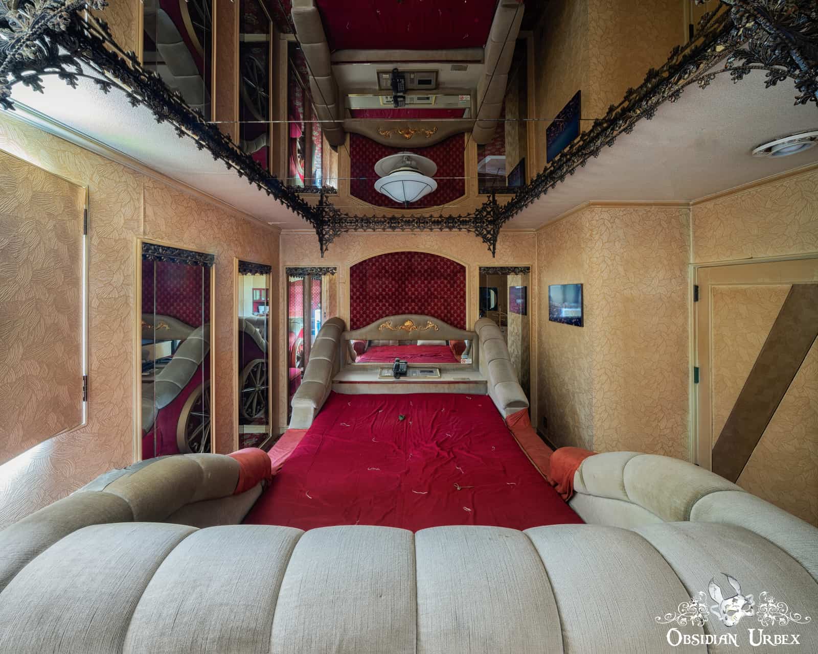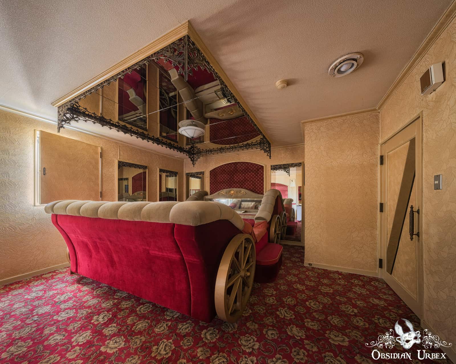 This love hotel catered for clients who valued discretion and anonymity. The nine ground floor rooms have private garages, which lead directly into each room. A larger covered parking lot provided hidden parking for the eleven rooms on the upper floors. Vacuum tubes provided a way to send money to the main desk without any personal interaction. A customer could order hot food to the room via telephone. The food would them be delivered directly to the room via a dumb waiter hatch.
