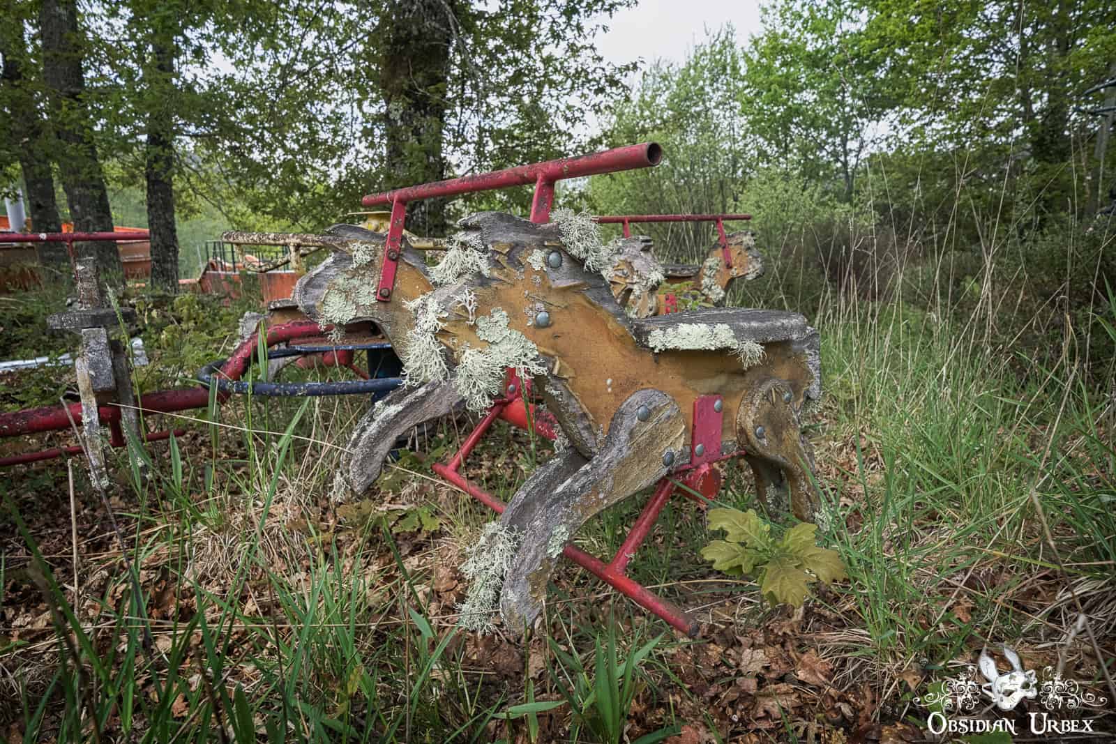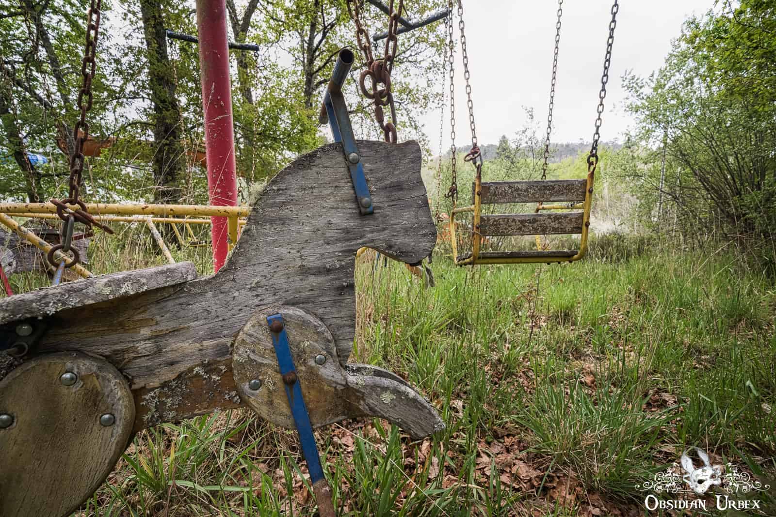 Other areas include some orange outdoor slides and smaller paddling pools. Off in the bushes was a children’s swing ride, which was looking much more dilapidated than the rest of the park. I particularly liked the little wooden horse-shaped seating!