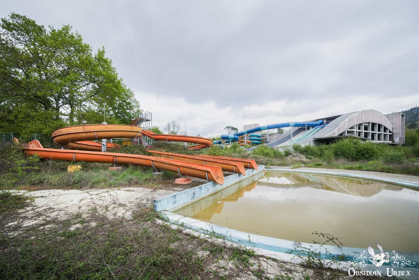 Hidden away in the forests of Portugal, far from the sun-kissed shores and tourist towns, lies an Unfinished Water Park. Water parks like these are common along the coastline. Usually they are bustling with families during the summer. This one, however, seems terribly out of place. It is far from the coast, well away from the popular vacation hotspots. In fact, this abandoned water park never opened! Its skeletal frame stands as an incomplete monument to an ambitious, failed project.