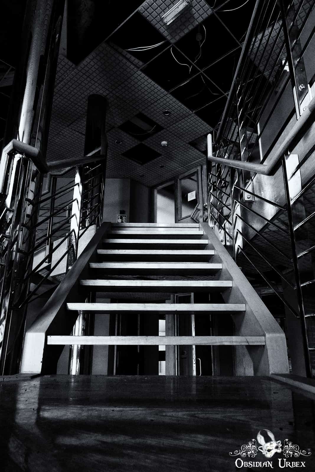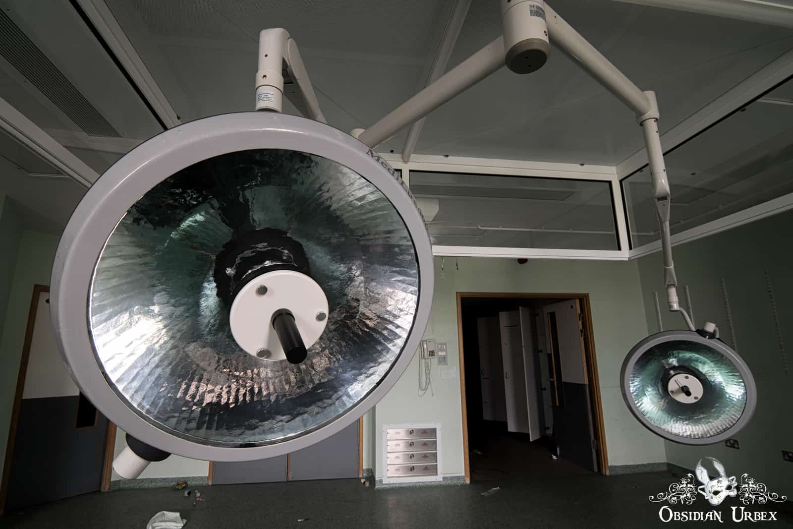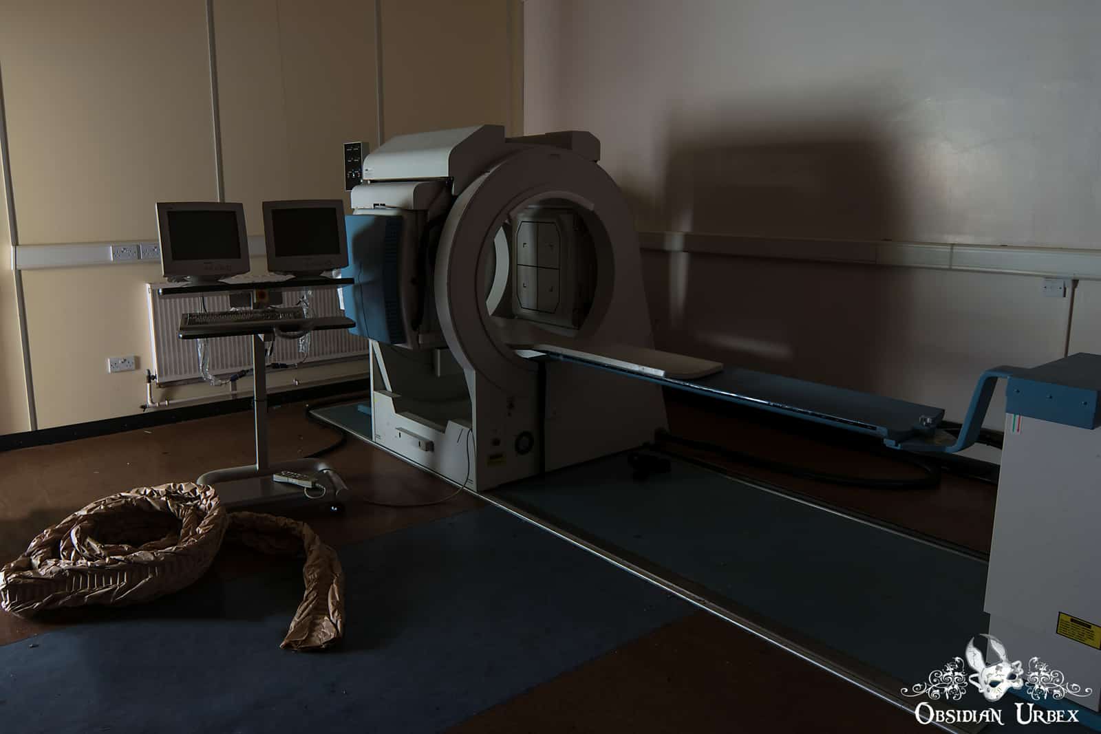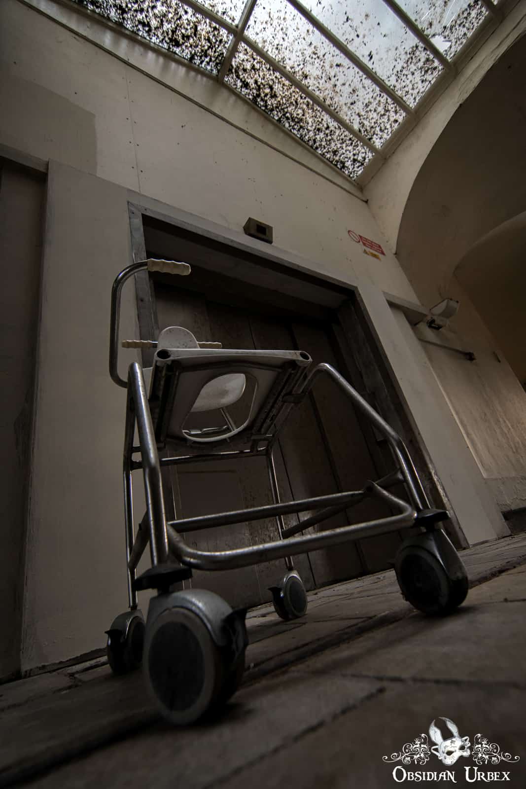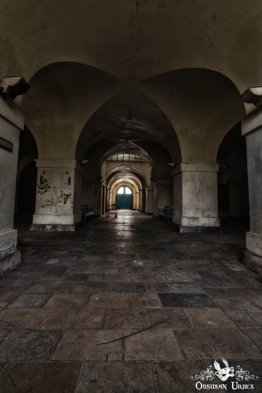 This hospital is massive, consisting of a large main quadrangle which is connected to the two side wings via long corridors called “crosslinks”. Navigating this monstrous collection of buildings is hampered by blocked corridors and locked doors. Several hours were spent wondering the complex, which had sadly had most of the machinery and fixtures removed by the time of our visit. We were still able to see; MRI scanners, laboratories with vials and centrifuges, hydrotherapy room and operating theatre. The best part of the hospital, is the famous elliptical spiral staircase. Having seen this in photographs, it was amazing to finally get to see it personally.