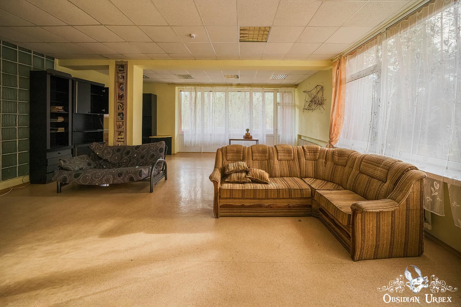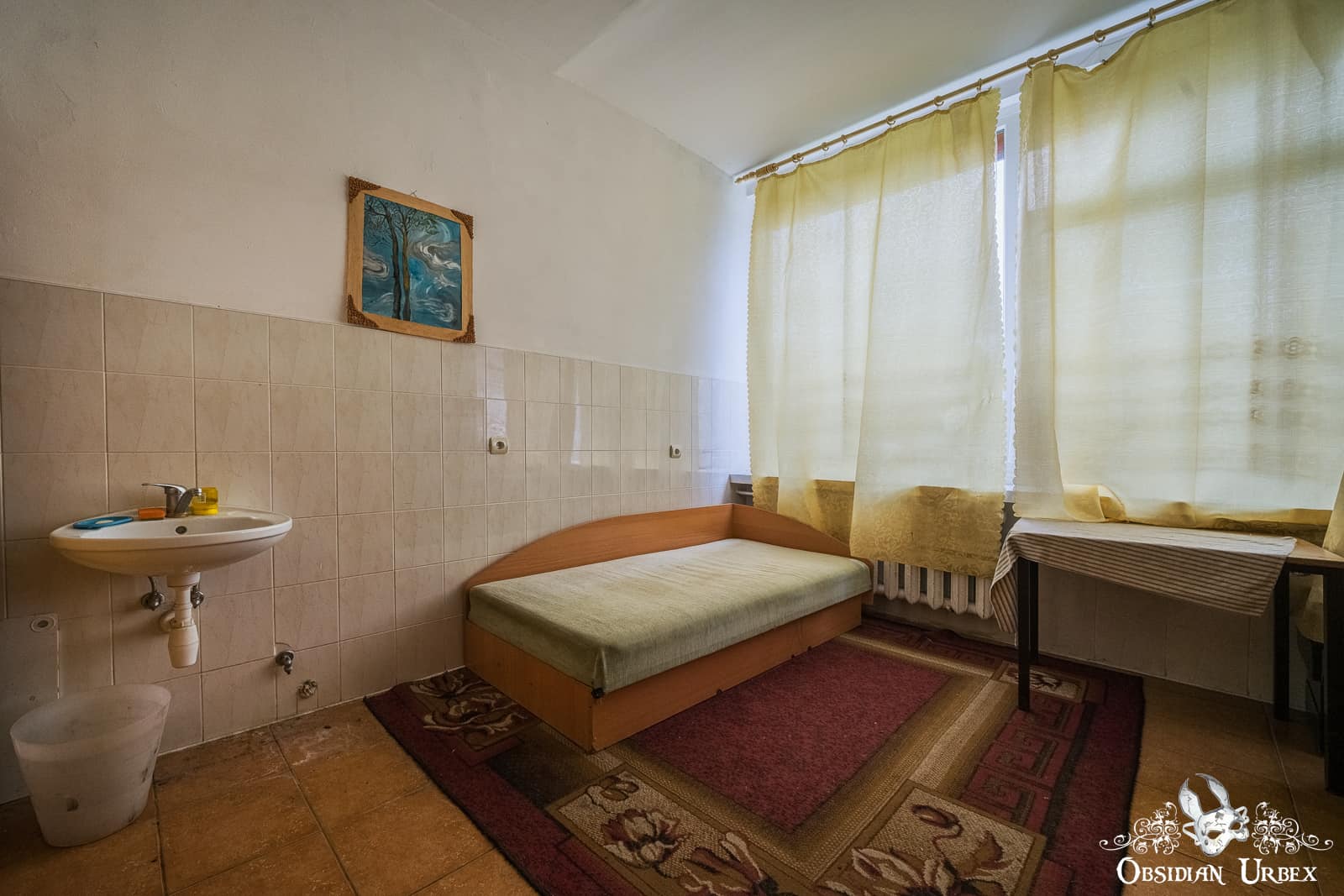 Tuberculosis treatment and recovery period is typically four to six months. The youngsters would stay at the Sanatorium In The Forest for the duration of this period. More specifically, in the dormitories of the residential wing. In addition, there was a school for the kids so that they wouldn’t have to fall too far behind in their studies while they were staying here. A huge sports hall with basketball hoops and a library are also located in the education block.