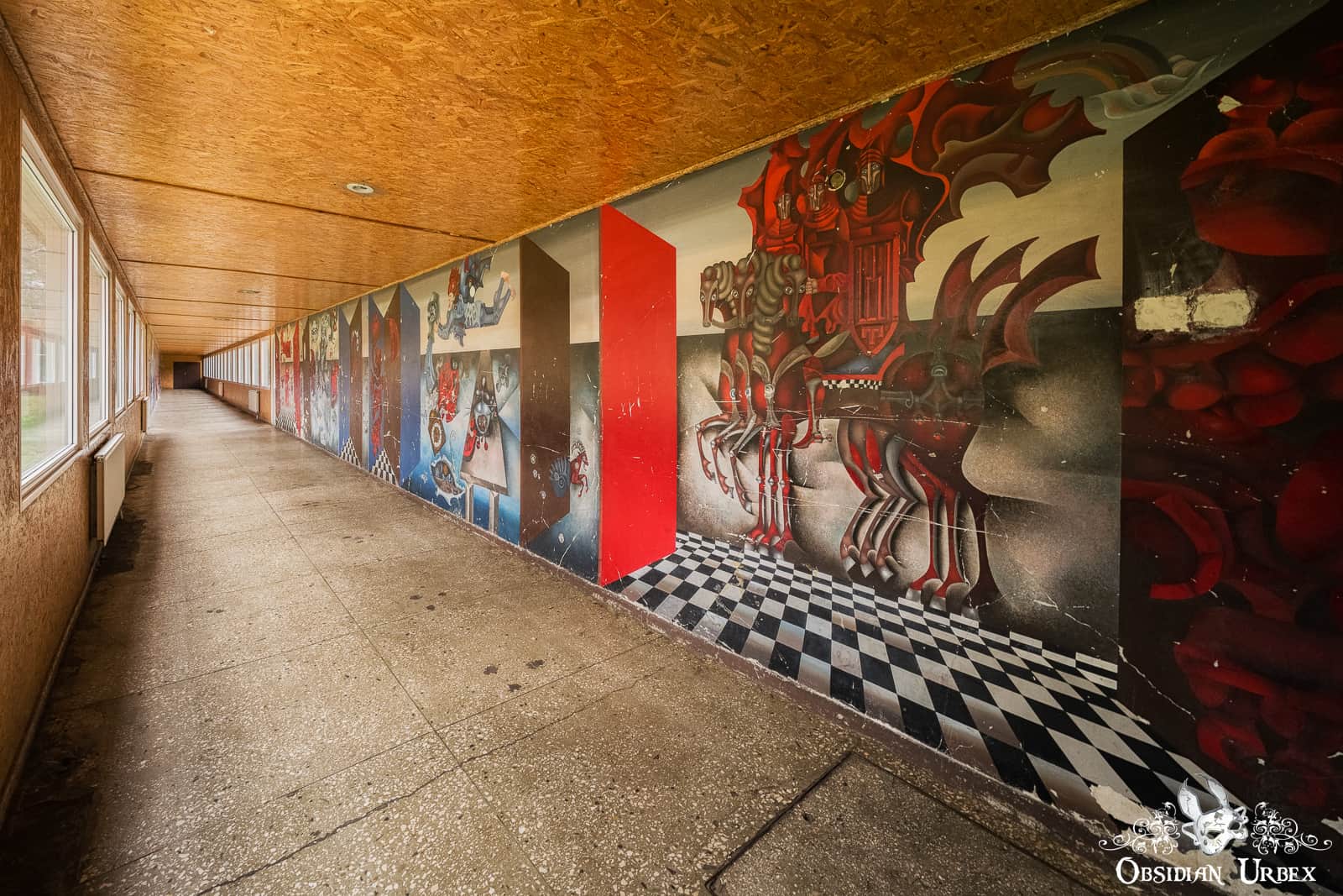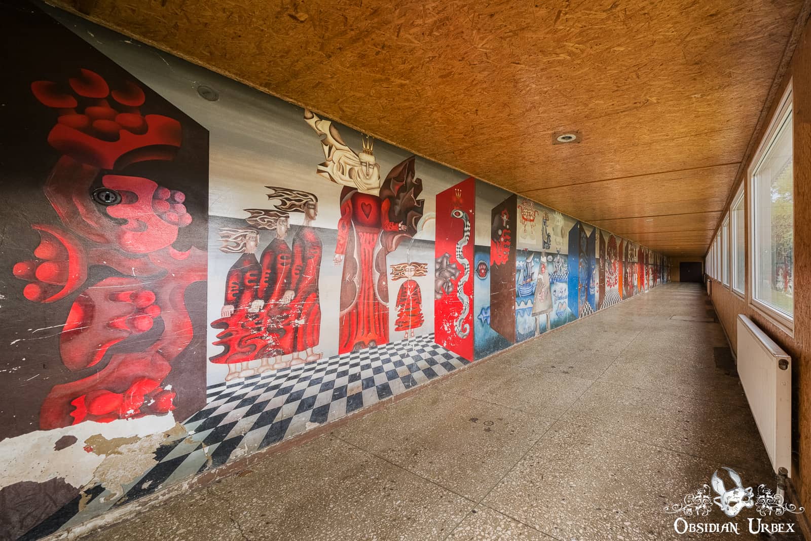 The various buildings are joined by long corridors, decorated with fascinating murals. In total there are over 100m of wall murals, which depict Lithuania folktales and dream-like scenes.