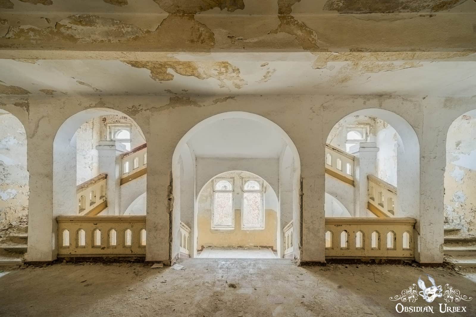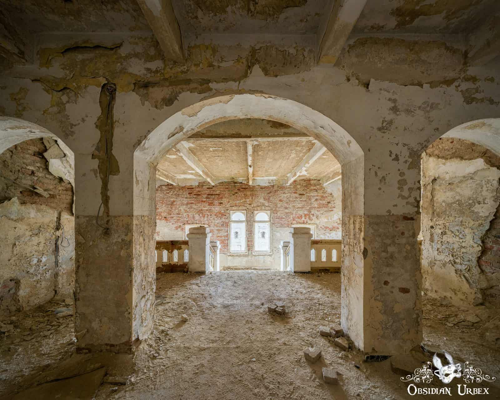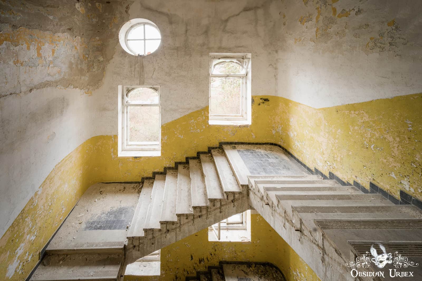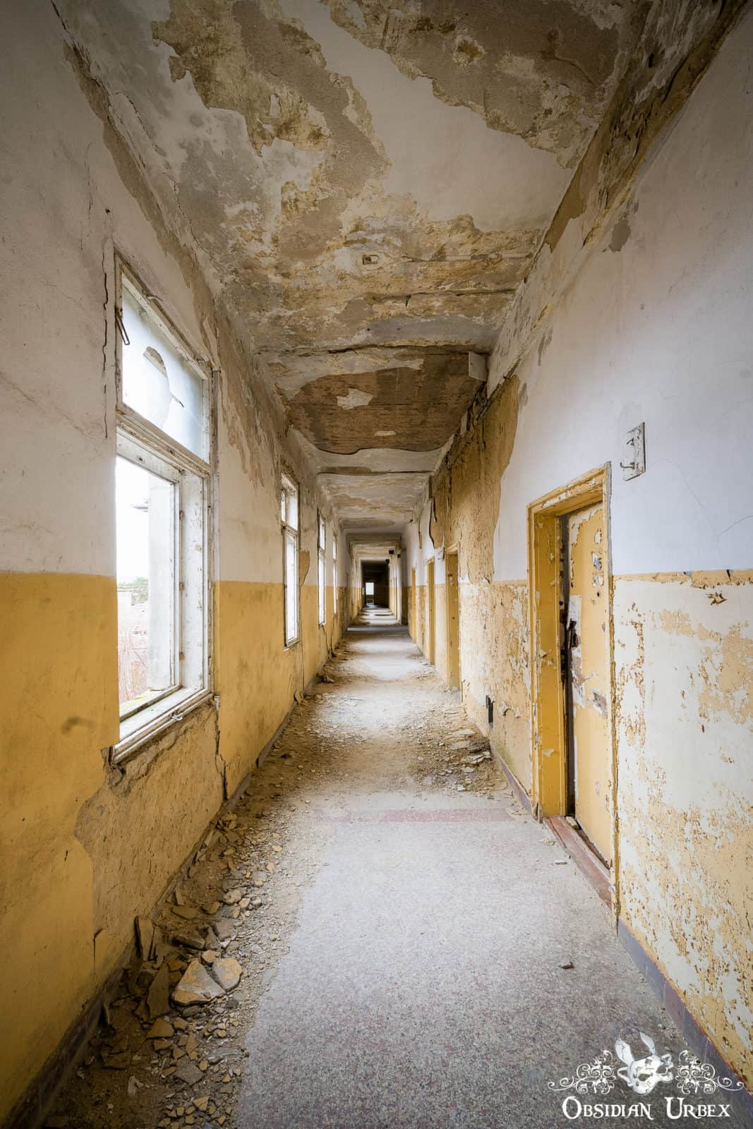 “Little Noisy” is an abandoned army barracks in eastern Hungary. The exterior is very striking. The architecture is reminiscent of a castle. The building features turrets and towers. The walls are dark grey, mimicking the grey moody skies on the day of our visit. The exterior is similar to a classic abandoned location in Belgium, Chateau Miranda, which was also known as Chateau Noisy.