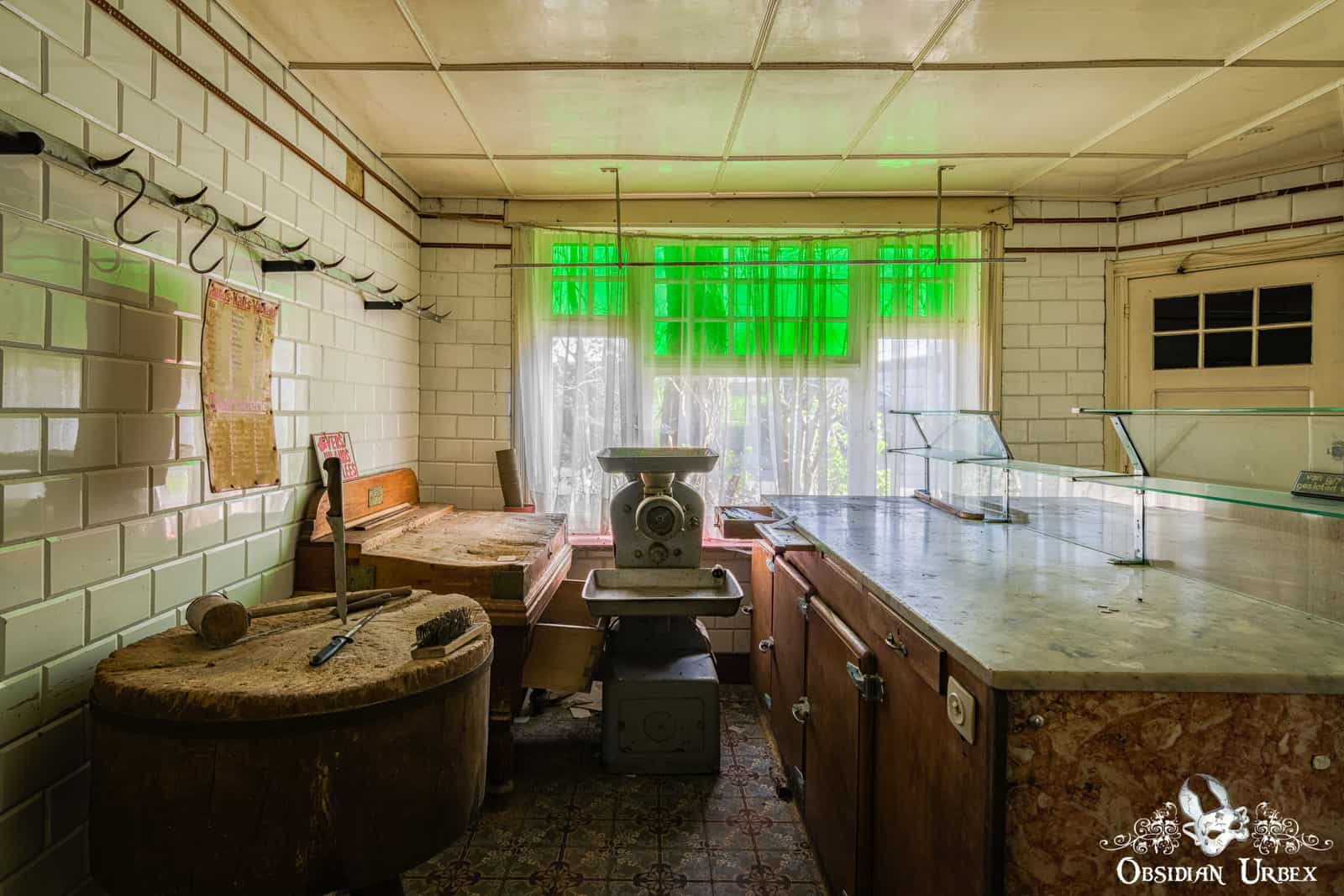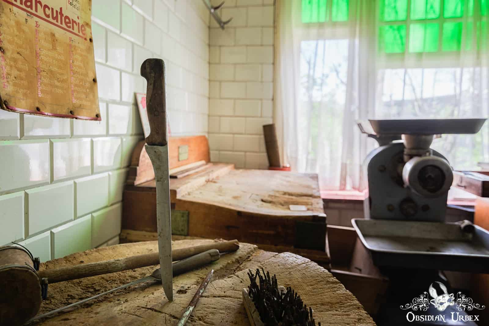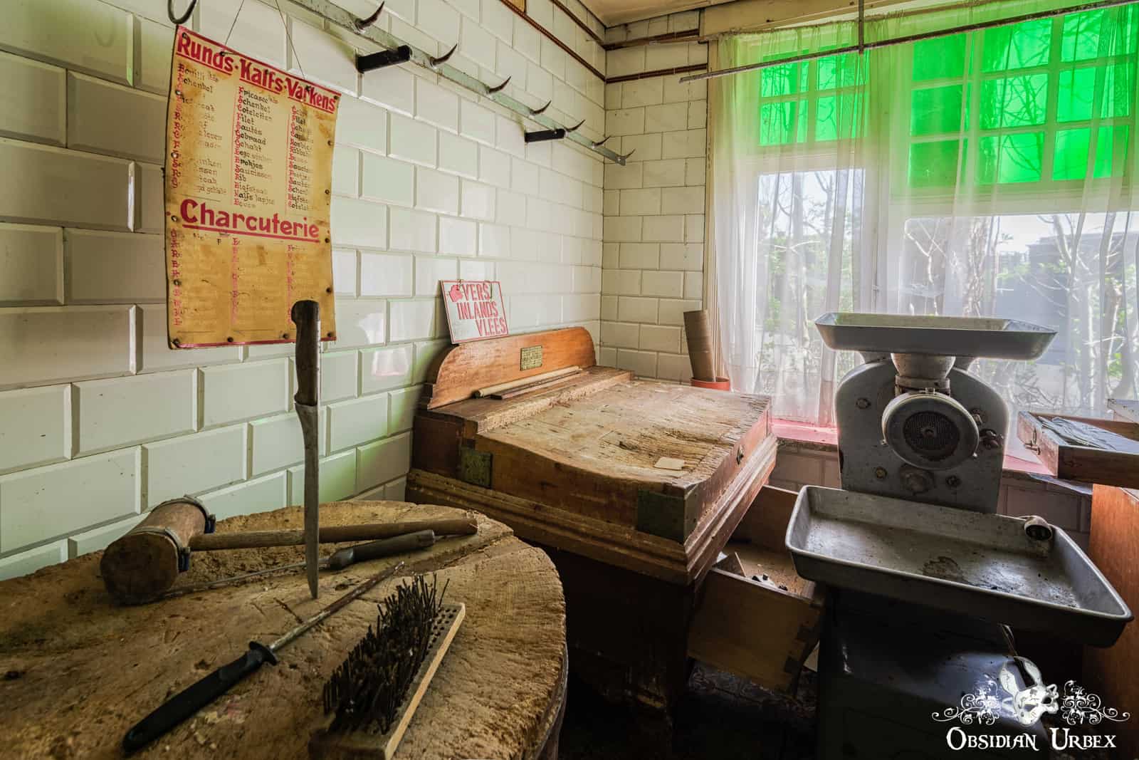 Allo, la Boucherie Sanzot? is an abandoned old-fashioned butchers shop and house in Belgium. This location appears to have been named by a fan of the Tin Tin comics, with a distinct reference to a butcher/butcher’s shop which features in the series. The location is also known as “La Boucherie Gepetto”, which appears to perhaps be an older name.
