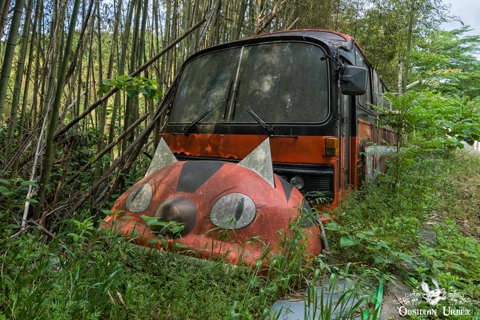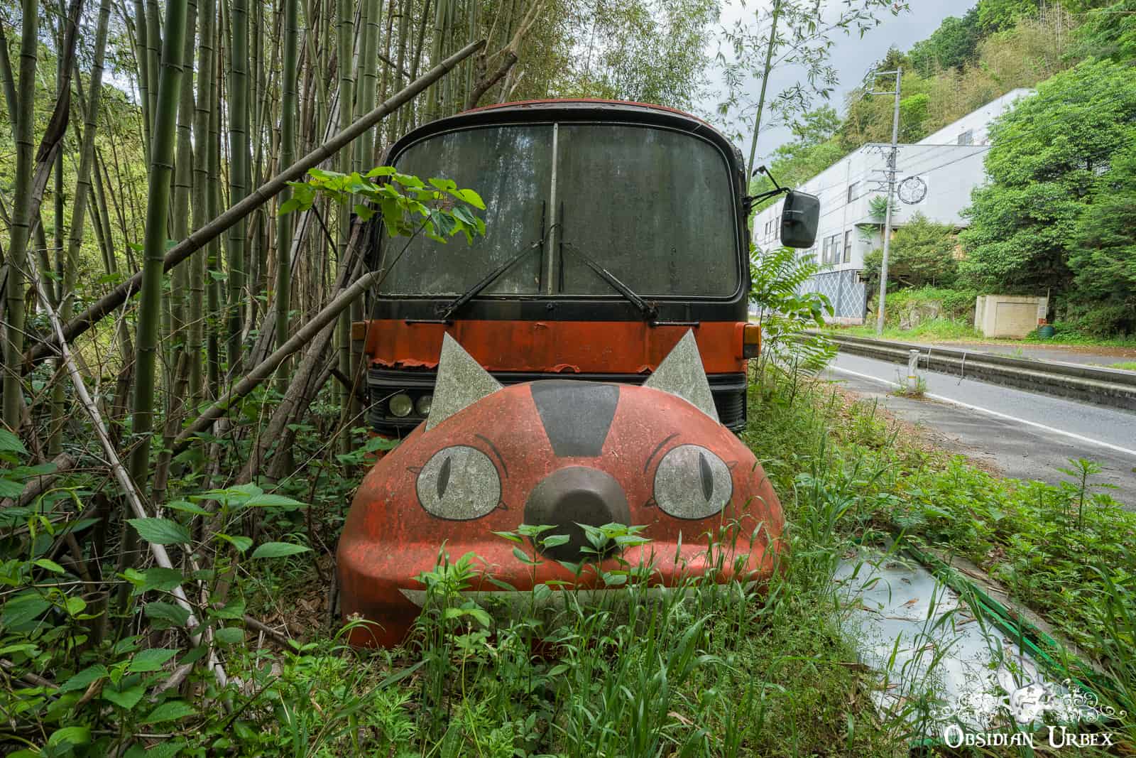 Outside of Toyota city, there was once an interesting roadside relic. Abandoned at the roadside there was a bus, but this bus was not a usual bus. Firstly this bus was painted bright orange. Secondly, this bus had a face. The face had wide eyes, a maniacal grin and pointy ears.