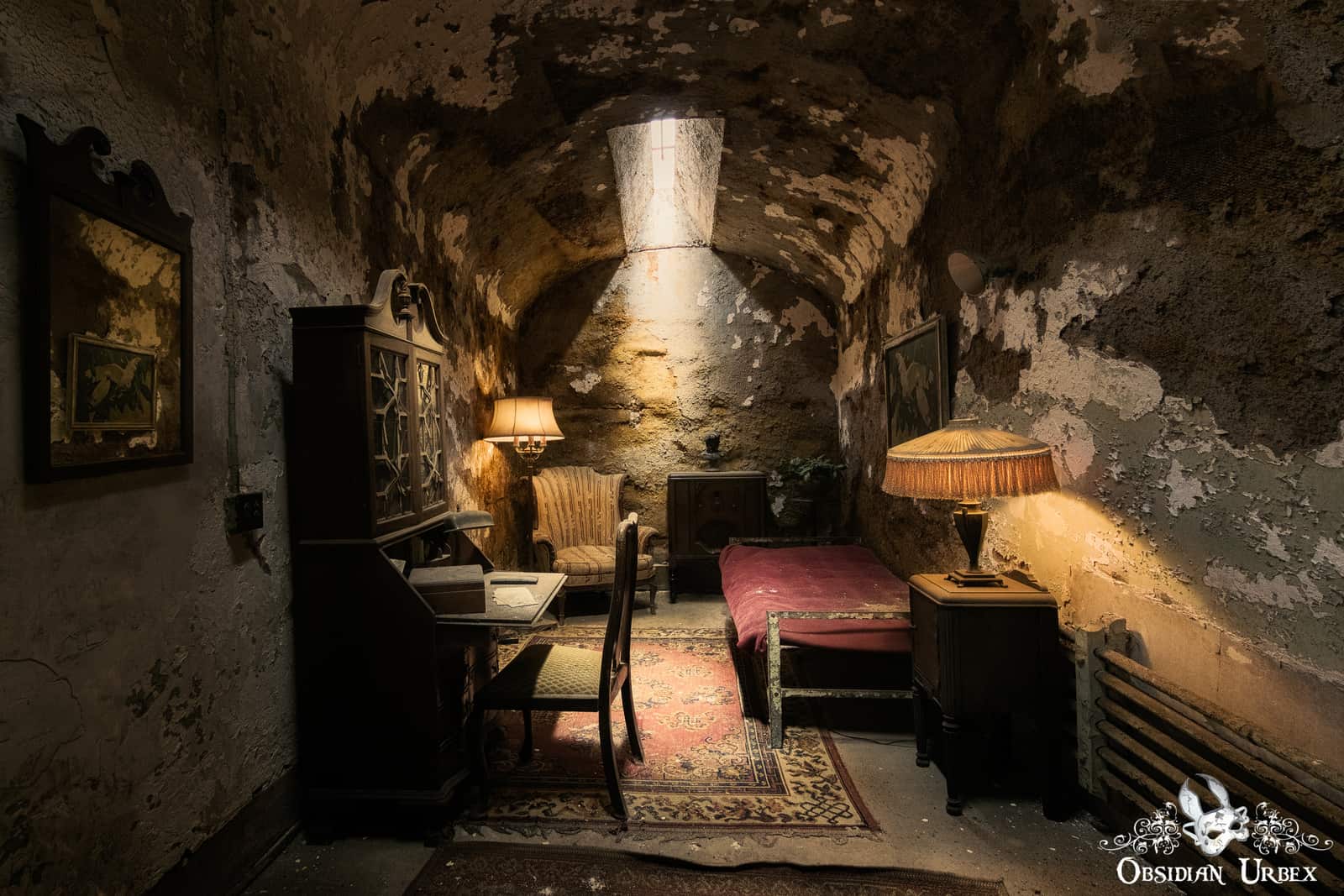 In 1929, the infamous gangster Alphonse “Scarface” Capone was arrested. He was outside a movie theatre, and busted for carrying a concealed and unlicensed revolver. The judge handed him a one year sentence at East State Penitentiary, serving eight months in a small cell. A re-creation of his cell shows what it would have looked like in the 1920’s. Local newspapers reported Capone enjoyed many luxuries during his incarcerations here. His cell had plush decorations, including oil paintings and large oriental rugs on the floor. He also had a cabinet radio, and enjoyed listening to waltzes in his cell for hours.