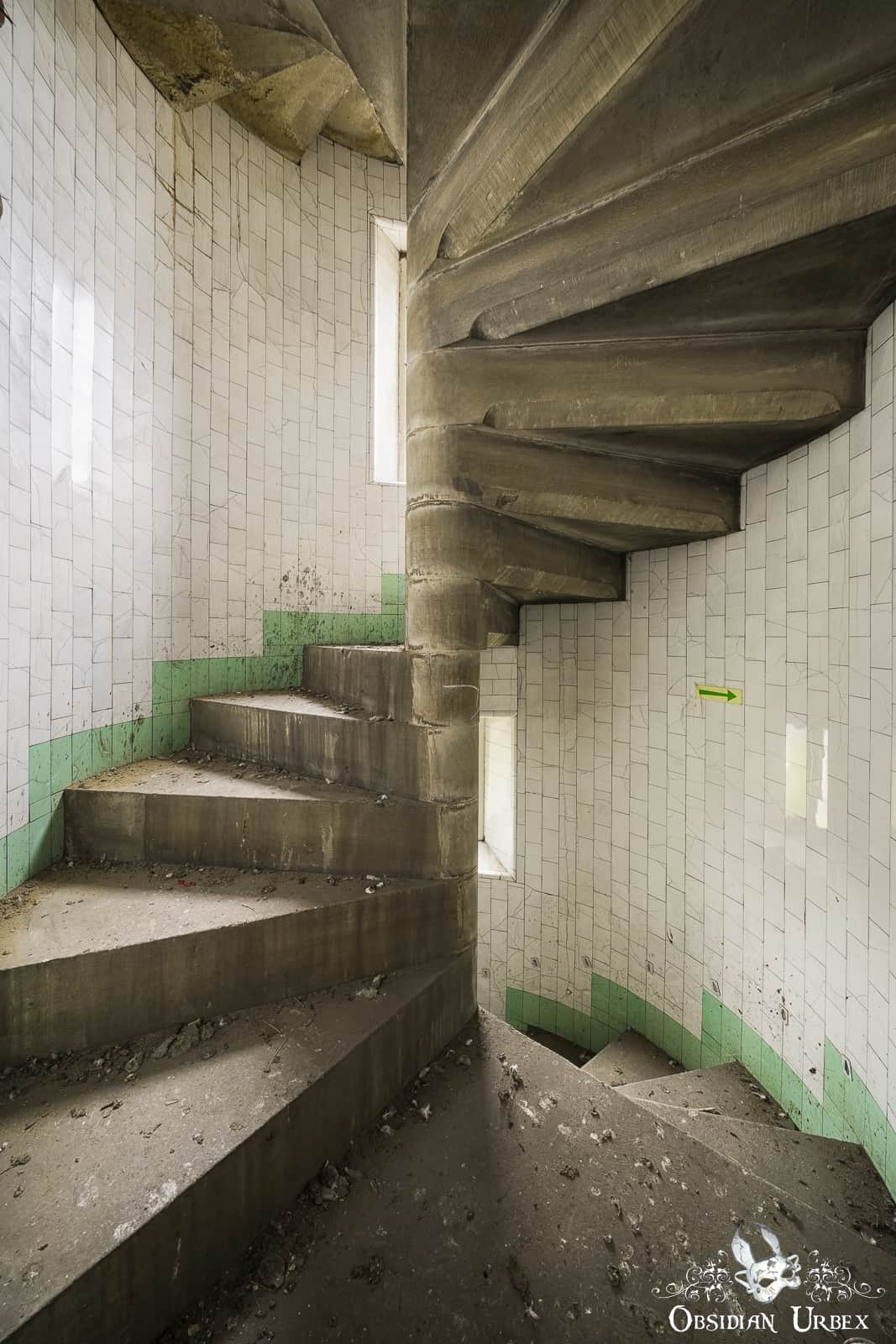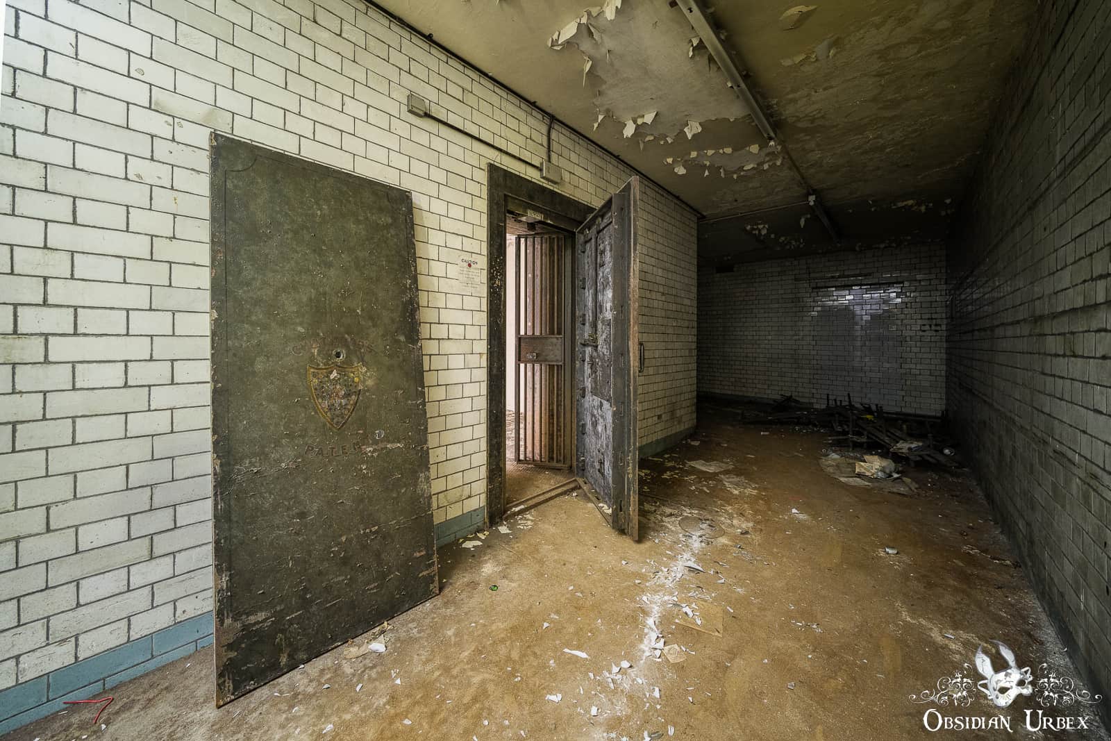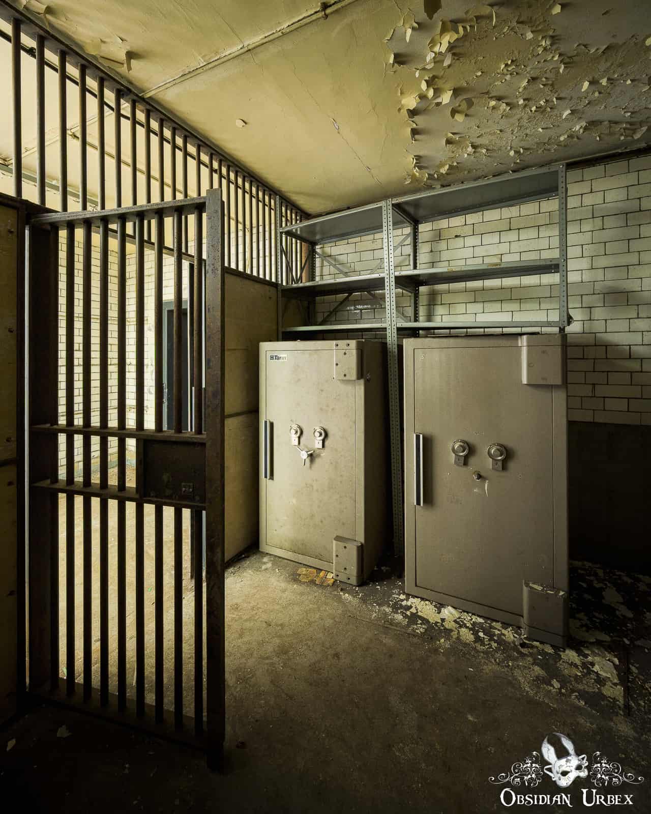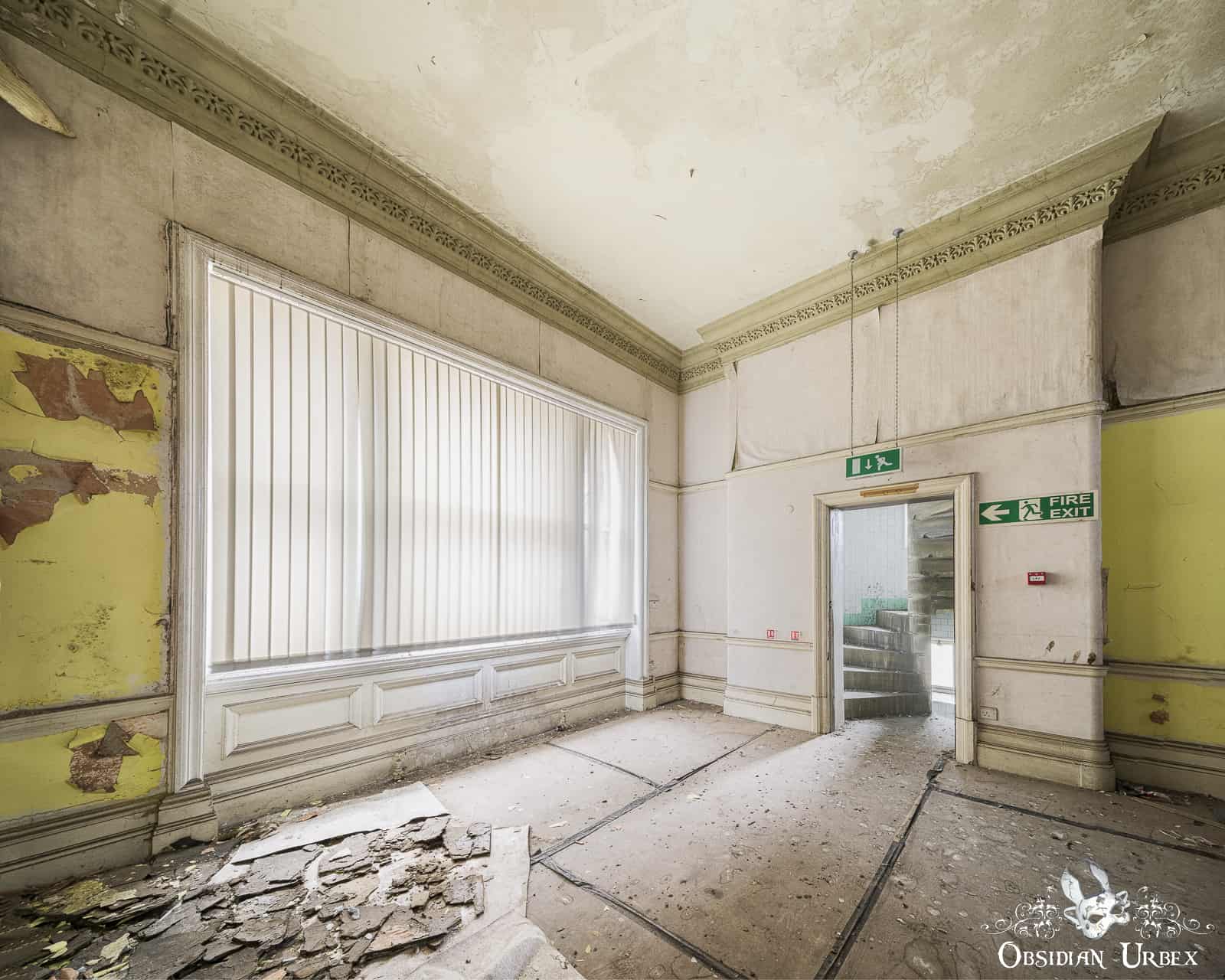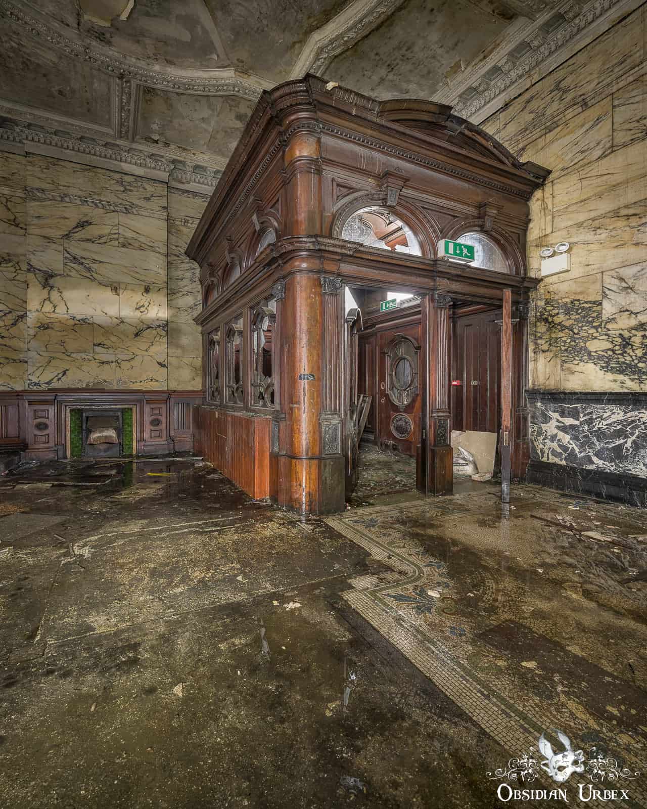 I explored most of this Edwardian Baroque Bank during my visit. The basement vault and safe area was of particular interest (albeit pitch black and requiring some creating torch-work to illuminate). Upstairs there were some interesting offices and spaces with bright painted walls and interesting textures to photograph. Additionally, a white and green-tiled spiral staircase link the floors below the tower which was a nice feature. There was an original gas lantern on the wall here, but I seemingly forgot to grab a photo of that!
