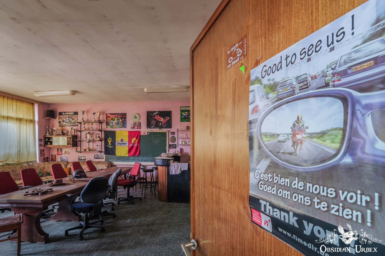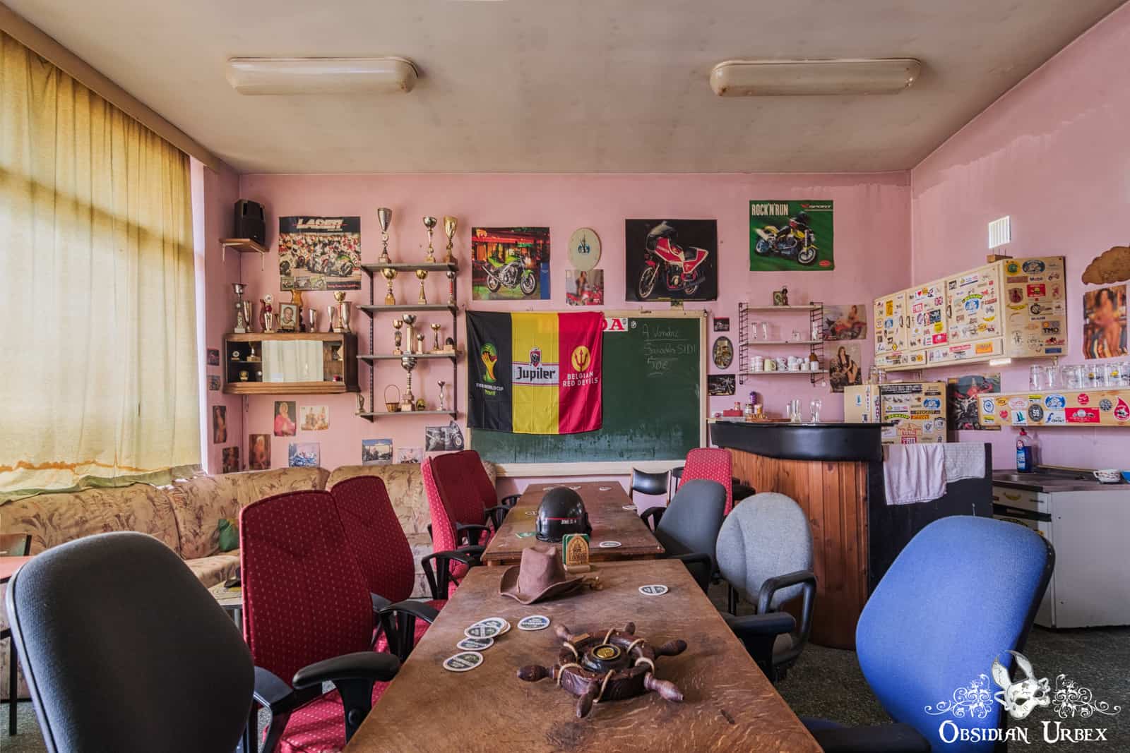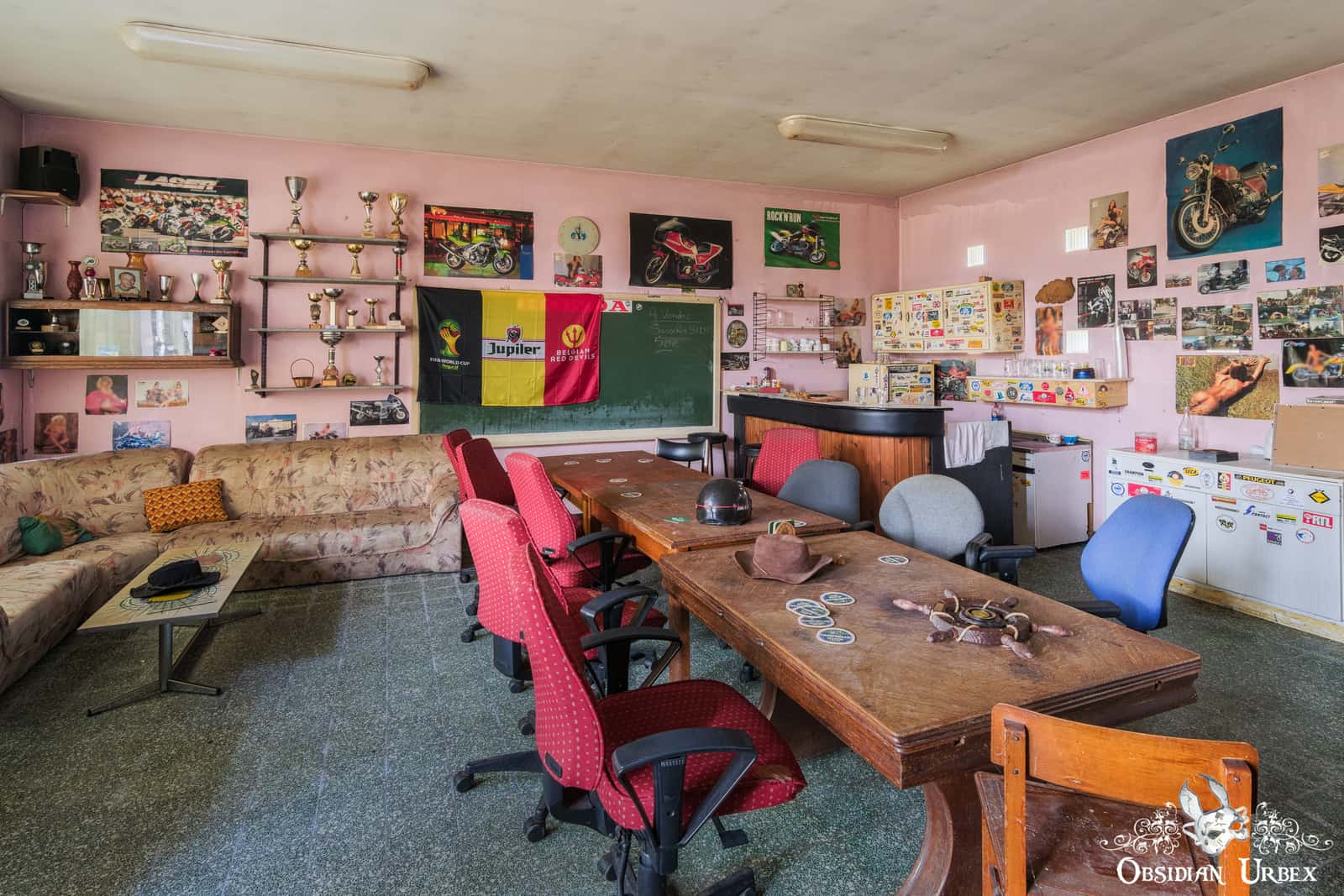 When I first saw photos of the Ghost Rider Biker Club, I was not sure what to make of it. I usually prefer older buildings with traditional architecture or a vegetation-filled overgrown greenhouse. This one is a relatively modern and plain building, there is no argument there. It lacks the beauty and craftsmanship of an Italian villa, or the elegance of an ancient French chateau. However, it does have a certain unique quality which is something else I like in my lost places. Unique places draw me, even if they lack traditional aesthetic architectural appeal.